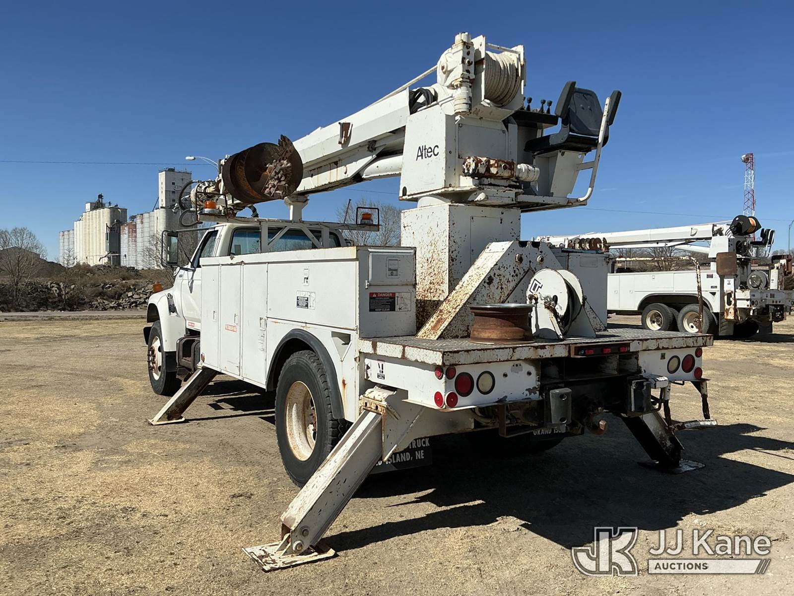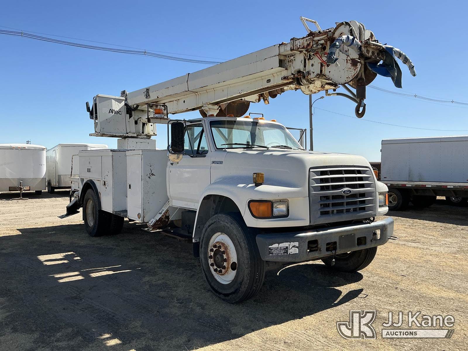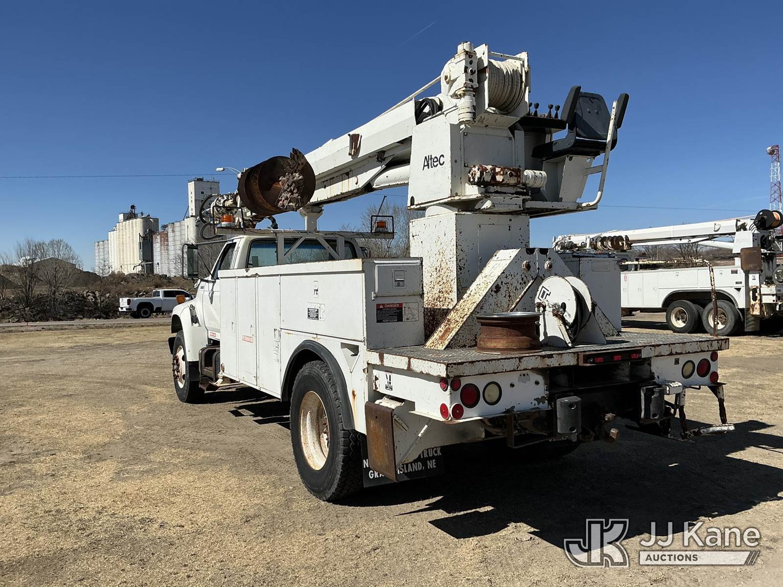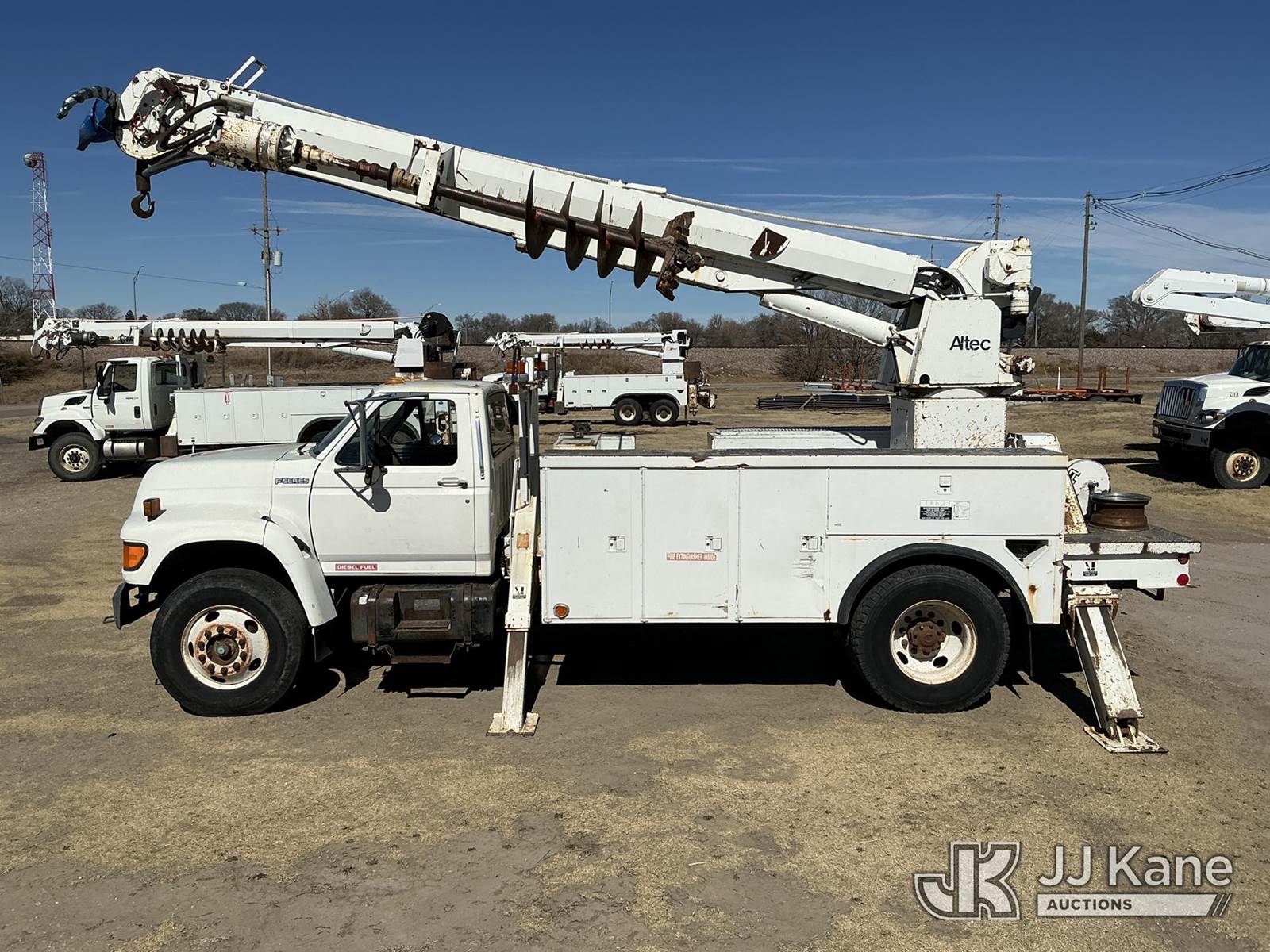 Altec D947-TR, 24,000 Lb Digger Derrick s/n 0797BA1093, with 47' sheave height, 2 spd digger, upper controls, heel winch, pole grabs, riding console & 4 outriggers, rear mounted on 1998 Ford F800 Utility Truck, 5.9L Diesel 4X2, Auto, A/C, (Exempt from Odometer Disclosure - Reads 70,508 miles) (Runs, Moves & Upper Operates) (The OEM has deemed this unit to have reached the End of Service life and will not provide service for the unit. Parts and/ or technical support for the unit may be limited, The manufacturer has notified JJ Kane that this equipment is subject to an open recall. 222 (CSN) Pivot Pin Inspection 236D (CSN) Rotation Brake Maintenance 237D (CSN) Upper Control Improvements 242AD (CSN) Adding Trunnion Pin Inspection Holes and Retorquing Trunnion Pins 244D (CSN) Digger Hanger Bracket and Latch Inspection 246D (CSN) Turntable Tilt Procedure Correction The equipment should not be operated until this is addressed. Buyer is responsible for reviewing the recall notice and contacting the manufacturer to schedule the recommended corrective actions. Associated costs may be covered by the manufacturer in some cases.) (Reads 11,015 hours) This is a Titled Item NOTE: This unit is being sold AS IS/WHERE IS via Timed Auction and is located in Holdrege, NE. For more information contact Austin Scott @ 816-205-2291 Removal by appointment only, Buyer/Hauler must present copy of paid invoice or release form upon arrival. Purchaser acknowledges ALL lots must be removed within 7 business days of Auction. For removal please reference the realease form sent out after purchase. (Manuals provided in cab) (Buyer is responsible for removal. Assistance by consignor or JJ Kane Auctions is not assured.)