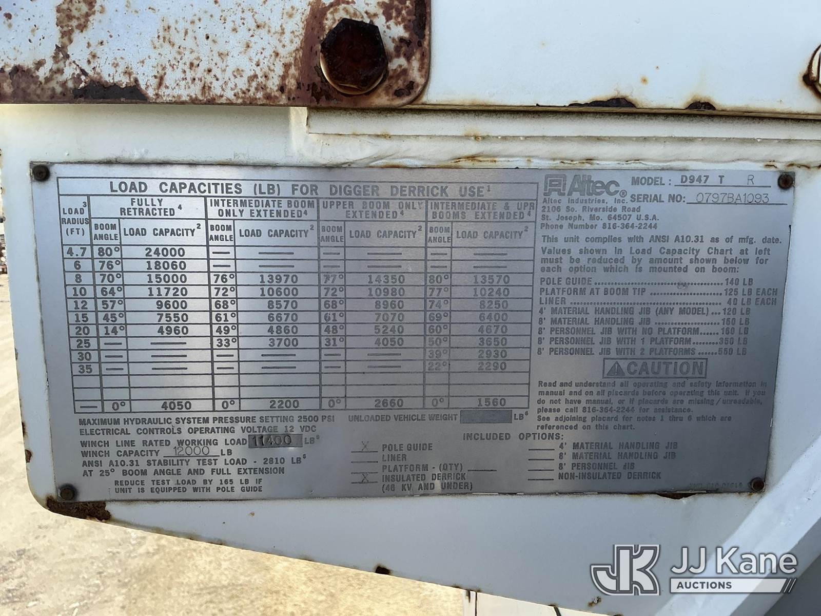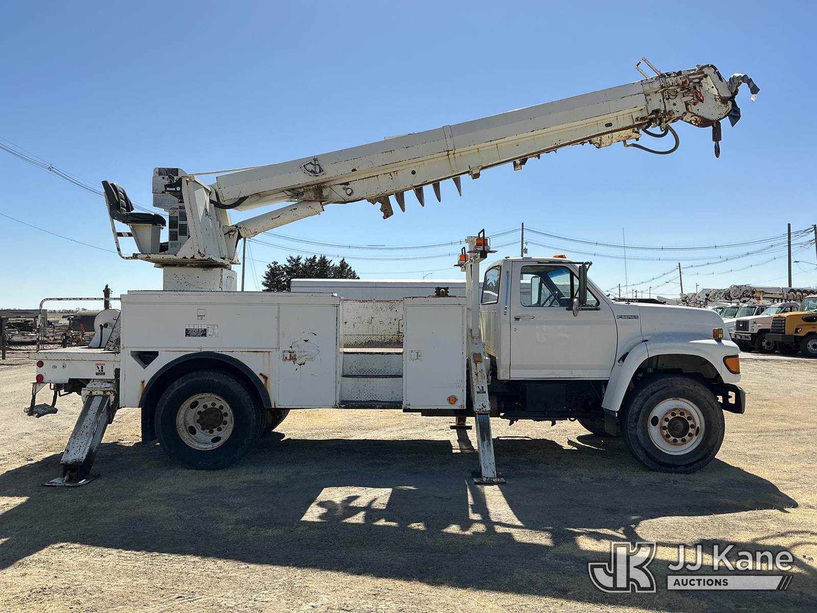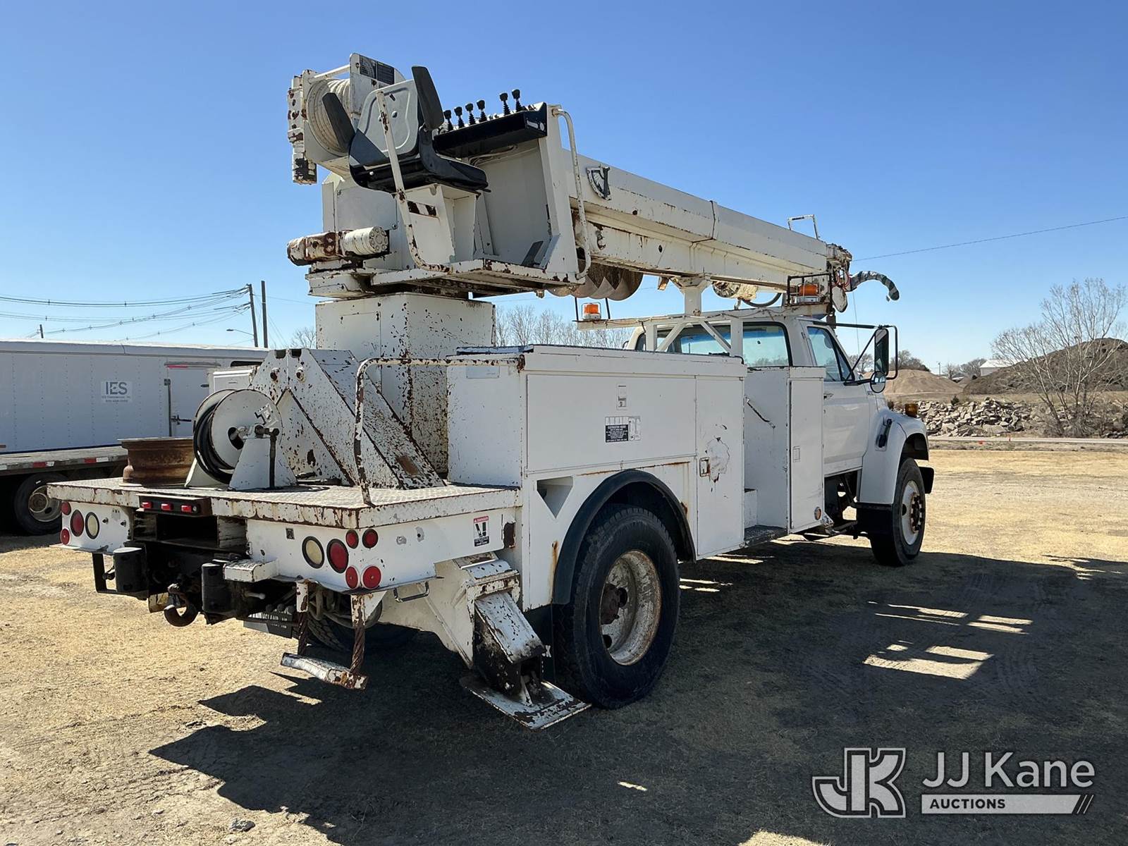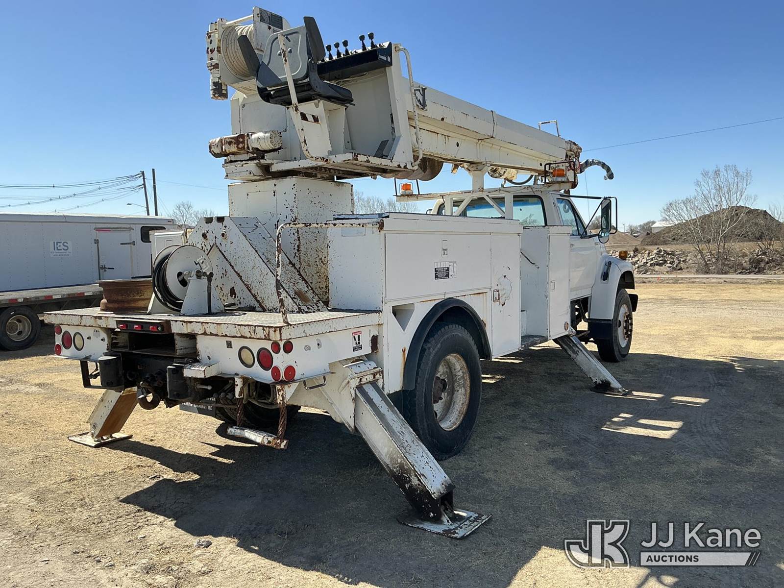 Altec D947-TR, 24,000 Lb Digger Derrick s/n 0797BA1093, with 47' sheave height, 2 spd digger, upper controls, heel winch, pole grabs, riding console & 4 outriggers, rear mounted on 1998 Ford F800 Utility Truck, 5.9L Diesel 4X2, Auto, A/C, (Exempt from Odometer Disclosure - Reads 70,508 miles) (Runs, Moves & Upper Operates) (The OEM has deemed this unit to have reached the End of Service life and will not provide service for the unit. Parts and/ or technical support for the unit may be limited, The manufacturer has notified JJ Kane that this equipment is subject to an open recall. 222 (CSN) Pivot Pin Inspection 236D (CSN) Rotation Brake Maintenance 237D (CSN) Upper Control Improvements 242AD (CSN) Adding Trunnion Pin Inspection Holes and Retorquing Trunnion Pins 244D (CSN) Digger Hanger Bracket and Latch Inspection 246D (CSN) Turntable Tilt Procedure Correction The equipment should not be operated until this is addressed. Buyer is responsible for reviewing the recall notice and contacting the manufacturer to schedule the recommended corrective actions. Associated costs may be covered by the manufacturer in some cases.) (Reads 11,015 hours) This is a Titled Item NOTE: This unit is being sold AS IS/WHERE IS via Timed Auction and is located in Holdrege, NE. For more information contact Austin Scott @ 816-205-2291 Removal by appointment only, Buyer/Hauler must present copy of paid invoice or release form upon arrival. Purchaser acknowledges ALL lots must be removed within 7 business days of Auction. For removal please reference the realease form sent out after purchase. (Manuals provided in cab) (Buyer is responsible for removal. Assistance by consignor or JJ Kane Auctions is not assured.)