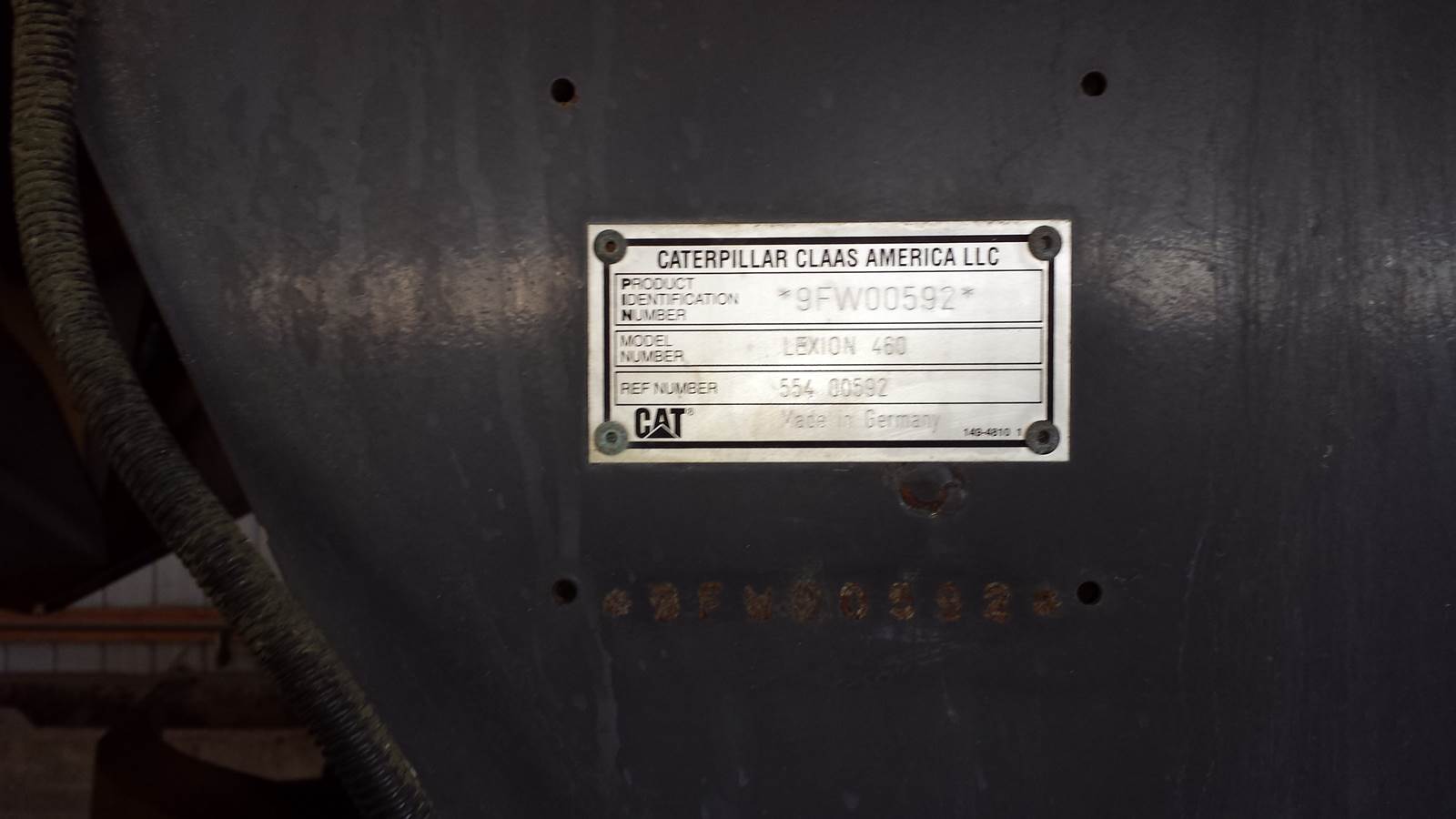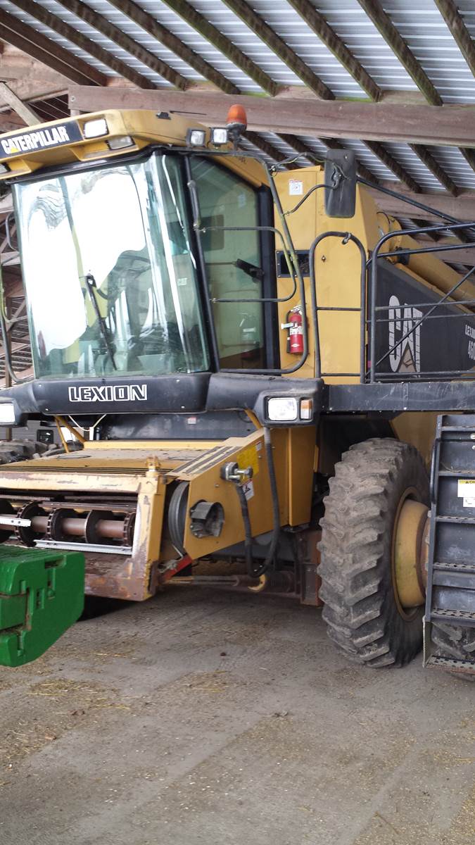 1999 Caterpillar Lexion 460 combine. Approximately 3400 engine hours/3000 separator hours. Cat 3126B engine, dry with no leaks. Wide-body 6-row straw-walker separation w/ 280 bushel grain tank and straw chopper. 18.4R38 dual tires on the front with 500/60R26.5 tires on the rear. Only put on about 300 separator hours in the 4 seasons or so we used it. Been parked in the barn for the last 10 years since we leased out the acreage.