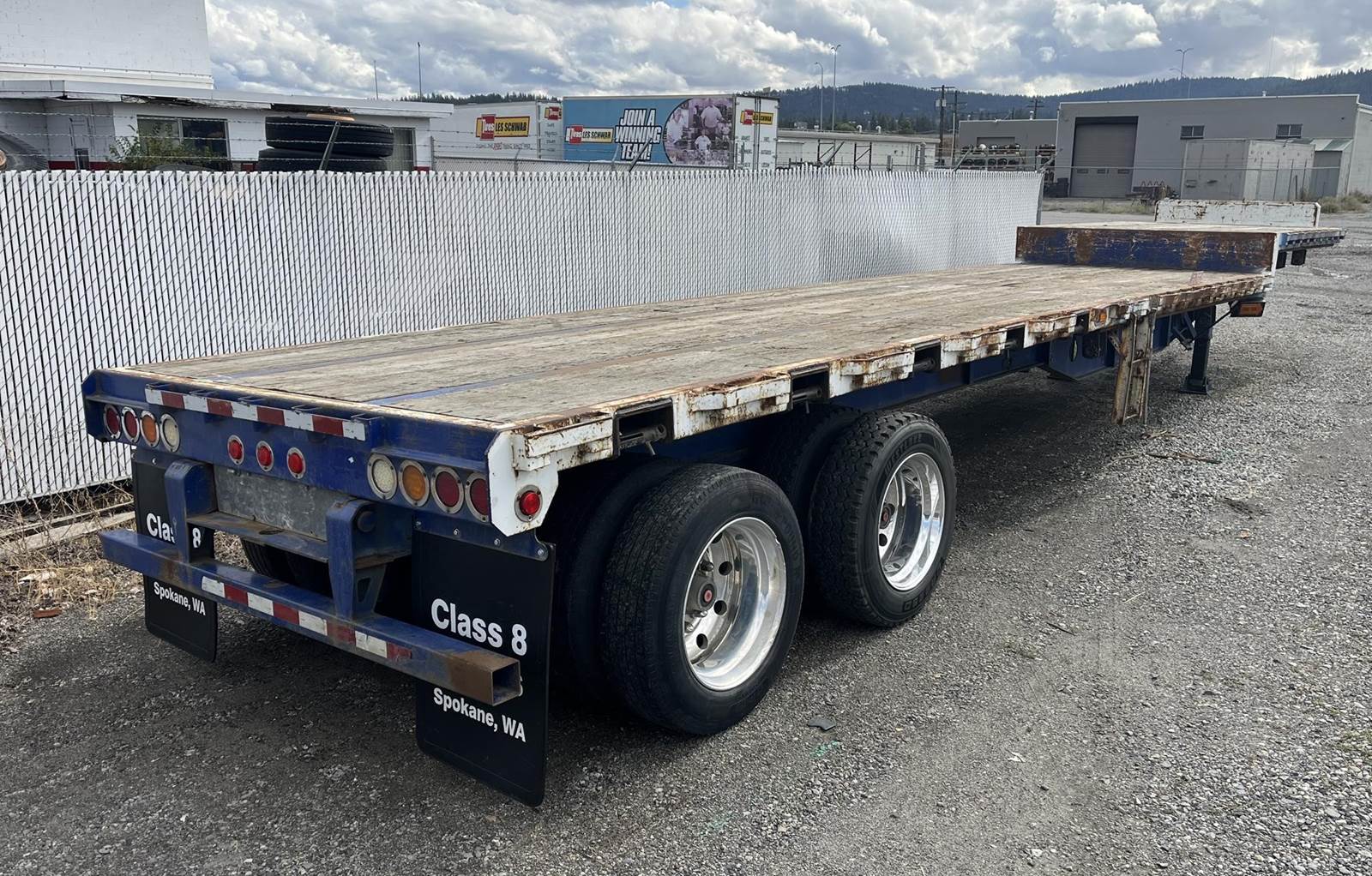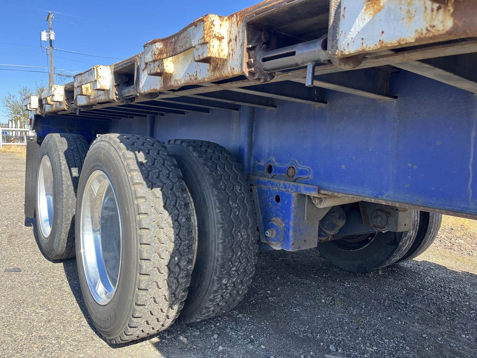 42' x 96" Steel Step Deck, tandem spring suspension, steel deck, 10:00R15 on steel budd