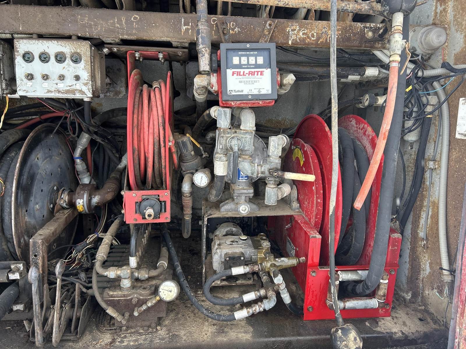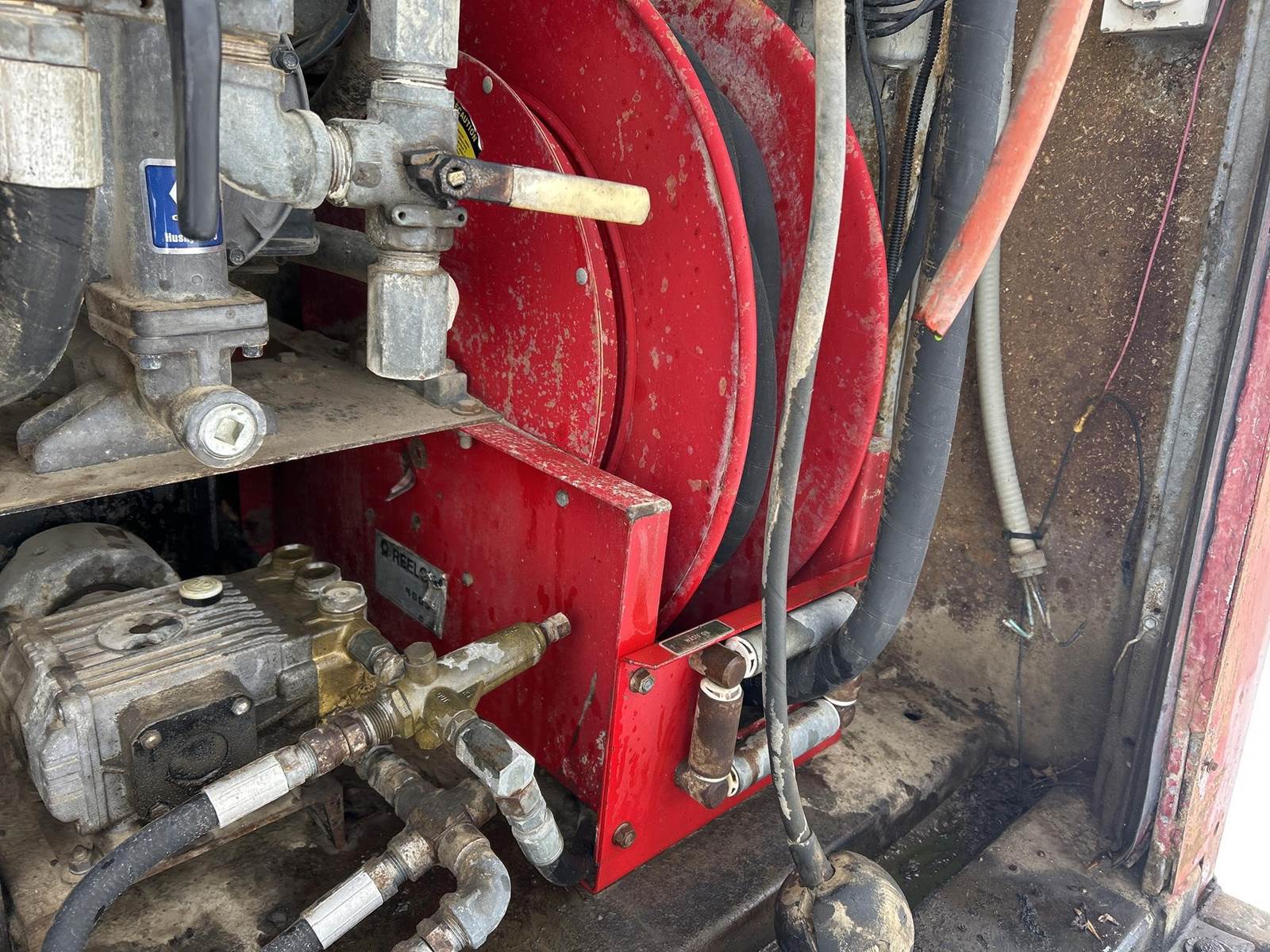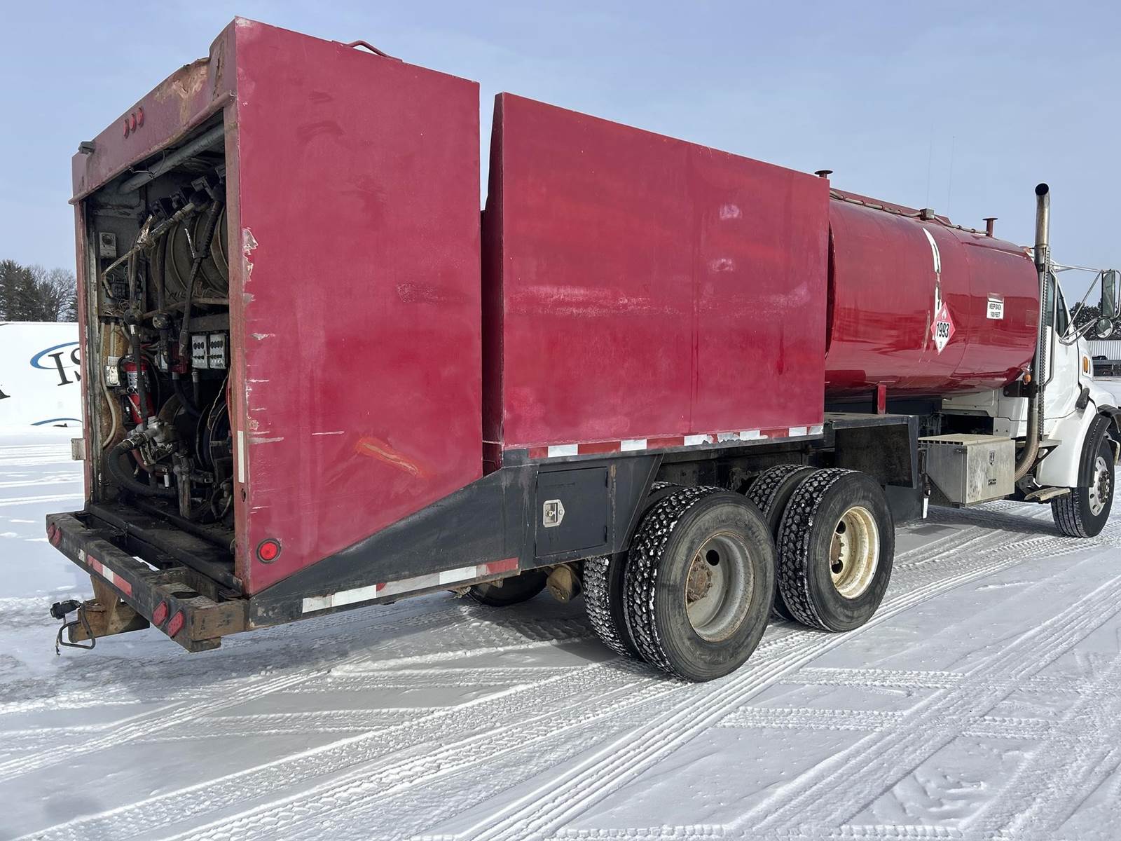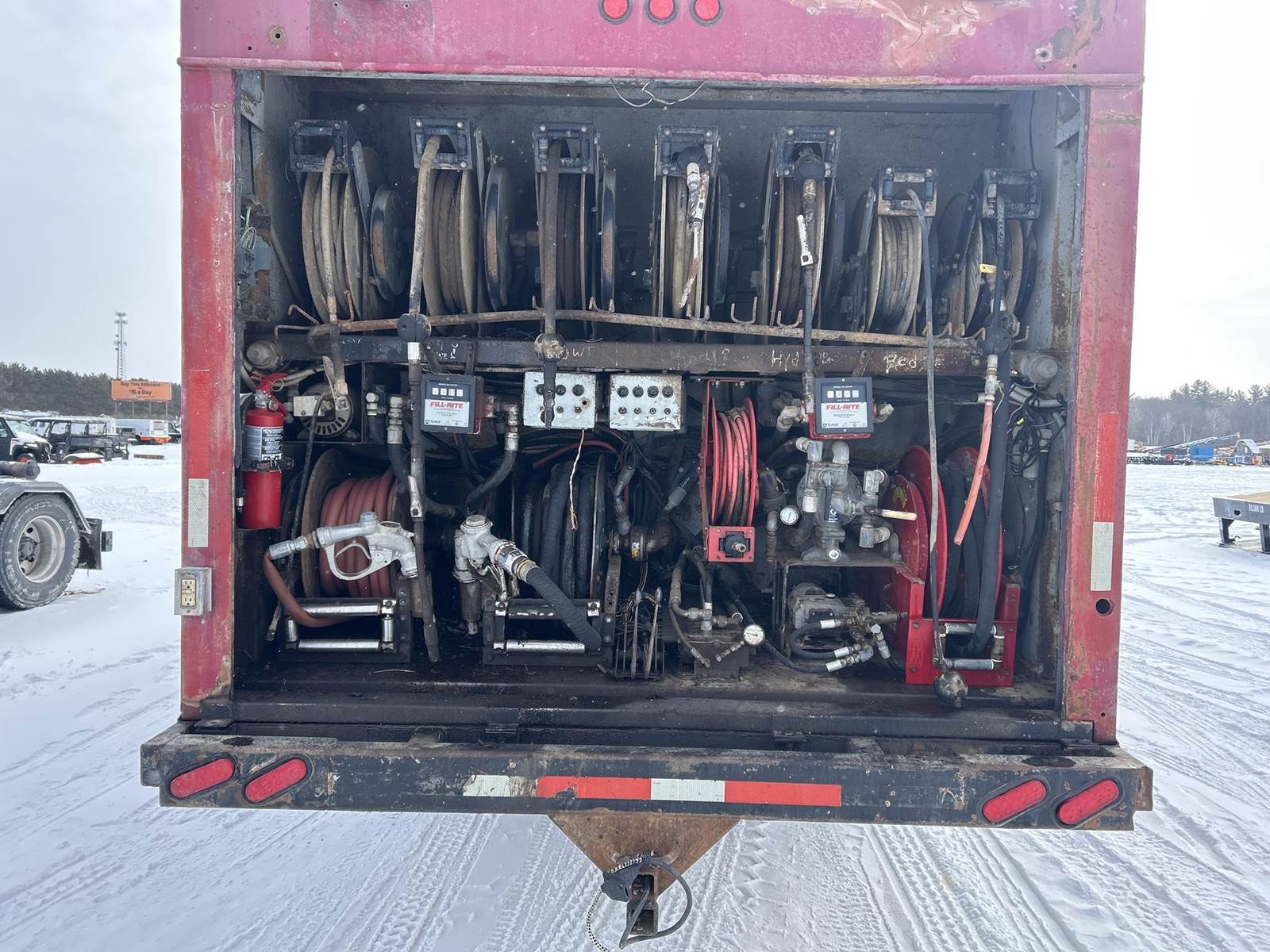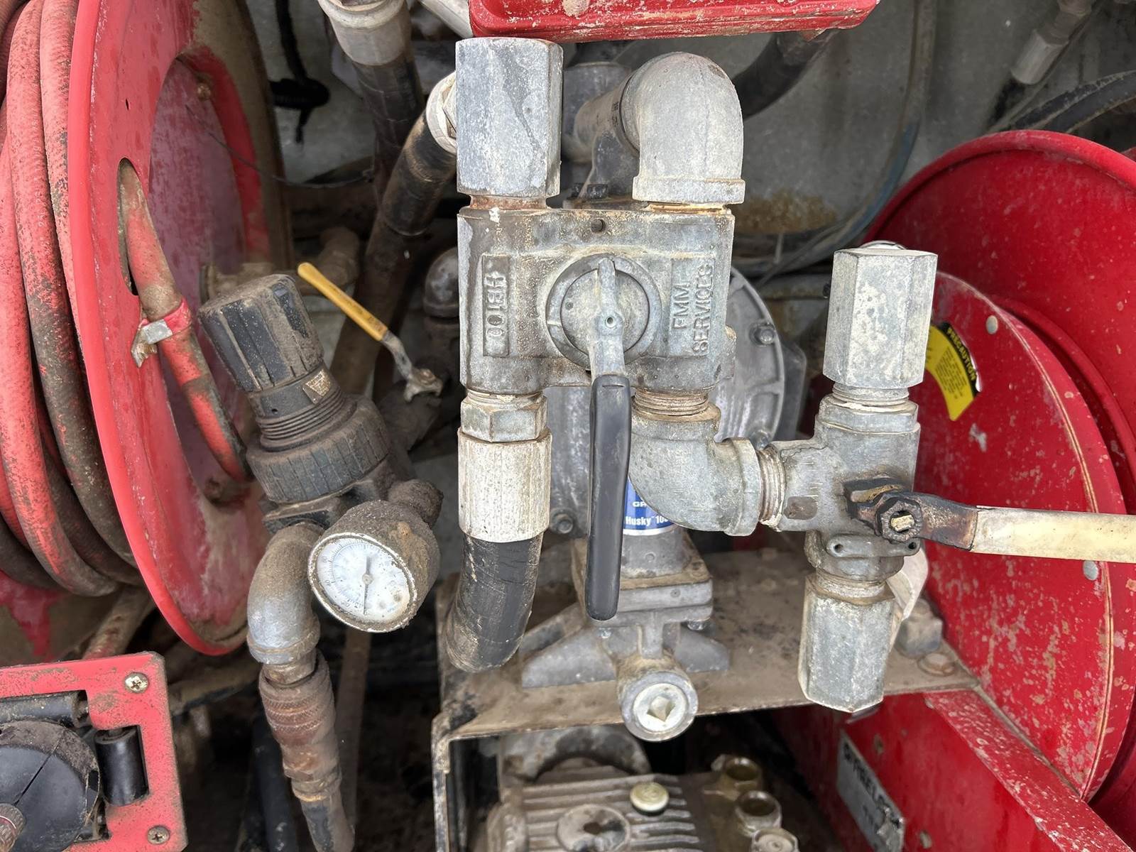 Caterpillar 3126 Turbo Diesel Engine, 8LL Manual Transmission, PTO, Full Lockers, GVWR: 58000lbs, Single Frame, Spring Ride Suspension, Air Compressor, (3) Tool Compartments, Eliot Diesel Tank W/ (3) Chambers, (5) Oil Tanks, Waste Oil Tank, (11) Hose Reels, Day Cab, Air Ride Driver Seat, Heat, AC, CB Radio, 315/80R22.5 Front Tires, 11R22.5 Rear Tires