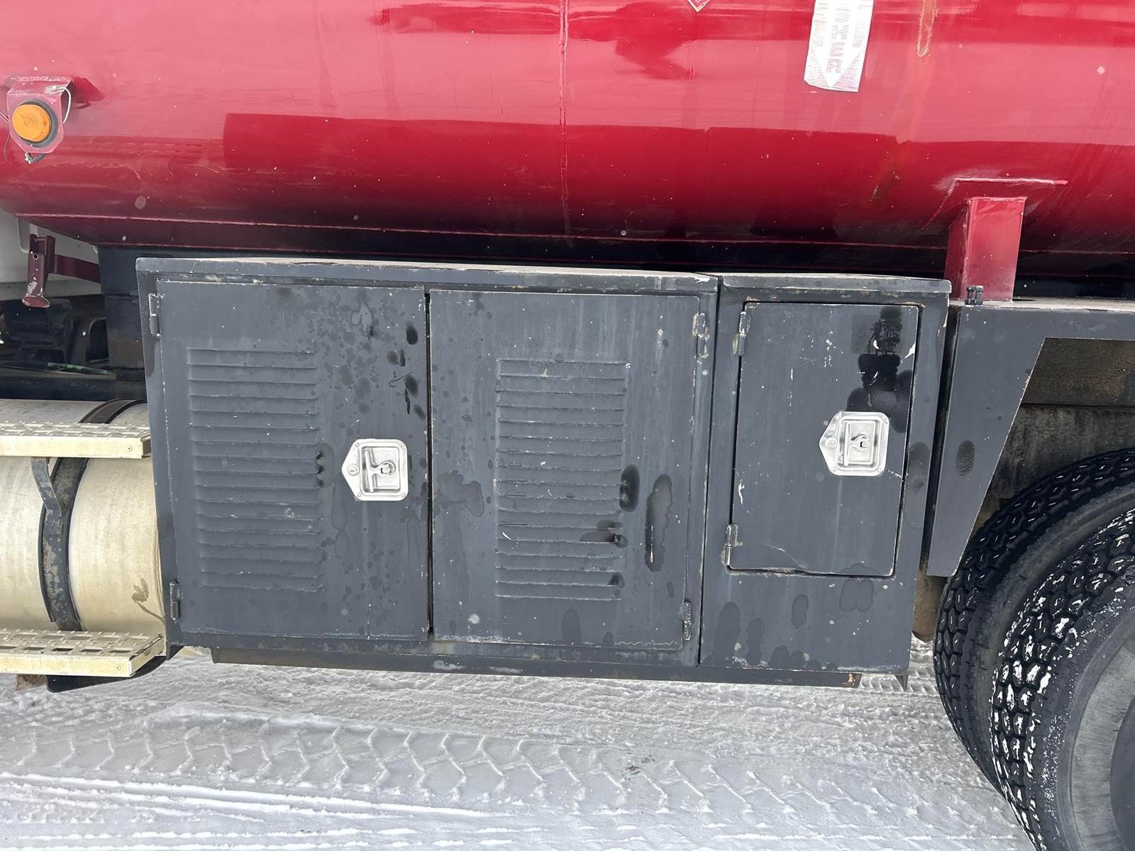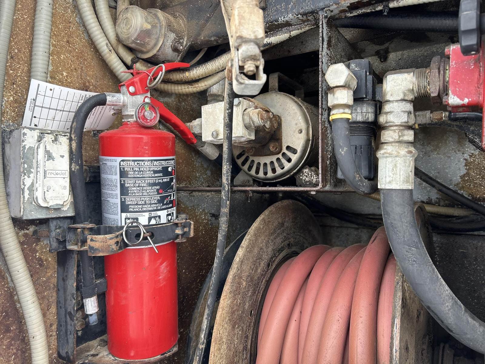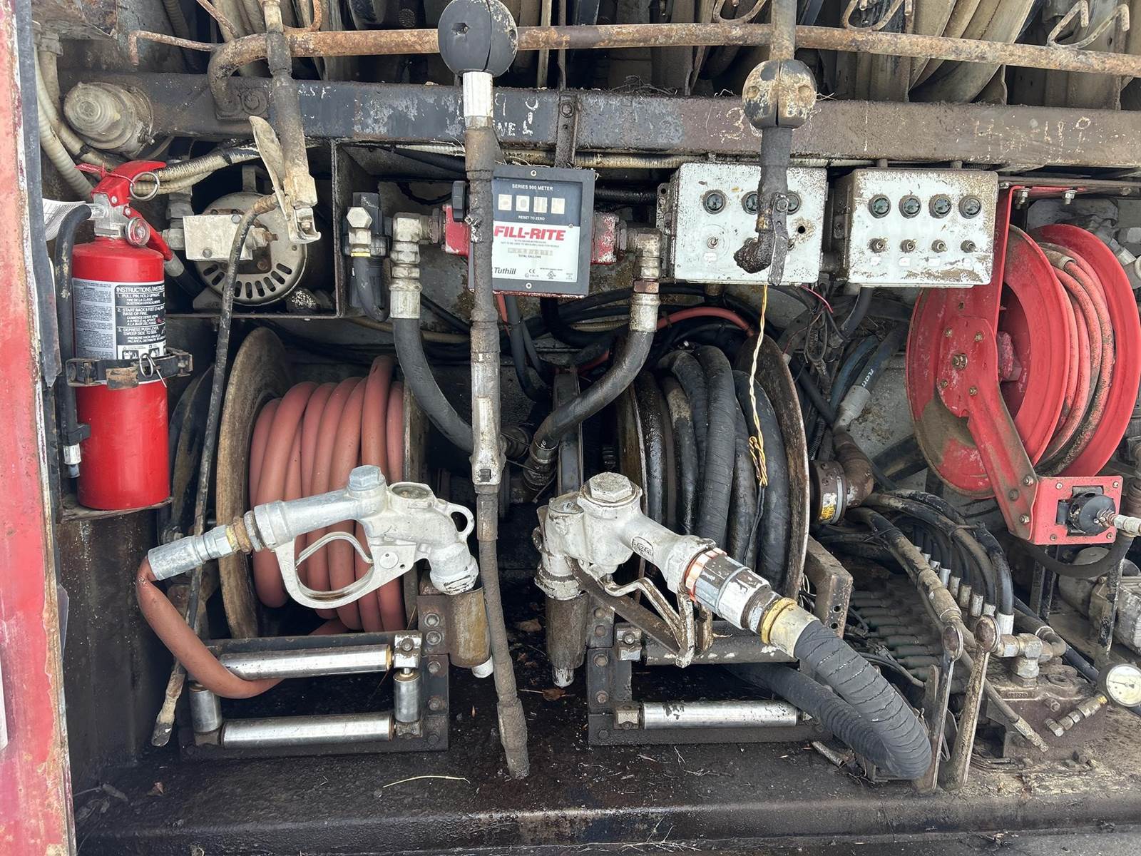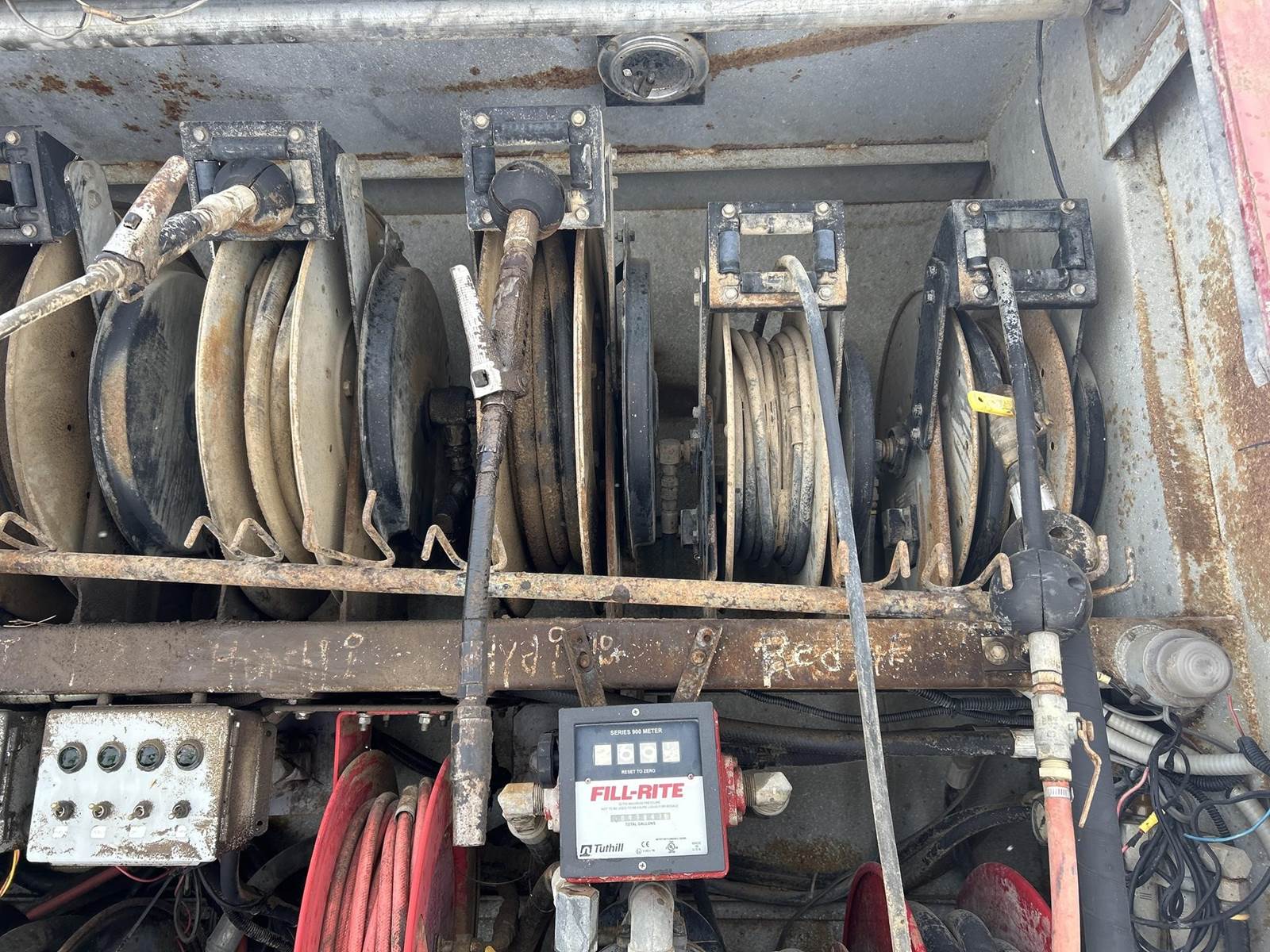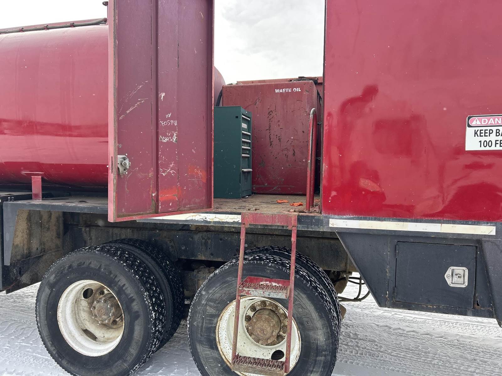Caterpillar 3126 Turbo Diesel Engine, 8LL Manual Transmission, PTO, Full Lockers, GVWR: 58000lbs, Single Frame, Spring Ride Suspension, Air Compressor, (3) Tool Compartments, Eliot Diesel Tank W/ (3) Chambers, (5) Oil Tanks, Waste Oil Tank, (11) Hose Reels, Day Cab, Air Ride Driver Seat, Heat, AC, CB Radio, 315/80R22.5 Front Tires, 11R22.5 Rear Tires