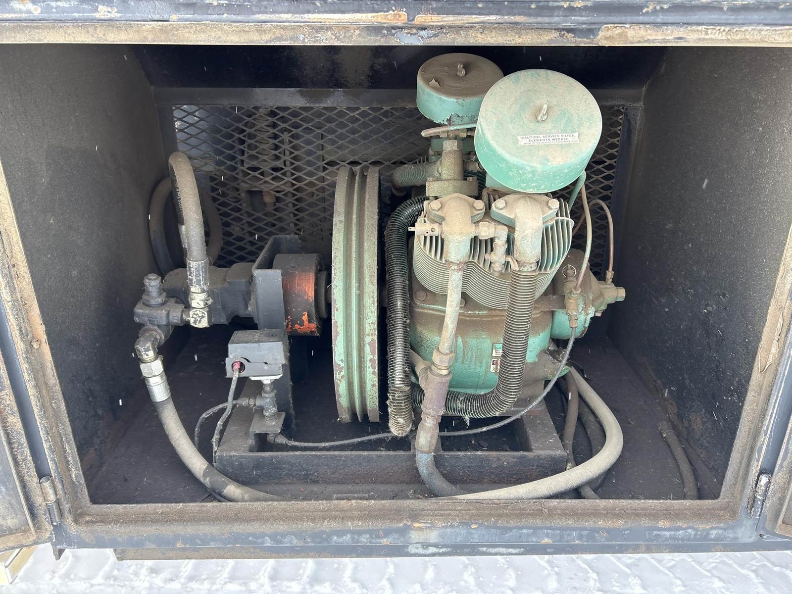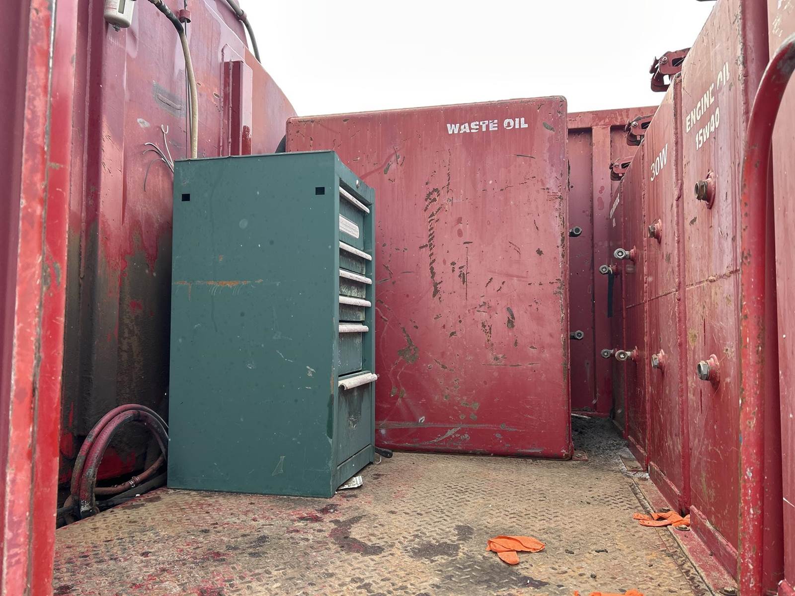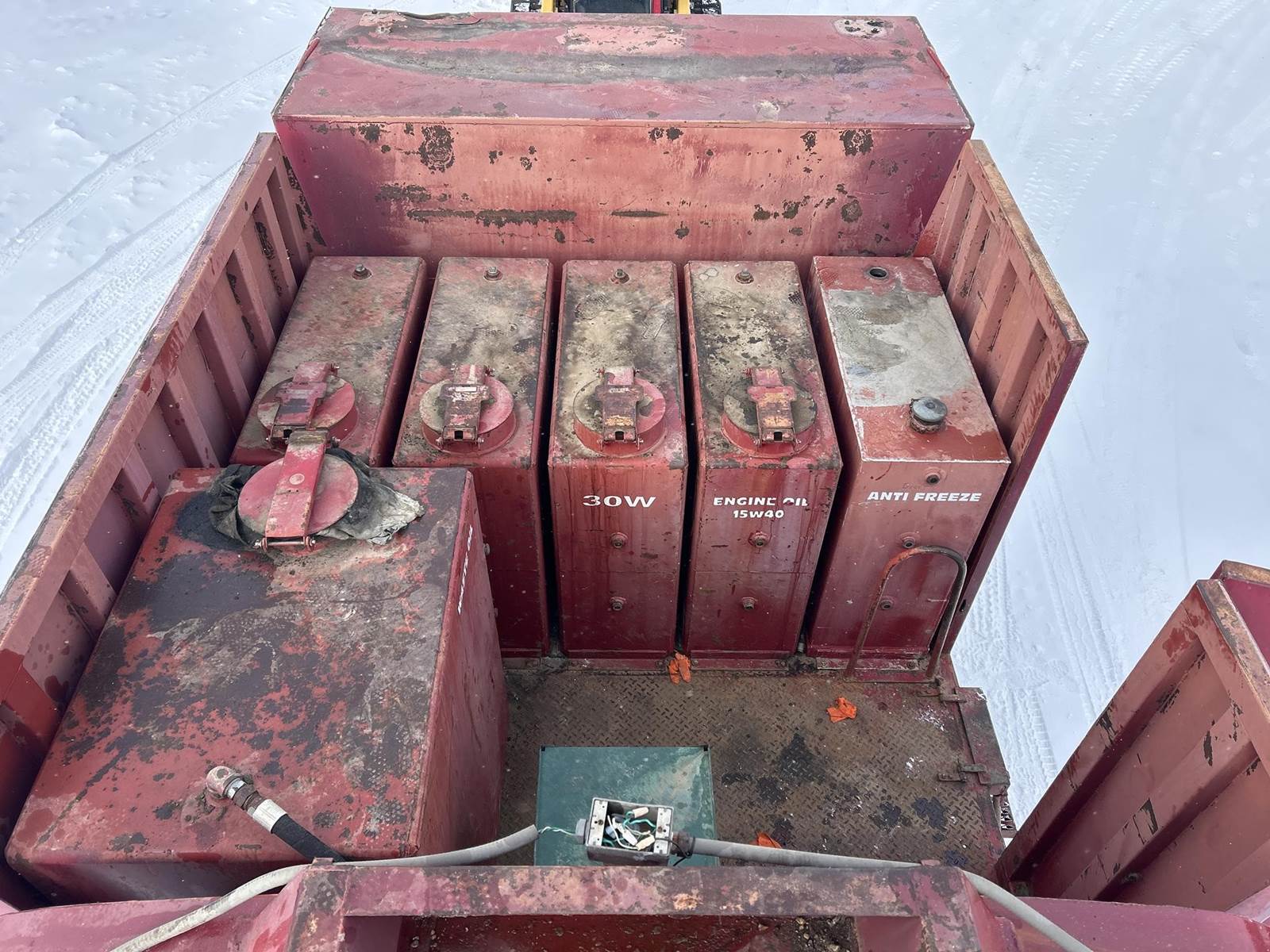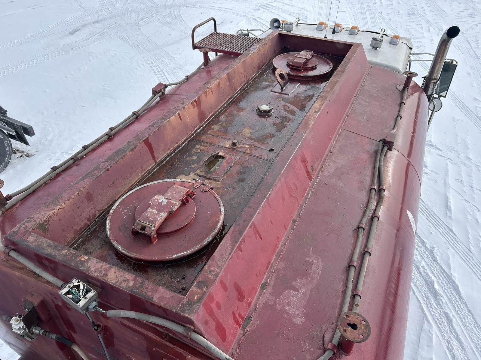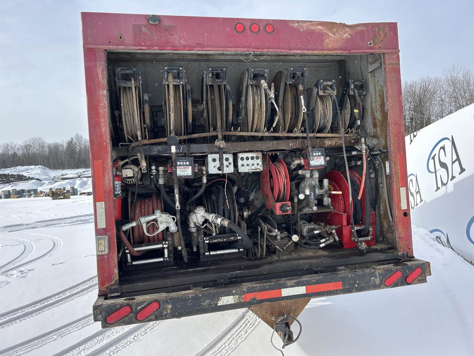Caterpillar 3126 Turbo Diesel Engine, 8LL Manual Transmission, PTO, Full Lockers, GVWR: 58000lbs, Single Frame, Spring Ride Suspension, Air Compressor, (3) Tool Compartments, Eliot Diesel Tank W/ (3) Chambers, (5) Oil Tanks, Waste Oil Tank, (11) Hose Reels, Day Cab, Air Ride Driver Seat, Heat, AC, CB Radio, 315/80R22.5 Front Tires, 11R22.5 Rear Tires