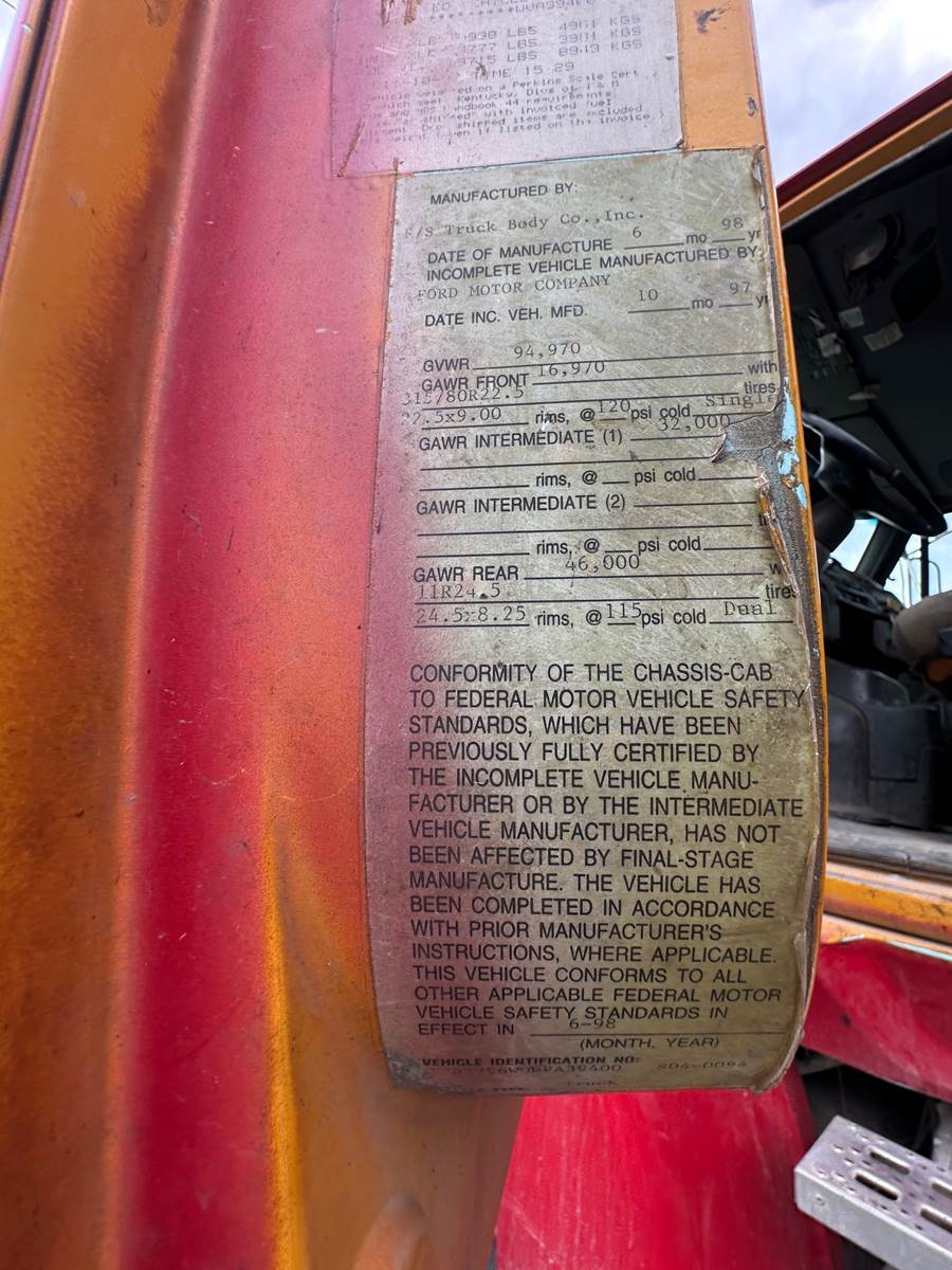 1995 Ford AeroMax L-9000 Tandem Axle Dump Truck - 10-yd/3, GVWR:52,000 LB/FGAWR:12,000 LB/ RGAWR: 20,000 LB X2 + 40,000LB - Mileage:554,120...