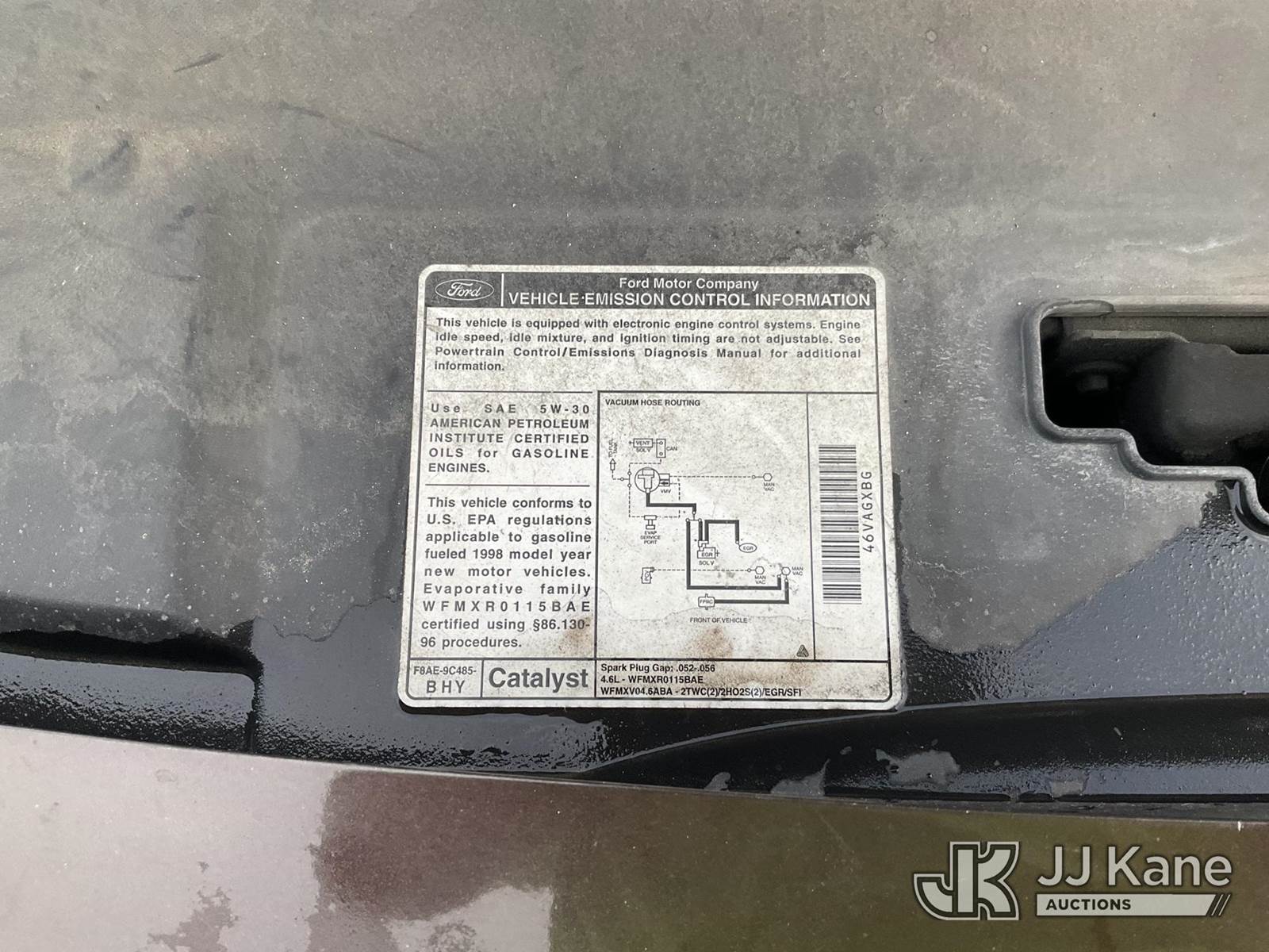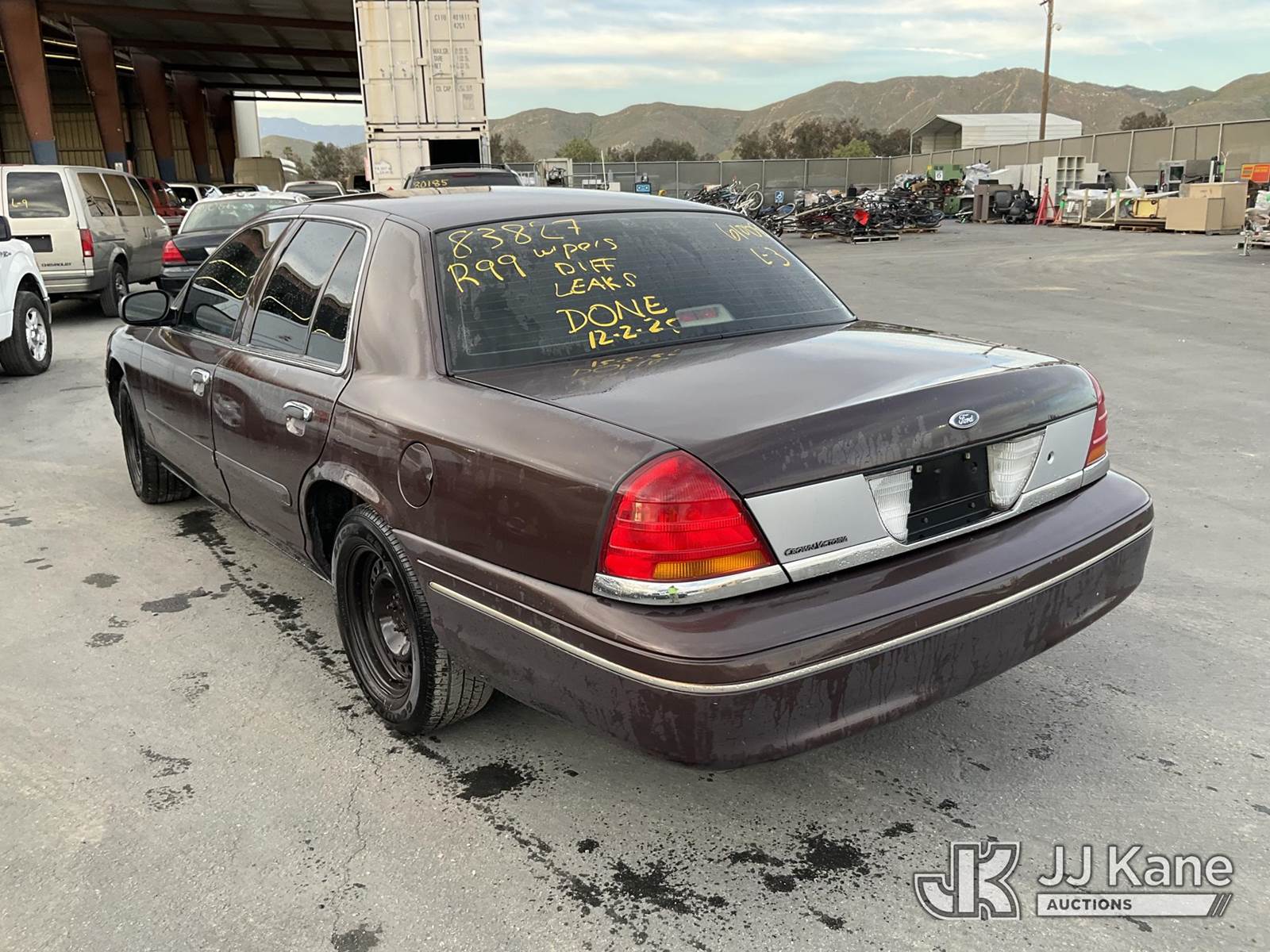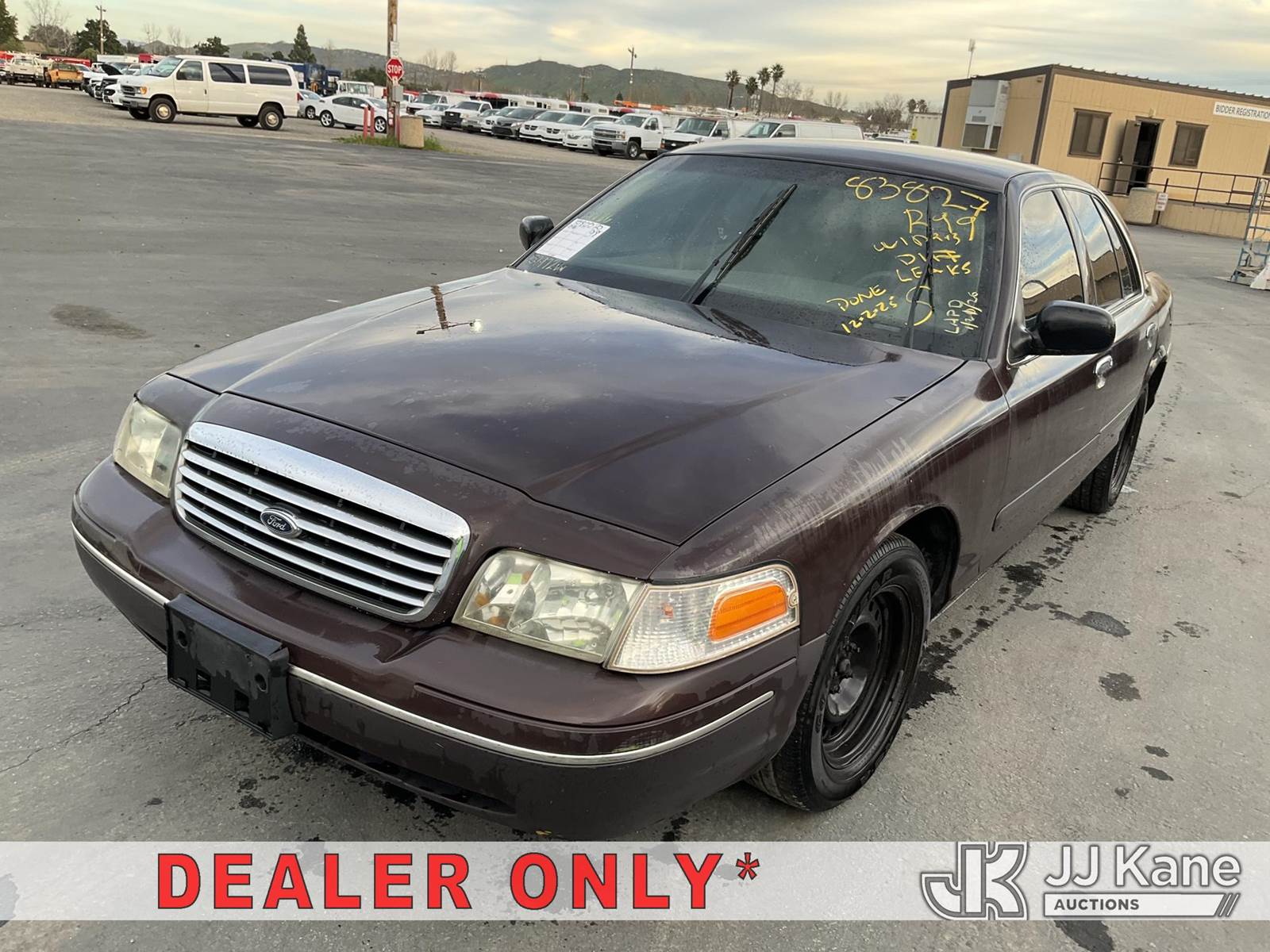 1998 Ford Crown Victoria Police Interceptor 4-Door Sedan, 8-cyl gas, 4-Speed Automatic, A/C, (Exempt from Odometer Disclosure - Reads 132,558 miles) (Runs & Moves) (Traction Control Light On) (Vehicle previously used with a ‘cold plate’ or protected record registration. Due to the prior status, VIN may not yet appear in NMVTIS, which could affect DMV title/registration processing. Buyer acknowledges and accepts this) (Bidding Restricted to Licensed Vehicle Dealers Only), This is a Titled Item NOTE: This unit is being sold AS IS/WHERE IS via Timed Auction and is located in Jurupa Valley, CA. Inspection & preview days for this unit are the 2 business days prior to the first day of items closing for this auction, item is located at 4510 Muth Way Jurupa Valley, CA 92509 and hours of operations are 8a-4p. For pre-sale questions, please contact please contact Office Staff @ (310) 353-7140. Dealer License Number 45696. (Buyer is responsible for removal. Assistance by consignor or JJ Kane Auctions is not assured.)