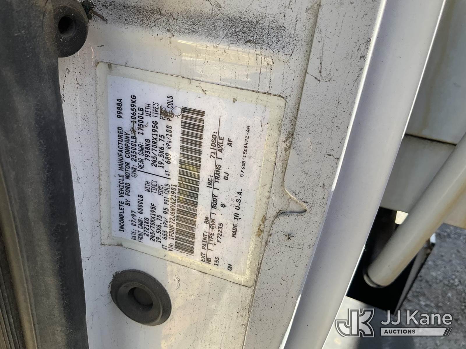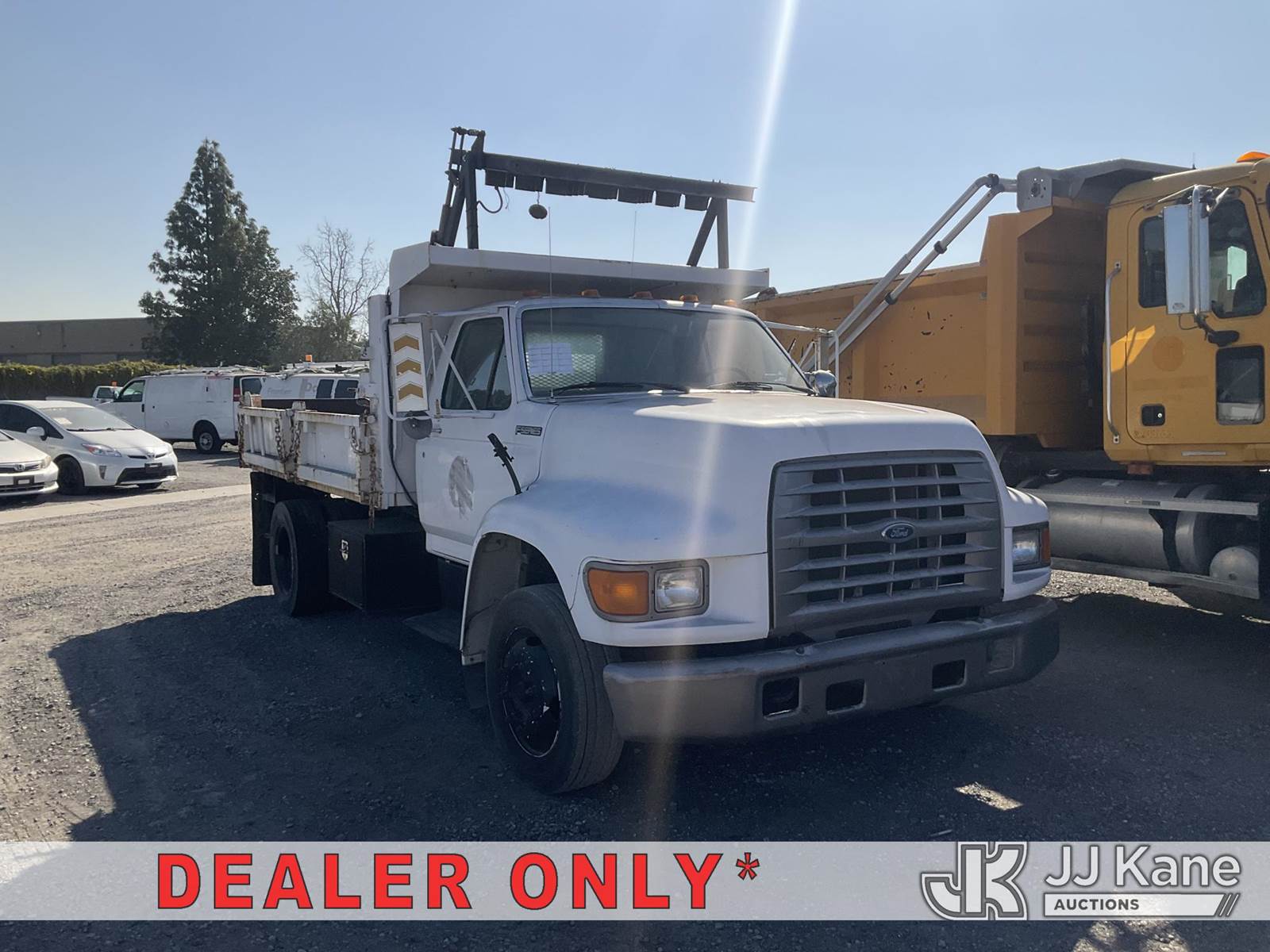 1998 Ford F700 LPO Dump Truck, s/n 1FDNF72J6WVA21901, 7.0L V8 OHV 16V 4X2, GAS, manual, with Tow Package, Arrow aboard, , (Exempt from Odometer Disclosure - Reads 30,772 miles) (Not Running Condition Unknown) Electrical & Interior damage form rodents, No Key ) (Bidding Restricted to Licensed Vehicle Dealers Only), This is a Titled Item NOTE: This unit is being sold AS IS/WHERE IS via Timed Auction and is located in Jurupa Valley, CA. Inspection & preview days for this unit are the 2 business days prior to the first day of items closing for this auction, item is located at 4510 Muth Way Jurupa Valley, CA 92509 and hours of operations are 8a-4p. For pre-sale questions, please contact please contact Office Staff @ (310) 353-7140. Dealer License Number 45696. (Buyer is responsible for removal. Assistance by consignor or JJ Kane Auctions is not assured.)