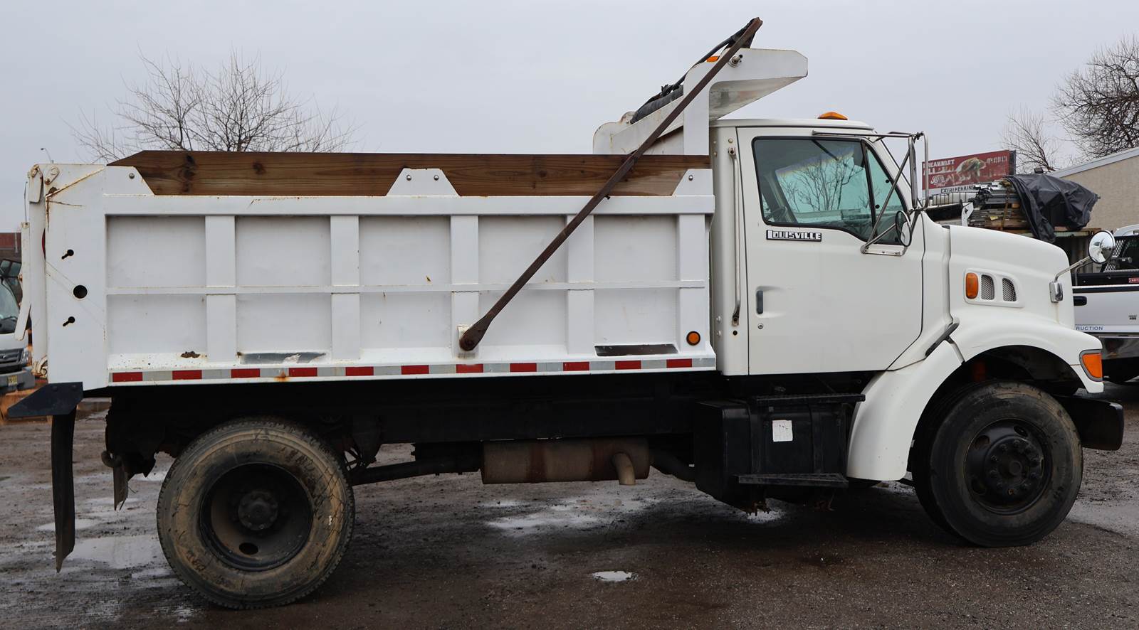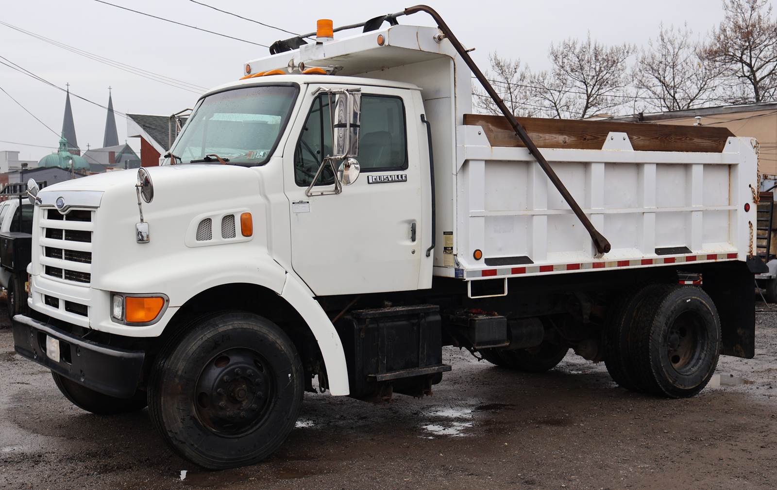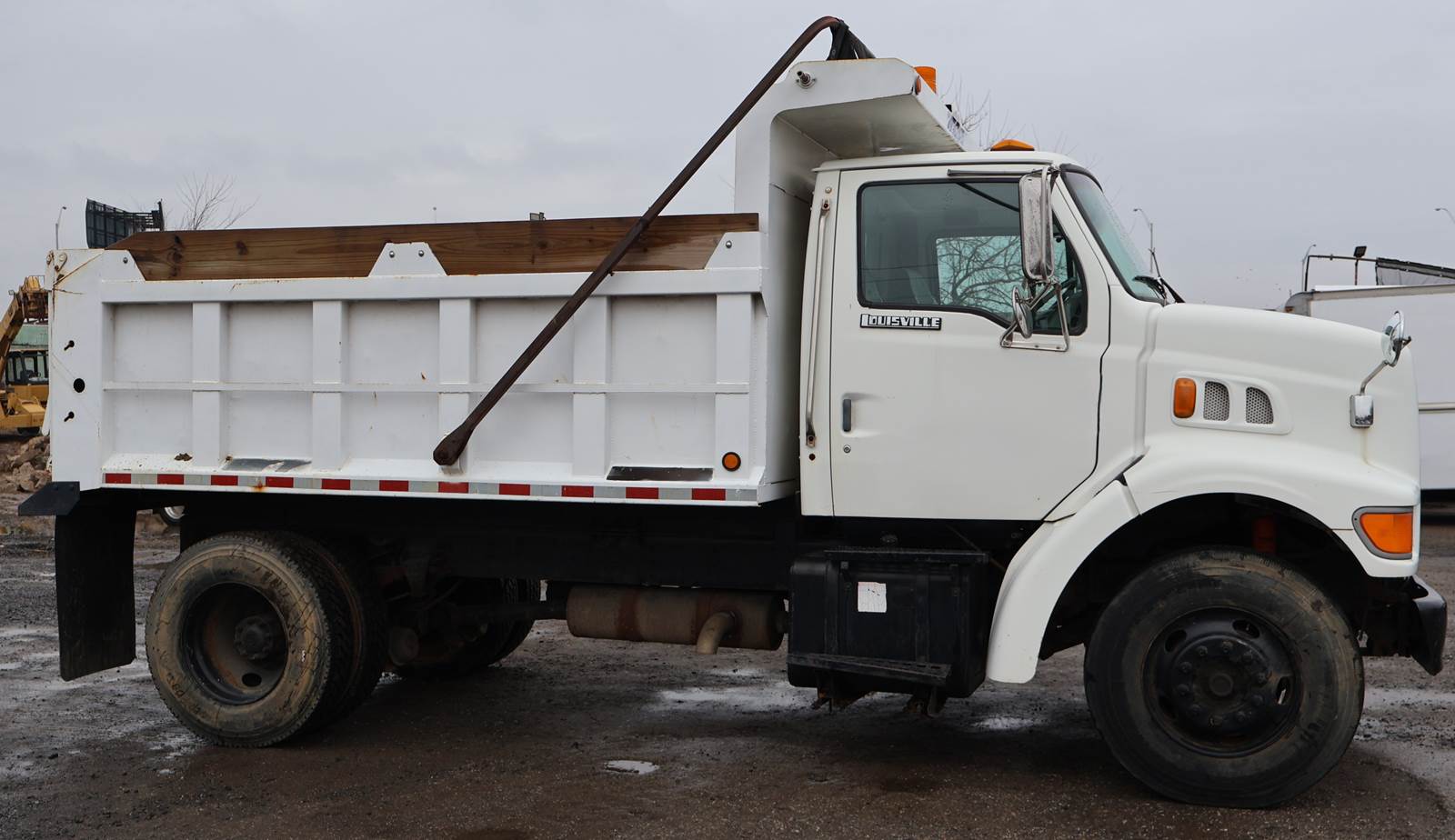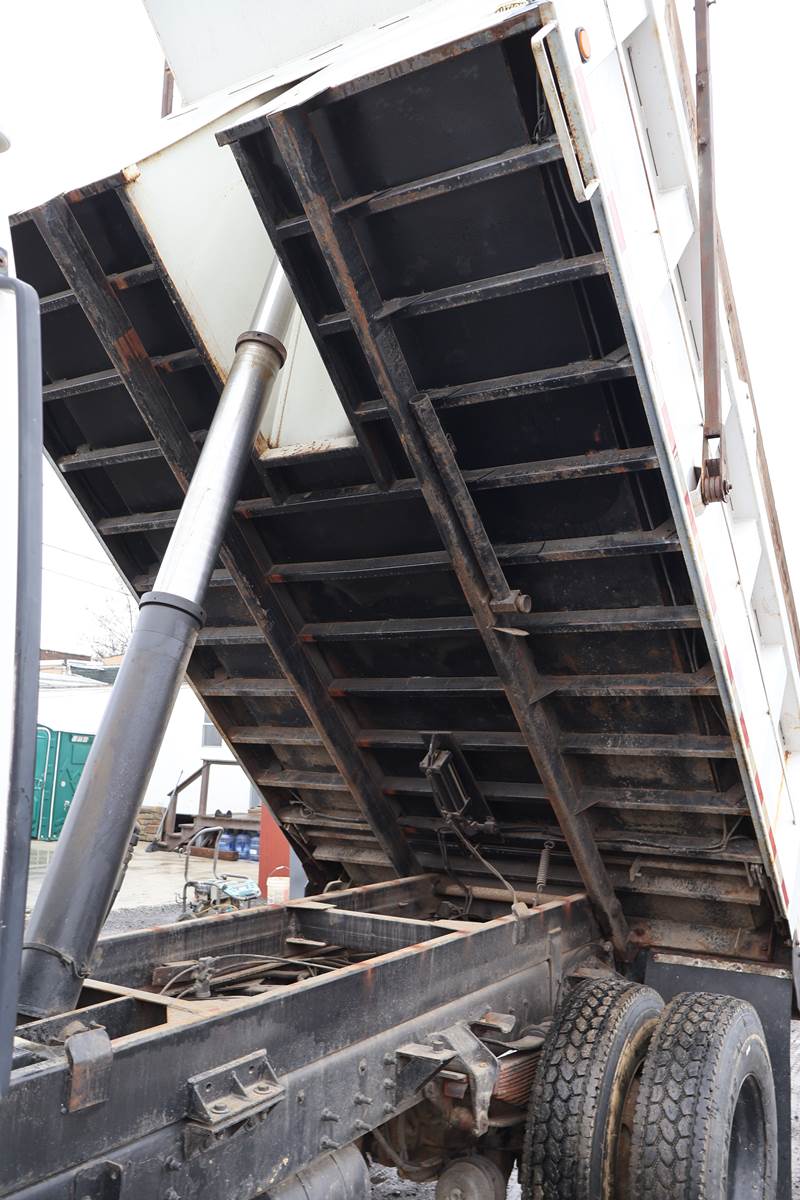 1998 Ford L8501 Single Axle Dump Truck with 155,309 Miles. Cat 3126 Engine, 6 Speed Manual Transmission. GVWR 33,000, Air Brake, Trailer Tow Package, 16' x 96" Steel Ox Body Dump Body, 176" Wheelbase. New 11R22.5 Tires, Plumbed for Snowplow. Video and Financing Available. Call Today!