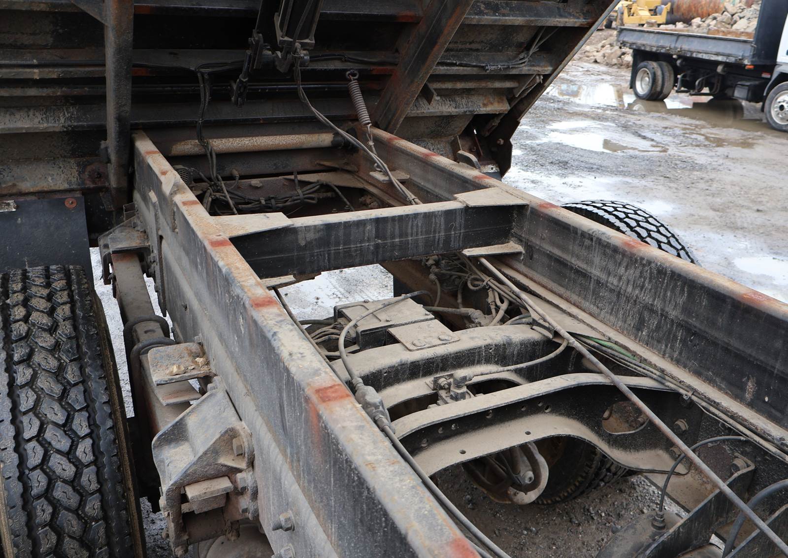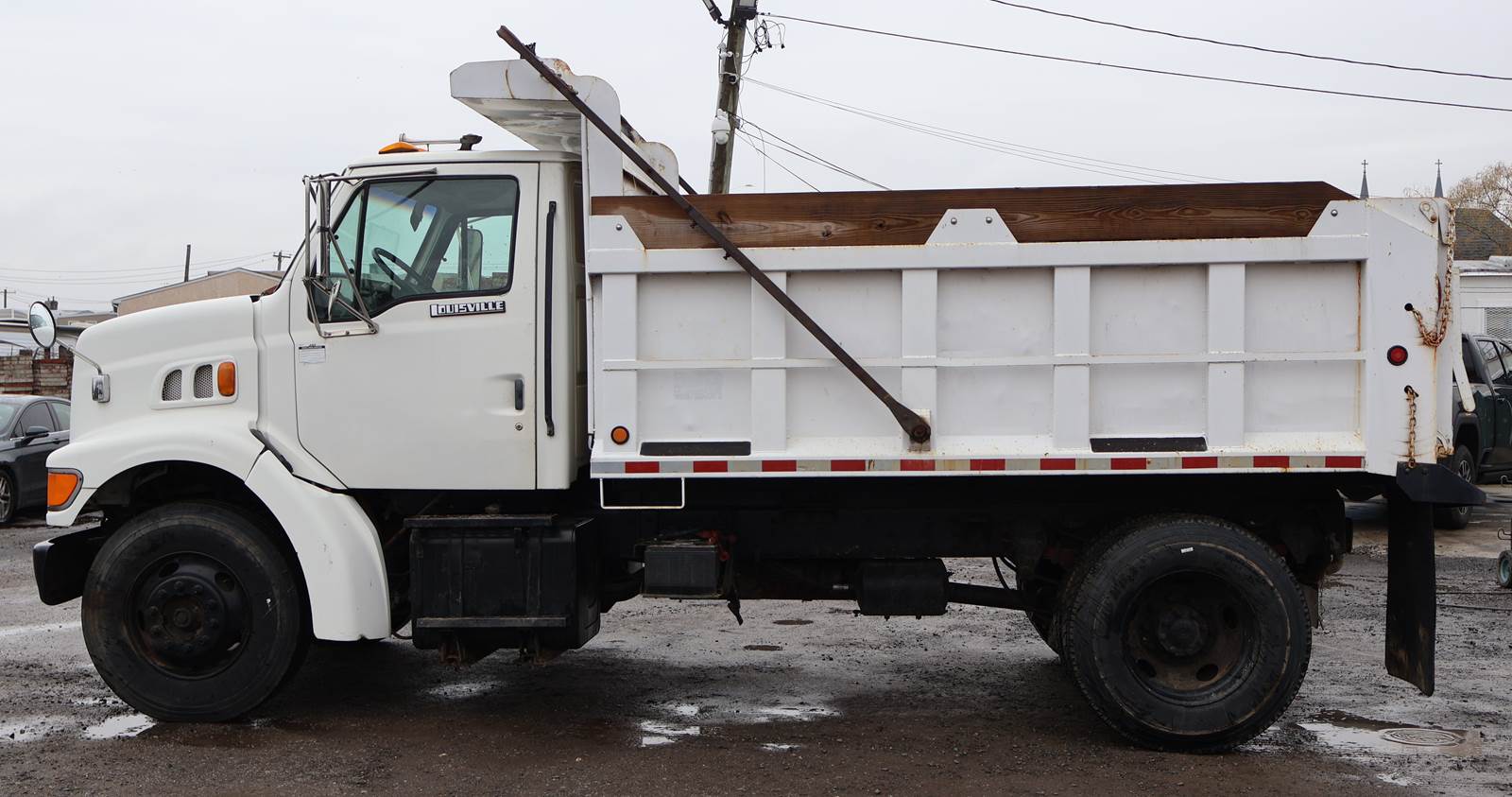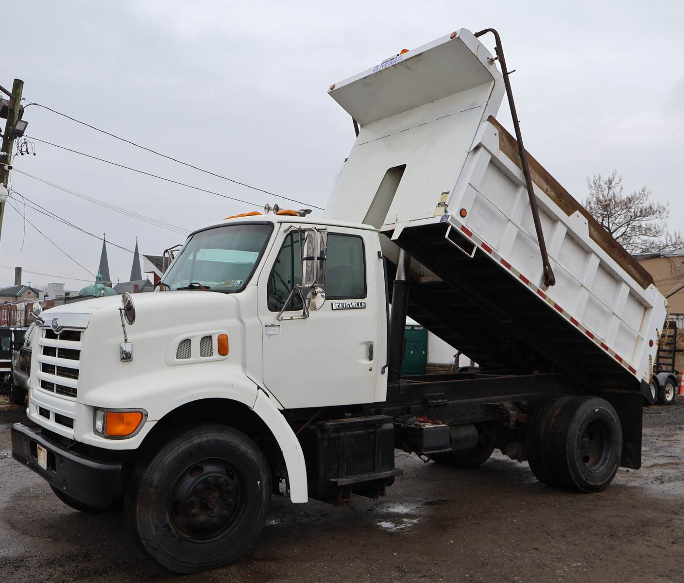 1998 Ford L8501 Single Axle Dump Truck with 155,309 Miles. Cat 3126 Engine, 6 Speed Manual Transmission. GVWR 33,000, Air Brake, Trailer Tow Package, 16' x 96" Steel Ox Body Dump Body, 176" Wheelbase. New 11R22.5 Tires, Plumbed for Snowplow. Video and Financing Available. Call Today!