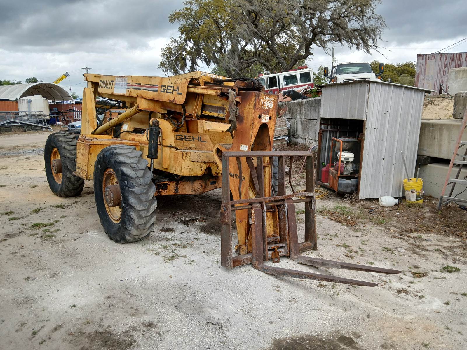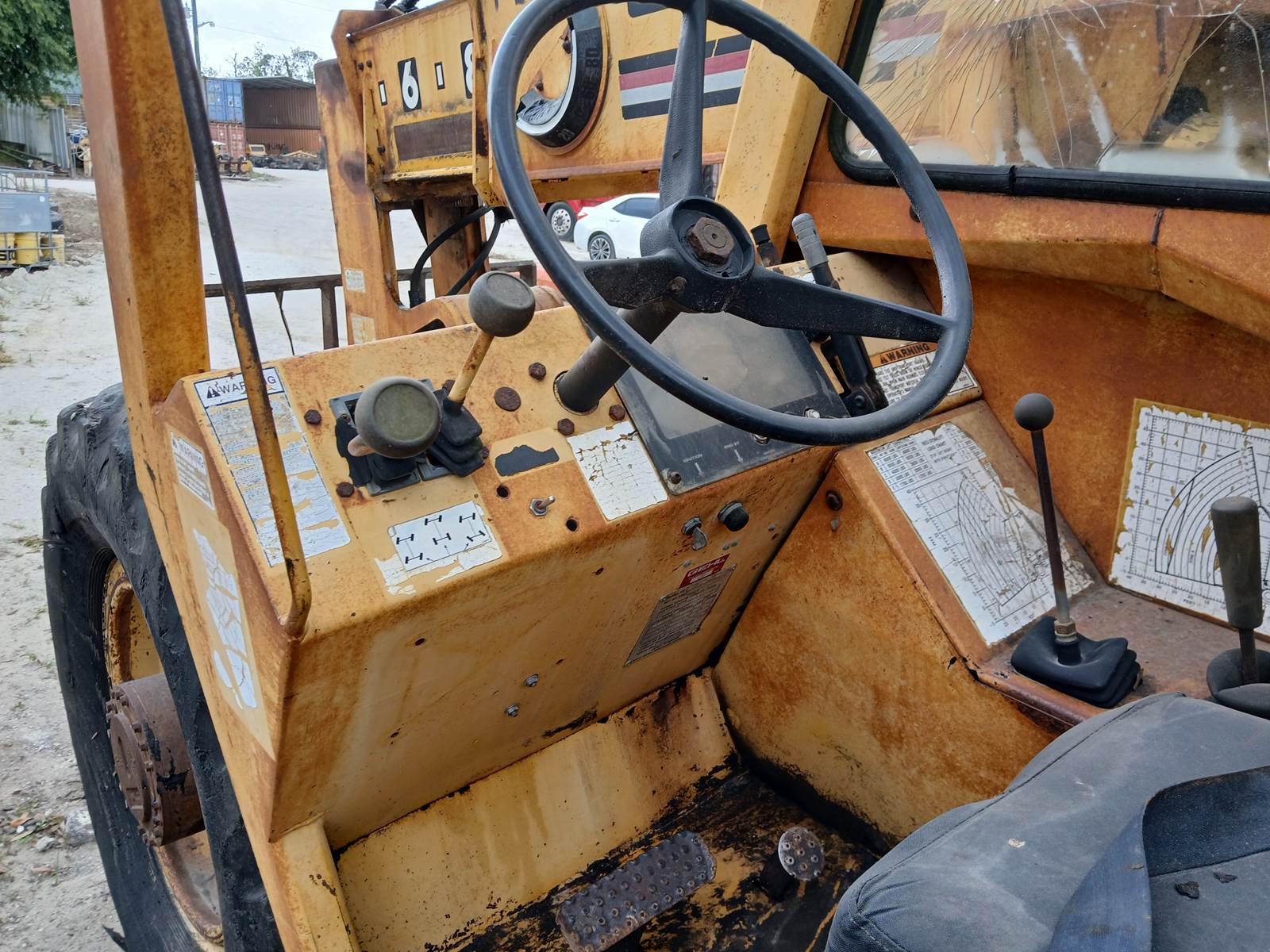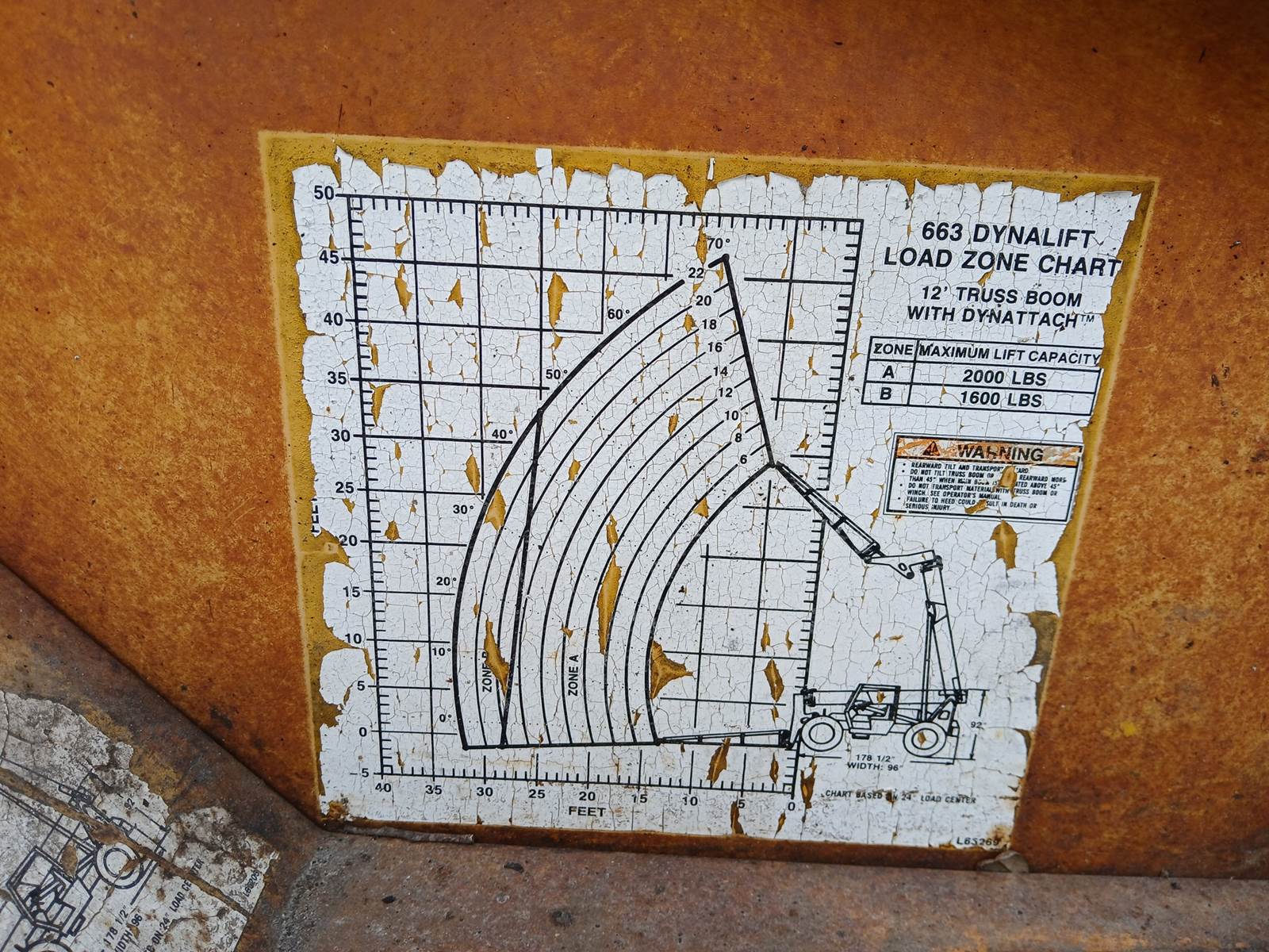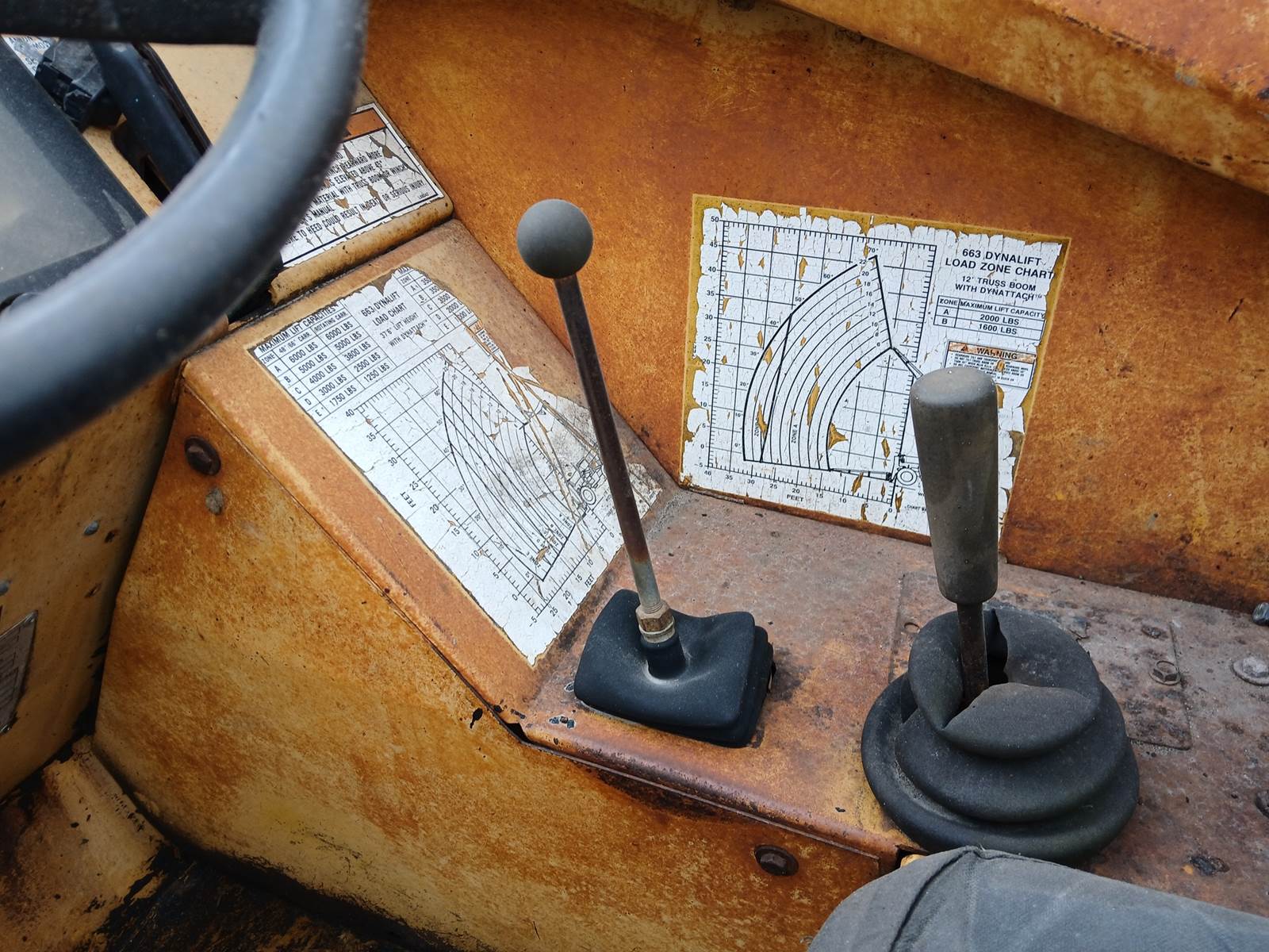 GEHL model 663, 37.7' articulating crane. 19,000 lbs. 12' truss boom. Max lift 6,000 lbs. John Deere Debuque diesel powered. 1300 x 24 tires. Runs and operates.