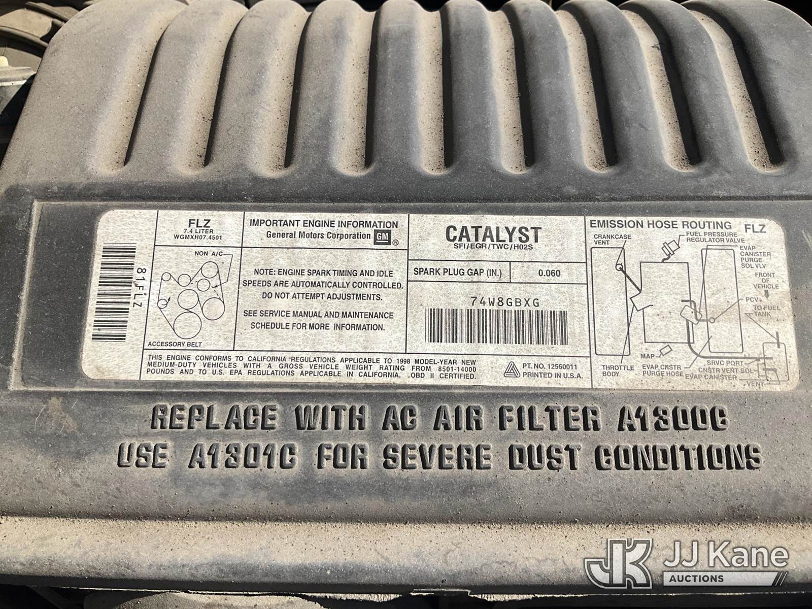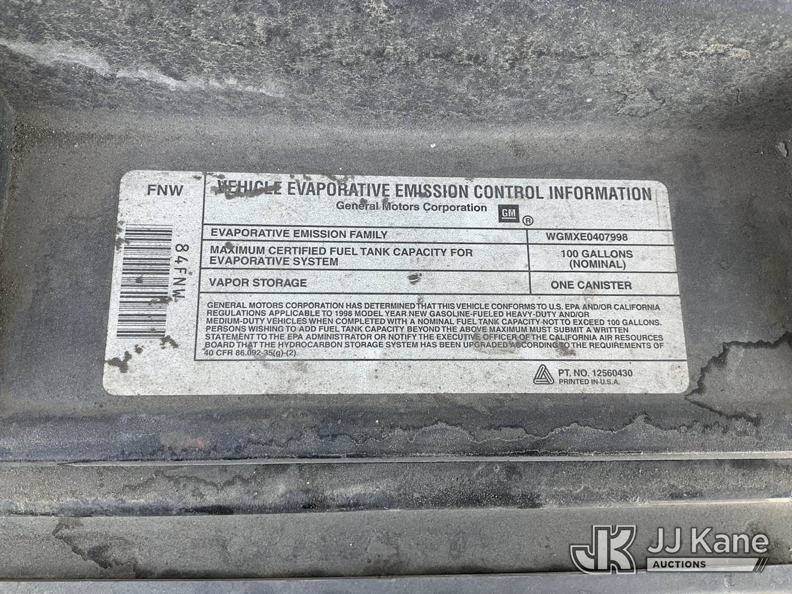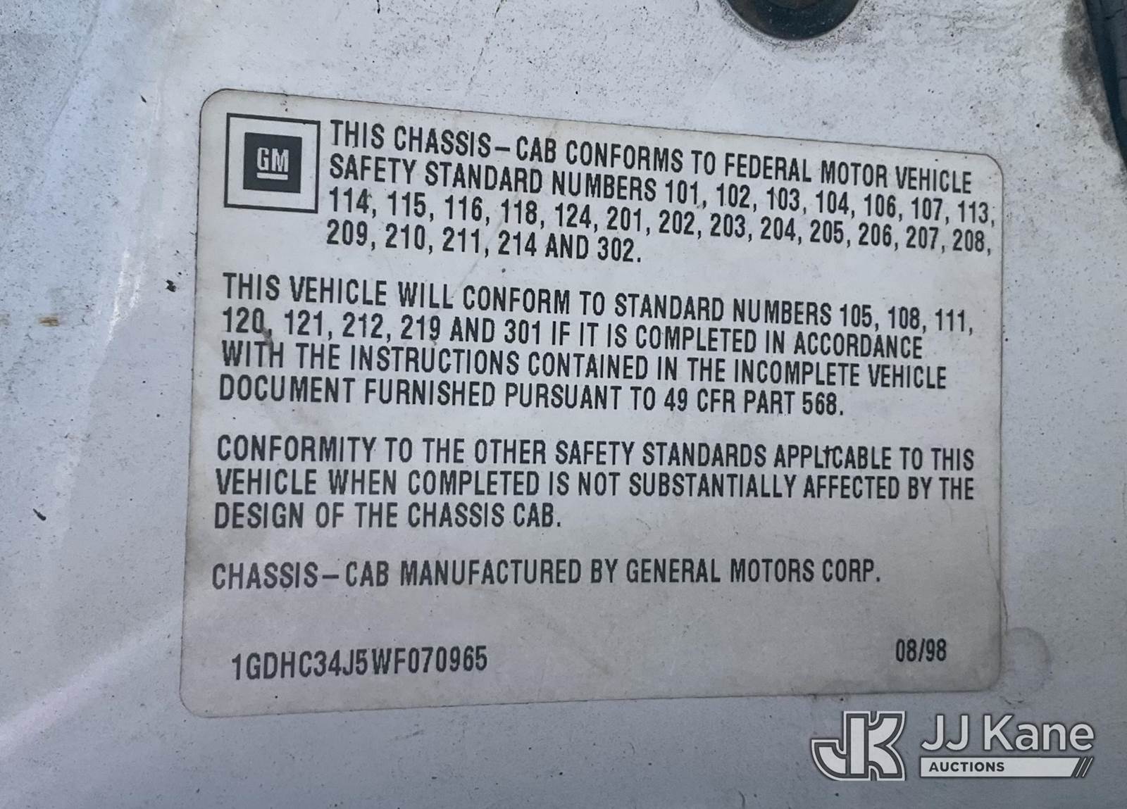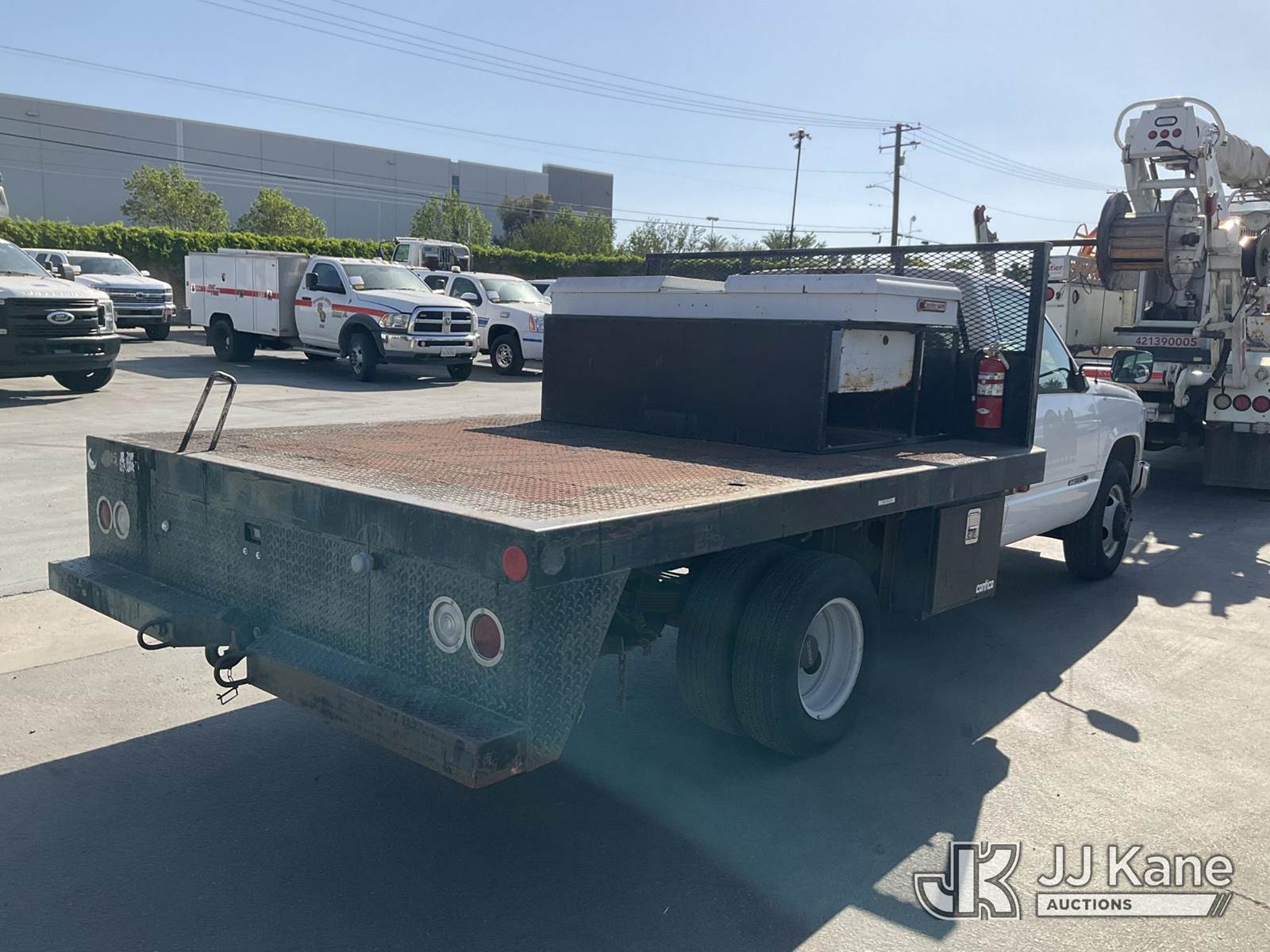 1998 GMC Sierra C/K 3500 Reg. Cab 2WD Flatbed/Service Truck, s/n 1GDHC34J5WF070965, 7.4L V8 OHV 16V RWD, GAS, 4-Speed Automatic, A/C, with tow package, (Exempt from Odometer Disclosure - Reads 34,025 miles) (Runs & Moves, Missing GVWR Sticker, Turn Signals Not Working ) (Bidding Restricted to Licensed Vehicle Dealers Only), This is a Titled Item NOTE: This unit is being sold AS IS/WHERE IS via Timed Auction and is located in Jurupa Valley, CA. Inspection & preview days for this unit are the 2 business days prior to the first day of items closing for this auction, item is located at 4510 Muth Way Jurupa Valley, CA 92509 and hours of operations are 8a-4p. For pre-sale questions, please contact please contact Office Staff @ (310) 353-7140. Dealer License Number 45696. (Buyer is responsible for removal. Assistance by consignor or JJ Kane Auctions is not assured.)