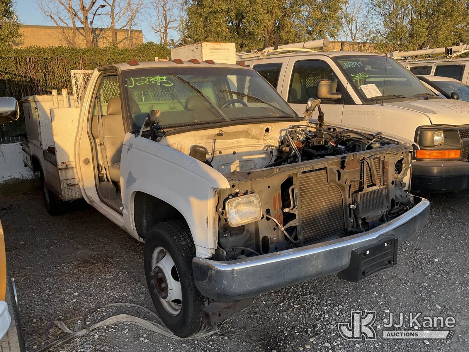 1998 GMC Sierra C/K 3500 Service Truck, s/n 1GDJC34J6WF032663, 7.4L V8 OHV 16V RWD, GAS, Auto, A/C, with Tow Package, True Mileage Unknown (Not Running, Condition Unknown) (Per Seller Missing Parts, Without Engine & Transmission, Missing Hood, Body Damage, Rust Damage, Must Be Towed) (Bidding Restricted to Licensed Vehicle Dealers Only), This is a Titled Item NOTE: This unit is being sold AS IS/WHERE IS via Timed Auction and is located in Jurupa Valley, CA. Inspection & preview days for this unit are the 2 business days prior to the first day of items closing for this auction, item is located at 4510 Muth Way Jurupa Valley, CA 92509 and hours of operations are 8a-4p. For pre-sale questions, please contact please contact Office Staff @ (310) 353-7140. Dealer License Number 45696. (Buyer is responsible for removal. Assistance by consignor or JJ Kane Auctions is not assured.)