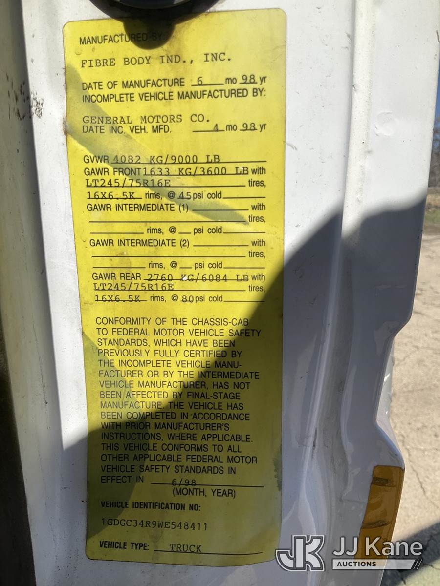 1998 GMC Sierra C/K 3500 Service Truck, 8-cyl gas, RWD, Auto, (Exempt from Odometer Disclosure - Reads 49,849 miles) (Runs & Moves) (Rust Damage) This is a Titled Item NOTE: This unit is being sold AS IS/WHERE IS via Timed Auction and is located in South Beloit, IL. Inspection & preview days for this unit are the 2 business days prior to the first day of items closing for this auction, item is located at 14354 Dearborn Ave South Beloit, IL and hours of operations are 8a-4p. For pre-sale questions, please contact Derek Eklund at (608) 904-0618 or (derek.eklund@jjkane.com). (Buyer is responsible for removal. Assistance by consignor or JJ Kane Auctions is not assured.)