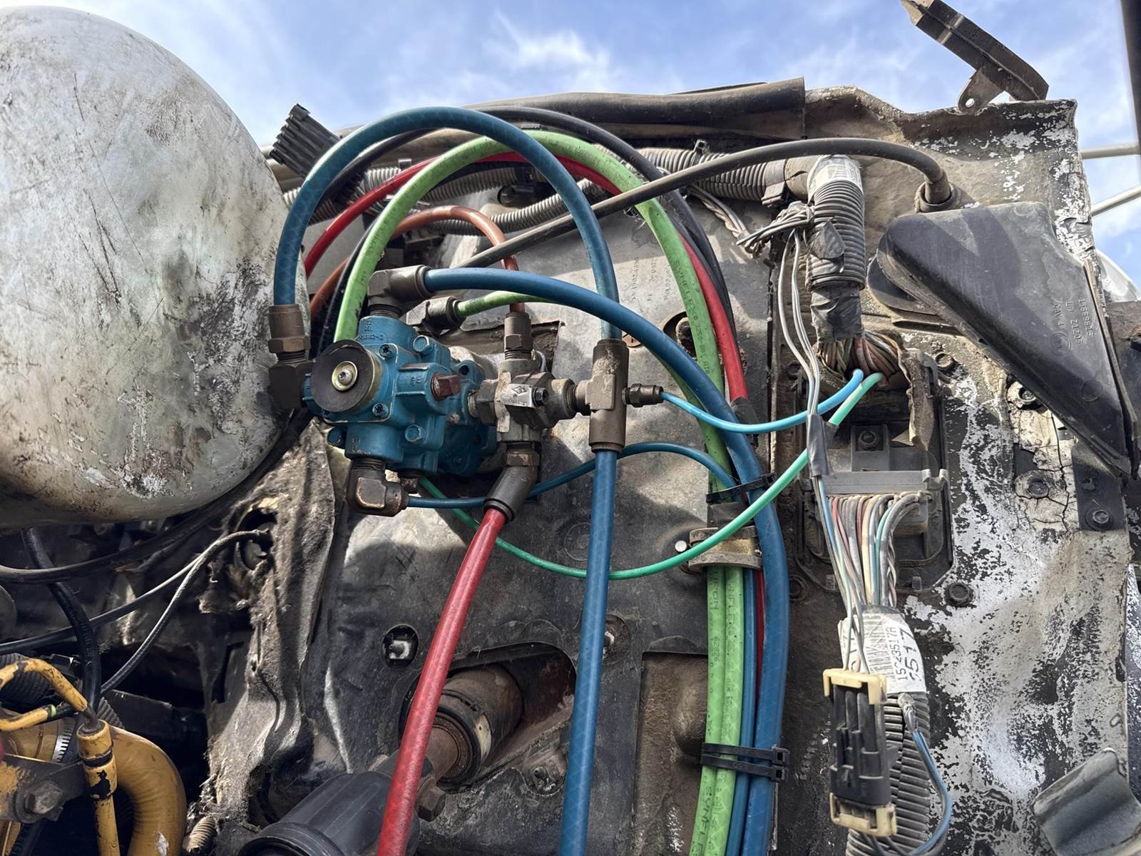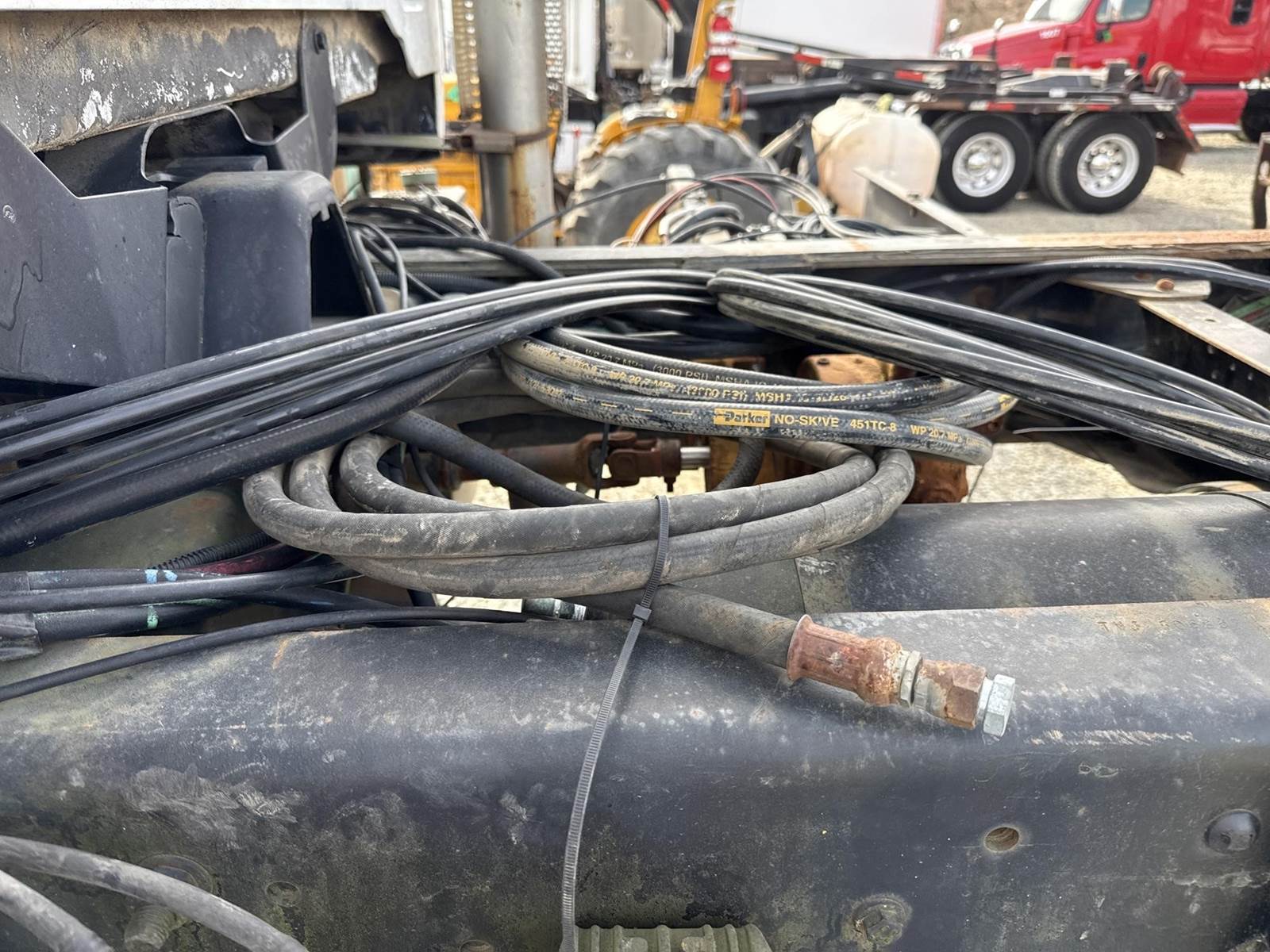 Caterpillar 3116 Turbo Diesel Engine, Allison Automatic Transmission, 35000LB GVWR, 12000LB Front Axle GAWR, PTO, Approx. 15' Frame Length from Back of Cab, Spring Ride Suspension, Air Brakes, Double Frame, Rear Air/Hydraulic/Electrical Lines, Raven Spray Control Console, Heat/AC, Radio, 385/85R34 Tires