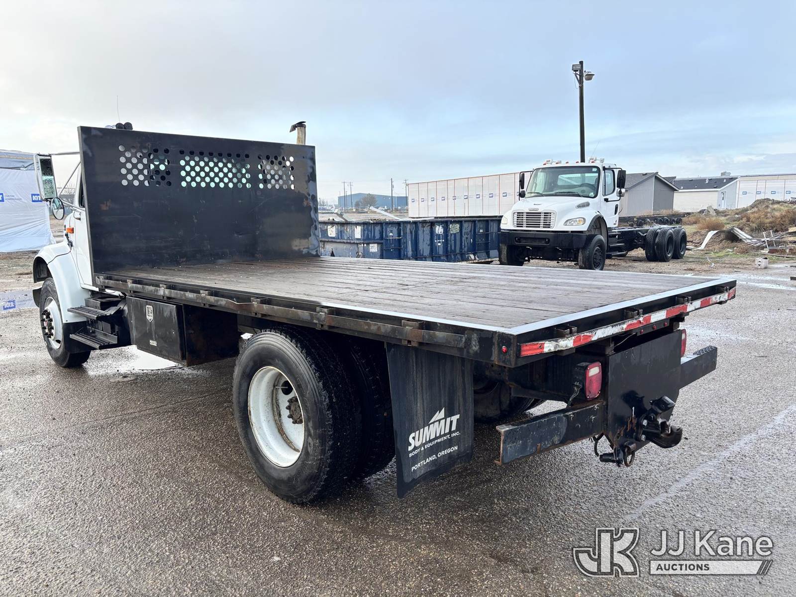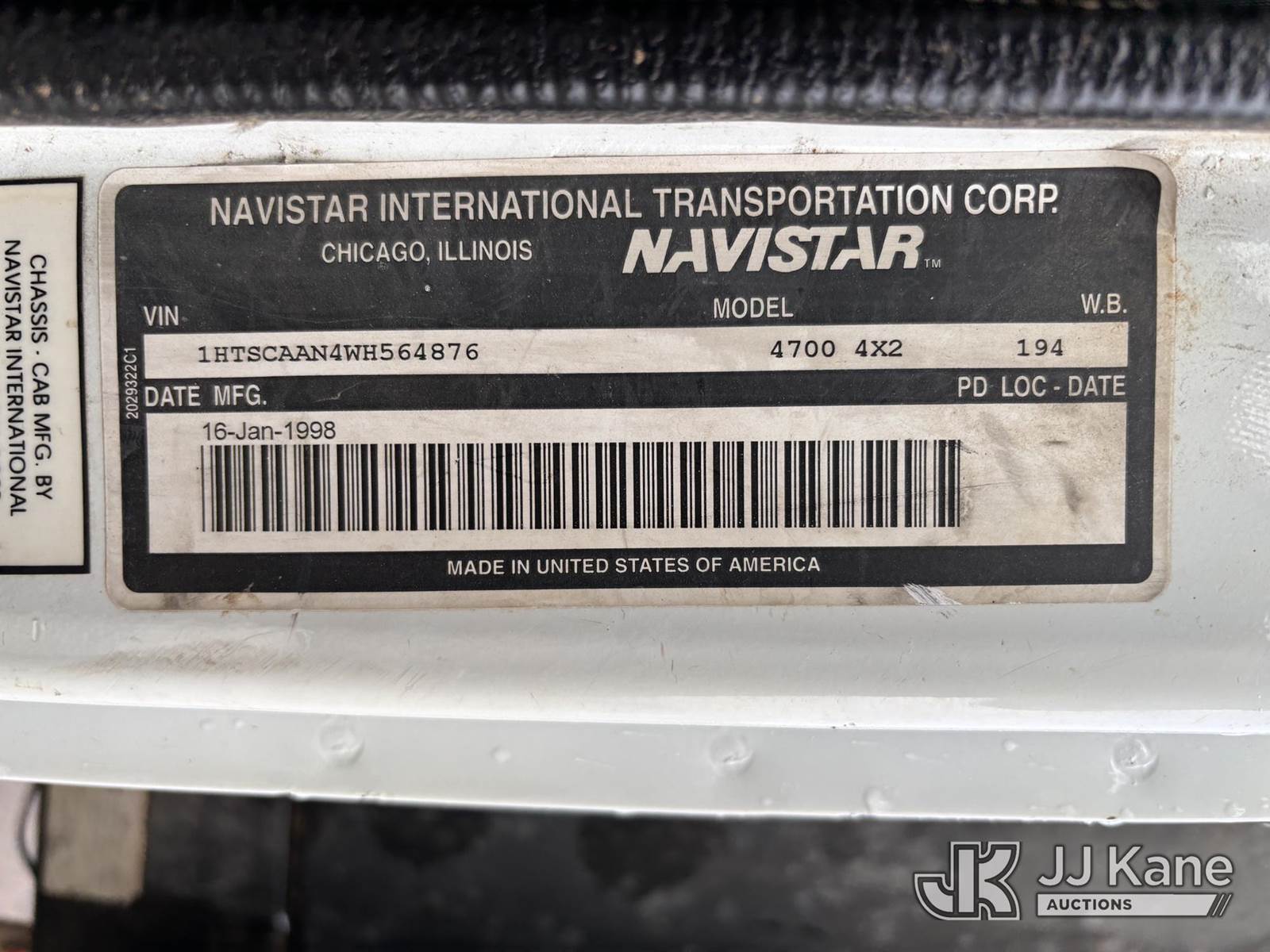 1998 International 4700 Flatbed Truck, 7.6L diesel, 7-spd, 4X2, A/C, with Deck Dimensions: 176in L x 98in W, (Exempt from Odometer Disclosure - Reads 80,918 miles) (Runs & Moves) This is a Titled Item NOTE: This unit is being sold AS IS/WHERE IS via Timed Auction and is located in Nampa, ID. For more information & removal arrangements please contact Mike Vantrimpont @ (208) 986-2285. (Buyer is responsible for removal. Assistance by consignor or JJ Kane Auctions is not assured.)