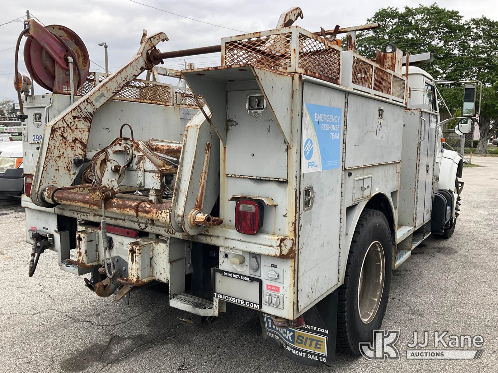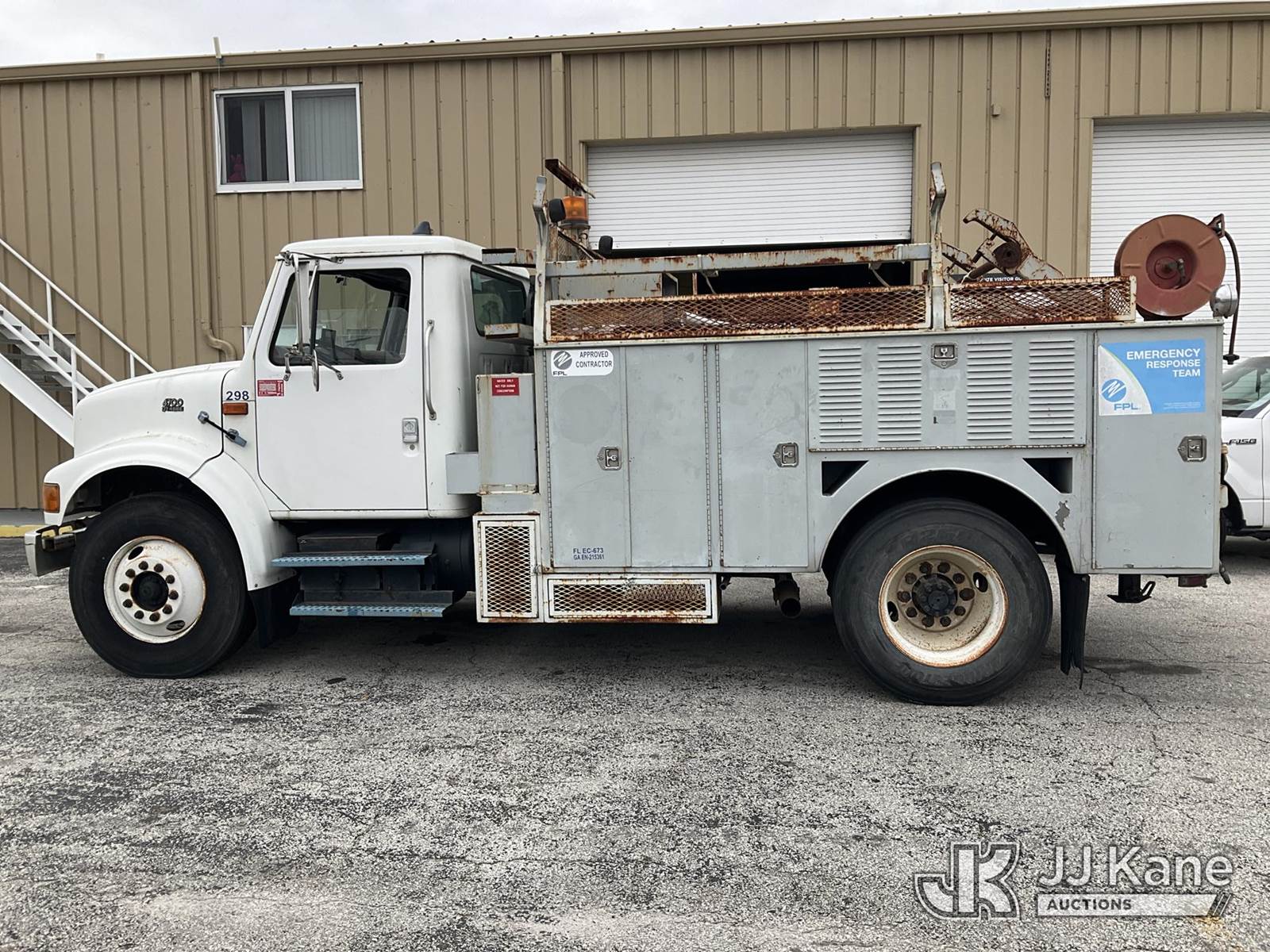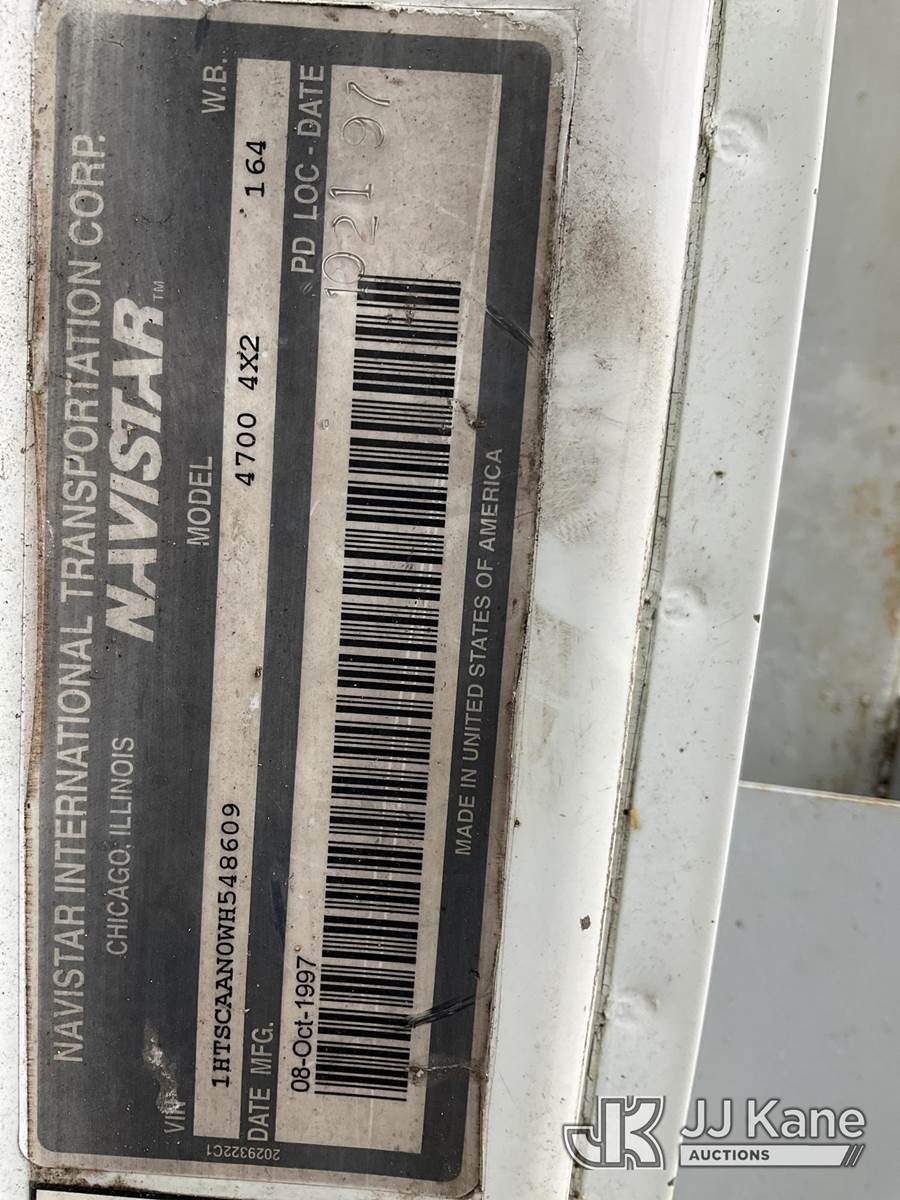 1998 International 4700 Reel Loader Truck, 7.6L L6 DIESEL 4X2, Auto, A/C, with Reel Lifter, Bed Winch, Onan Commercial 4500, (Exempt from Odometer Disclosure - Reads 78,390 miles) (Runs & Moves, Front Bumper Damage, Paint Damage & Rust) (FL Residents Purchasing Titled Items – tax, title & registration fees will be collected at the maximum rate of $400.00 under 25,999 and $800.00 for Over 26,000 and $250.00 for Trailers – Proof of insurance is mandatory; Out of State Residents Purchasing Title Items – tax will be collected based upon your state rate) This is a Titled Item NOTE: This unit is being sold AS IS/WHERE IS via Timed Auction and is located in West Palm Beach, FL. Inspection & preview days for this unit are the 2 business days prior to the first day of items closing for this auction, item is located at 2570 Old Okeechobee Rd West Palm Beach, FL 33409 and hours of operations are 8a-4p. For pre-sale questions, please contact Andy Garcia @ (561) 215-0085. (Buyer is responsible for removal. Assistance by consignor or JJ Kane Auctions is not assured.)