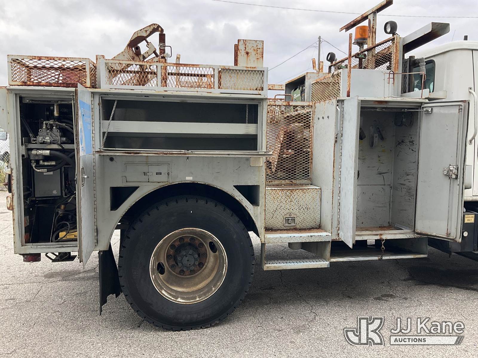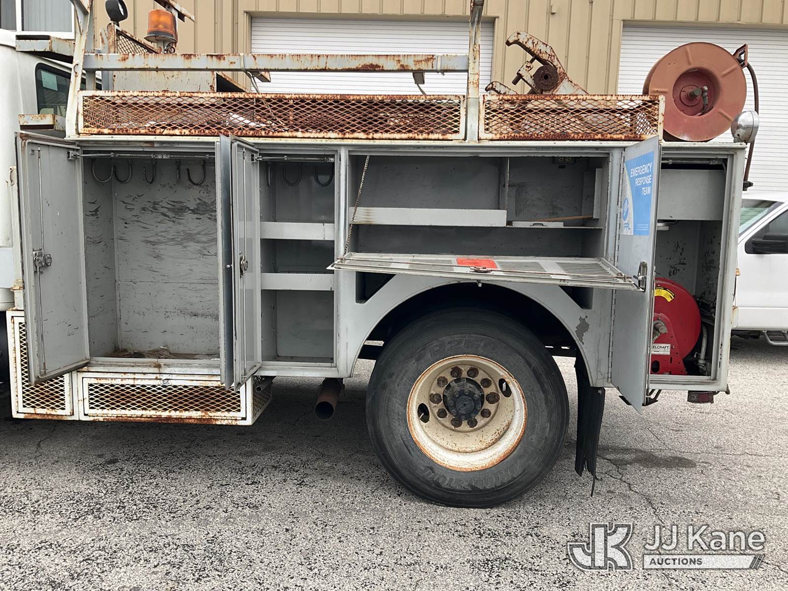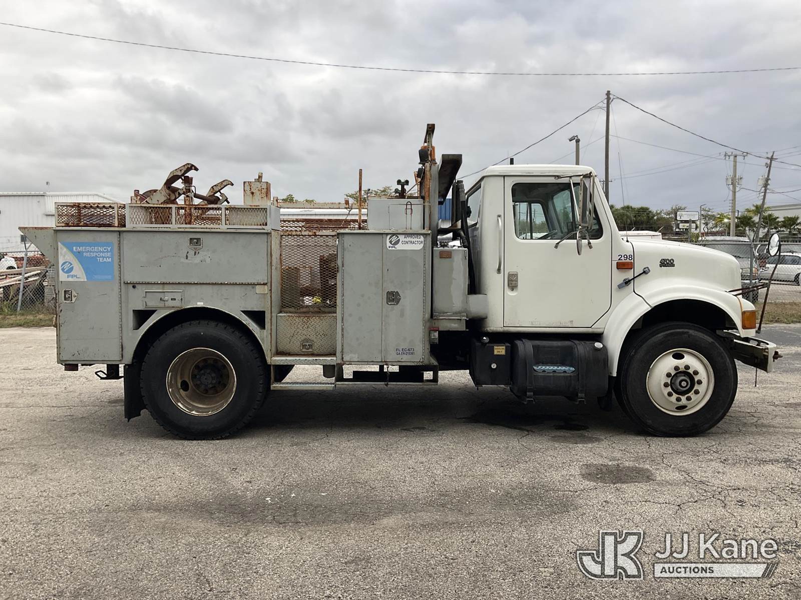 1998 International 4700 Reel Loader Truck, 7.6L L6 DIESEL 4X2, Auto, A/C, with Reel Lifter, Bed Winch, Onan Commercial 4500, (Exempt from Odometer Disclosure - Reads 78,390 miles) (Runs & Moves, Front Bumper Damage, Paint Damage & Rust) (FL Residents Purchasing Titled Items – tax, title & registration fees will be collected at the maximum rate of $400.00 under 25,999 and $800.00 for Over 26,000 and $250.00 for Trailers – Proof of insurance is mandatory; Out of State Residents Purchasing Title Items – tax will be collected based upon your state rate) This is a Titled Item NOTE: This unit is being sold AS IS/WHERE IS via Timed Auction and is located in West Palm Beach, FL. Inspection & preview days for this unit are the 2 business days prior to the first day of items closing for this auction, item is located at 2570 Old Okeechobee Rd West Palm Beach, FL 33409 and hours of operations are 8a-4p. For pre-sale questions, please contact Andy Garcia @ (561) 215-0085. (Buyer is responsible for removal. Assistance by consignor or JJ Kane Auctions is not assured.)