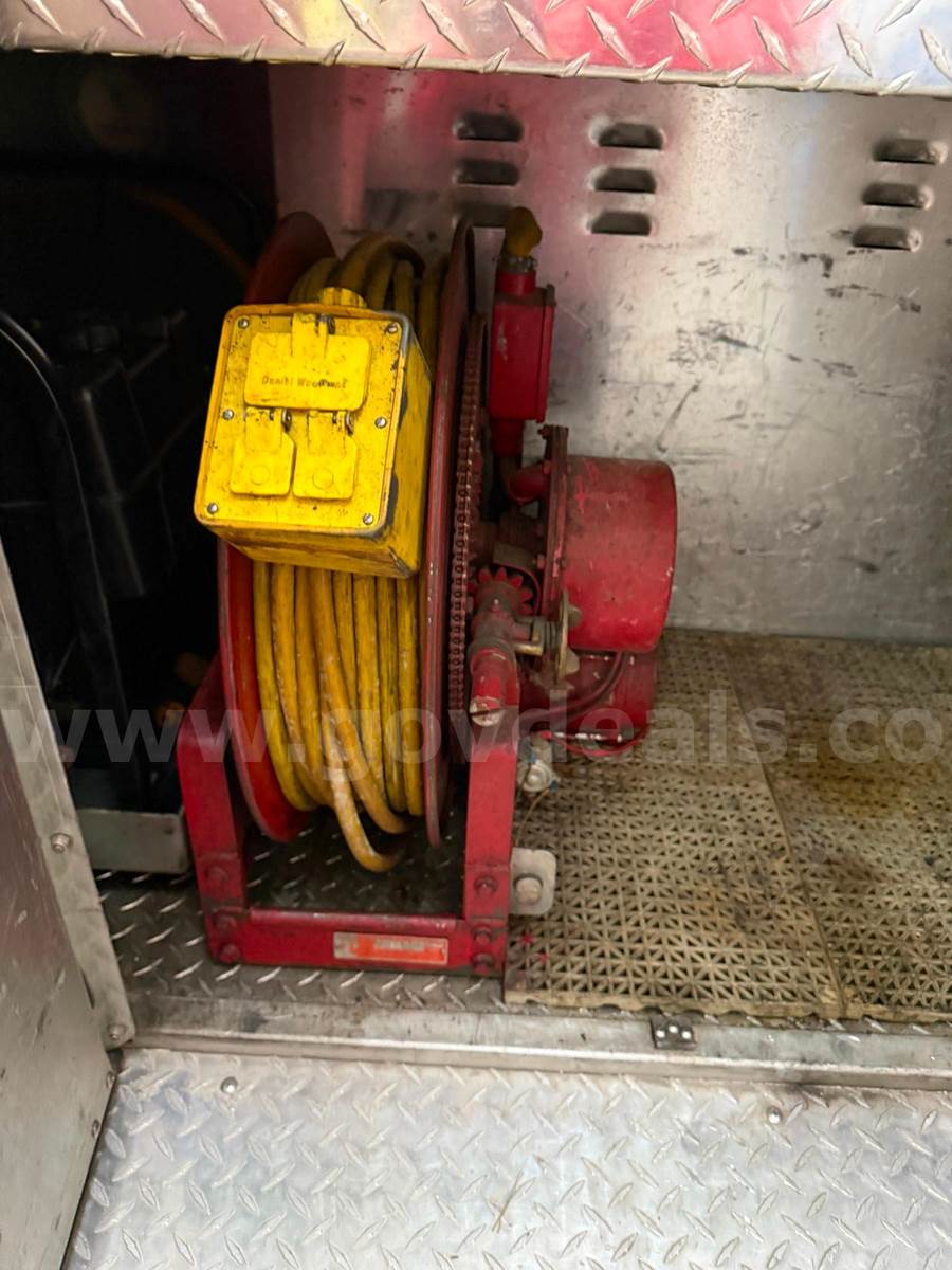 1998 International 4900 CONVENTIONAL CAB, 8.7L L6 DIESEL. Starts, runs, and drives Removed from service 02/13/2026 Engine - operable - dash works intermittently Transmission - operable Cracked upper right side windshield Scratches AC - cold Power steering Includes - MSA Evolution 5000 Thermal Imaging Camera - operable Briggs & Stratton generator with 100 foot cord real - 1250 pump and 1000 gallon with no deck gun - pump needs new packing