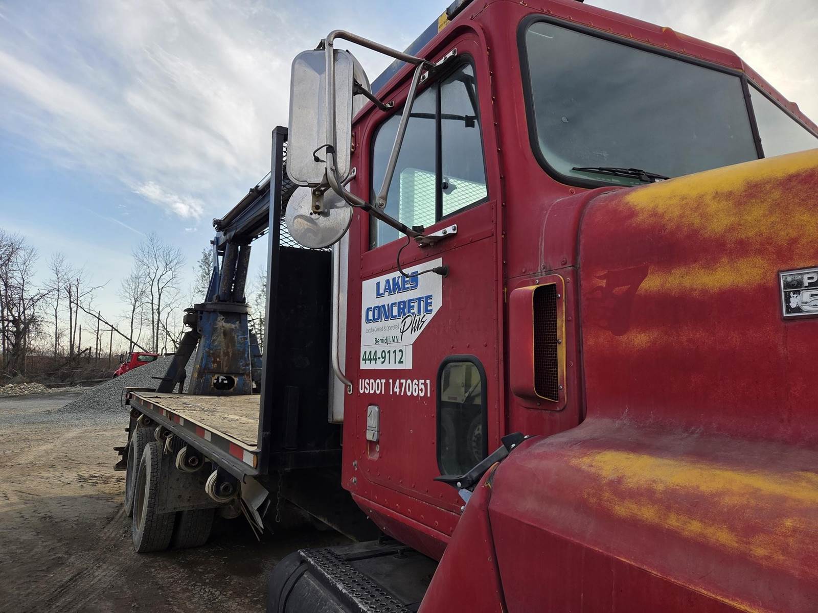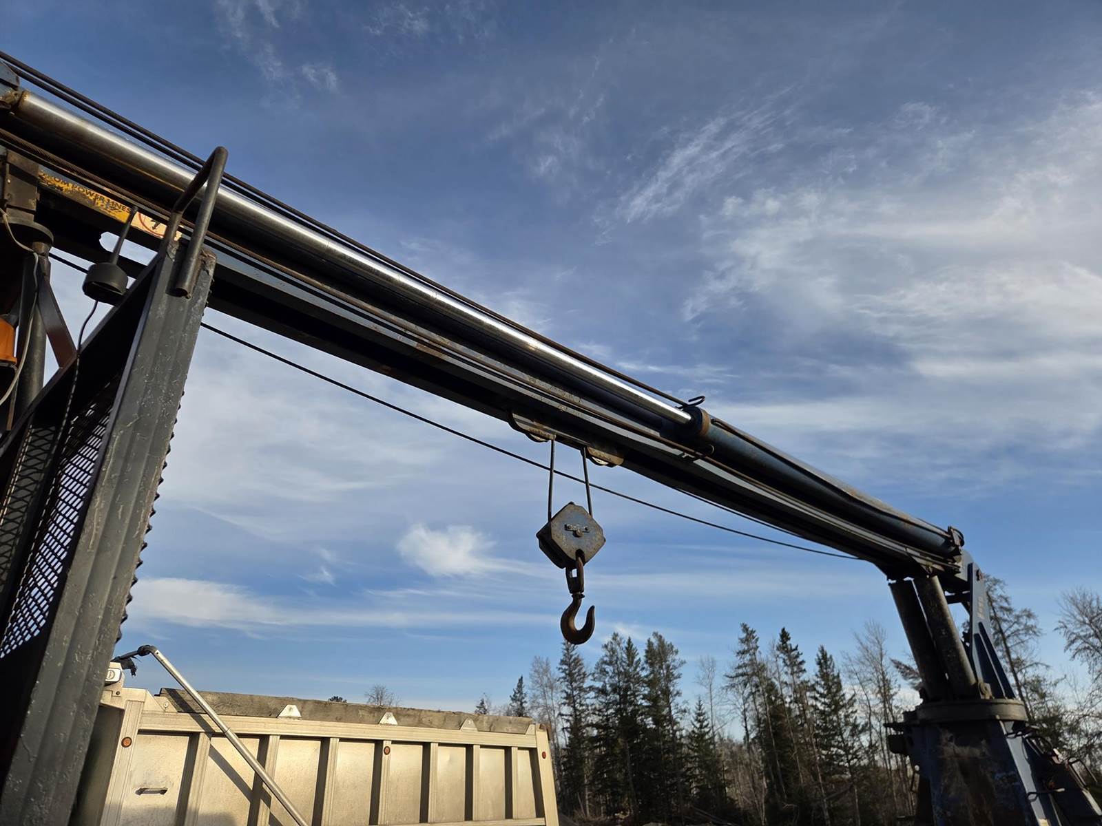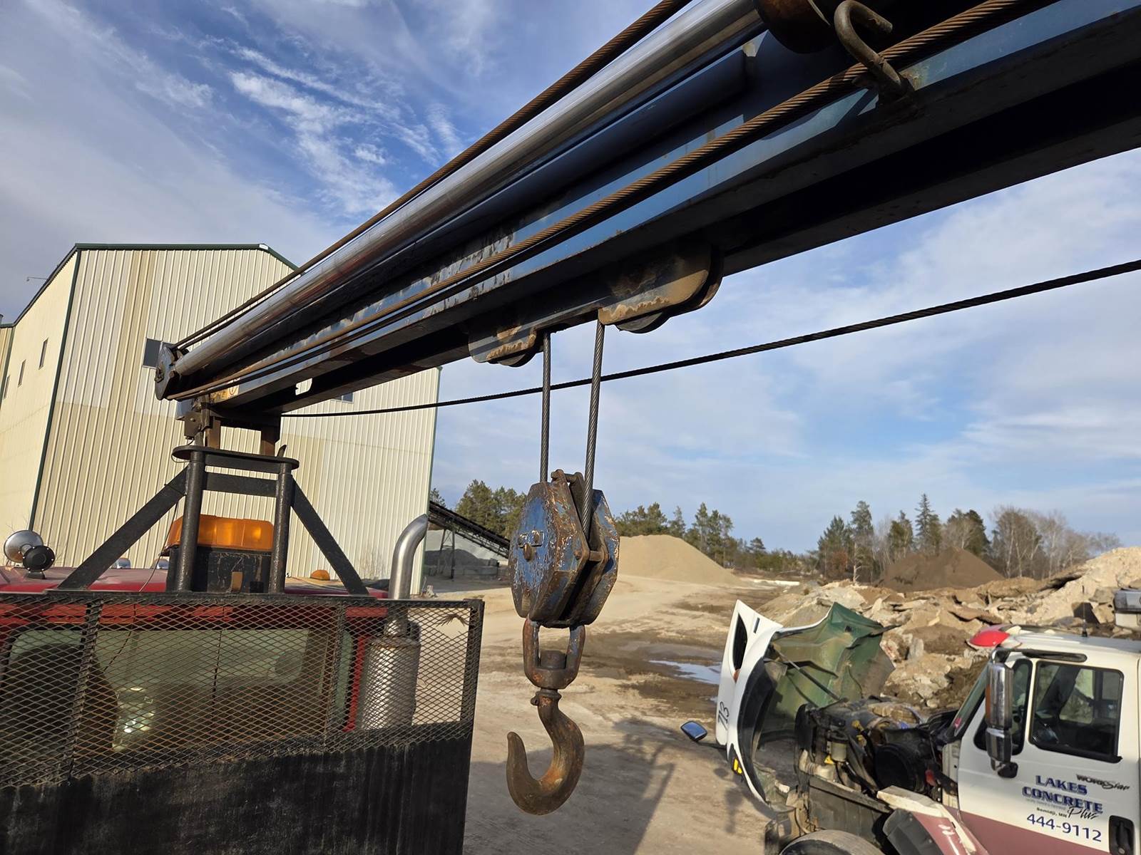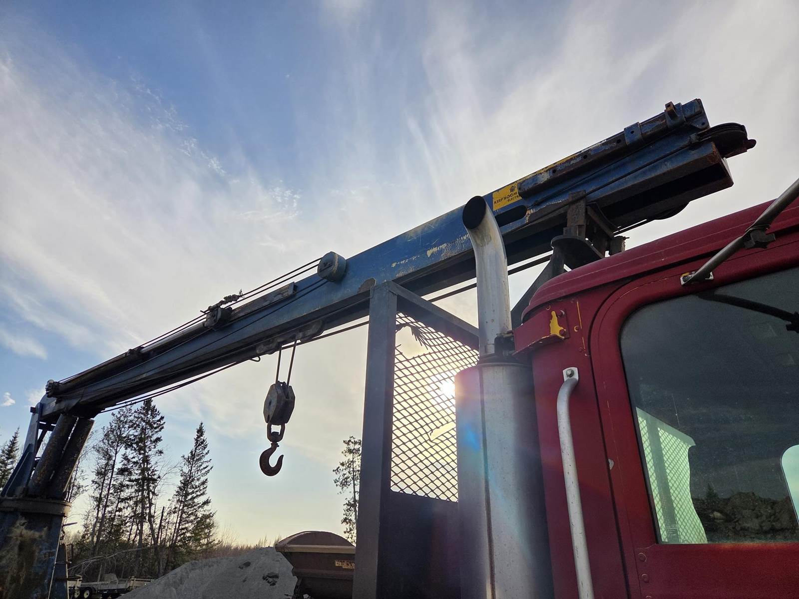 Cummins M11 Celect Plus Turbo Diesel Engine, Eaton Fuller 9 Speed Manual Transmission, 66000PB GVWR, 20000LB Front Axle GAWR, Interaxle Lock, Diff Lock, PTO, Double Frame, Walking Beam Suspension, Approx. 24' Bed, Approx. 96" Width, Outriggers, USTC PC-16E 16000LB Crane, Remote Control, Winch Straps, Heat/AC, Cruise Control, Heated Mirrors, 425/65R22.5 Front Tires, 275/80R22.5 Rear Tires