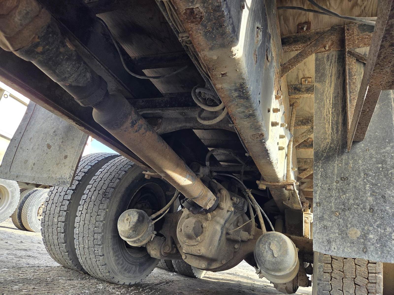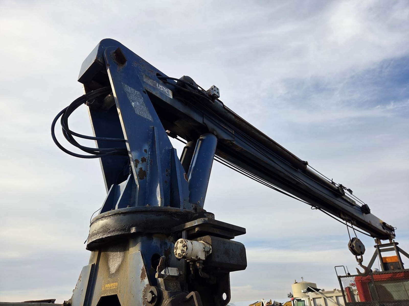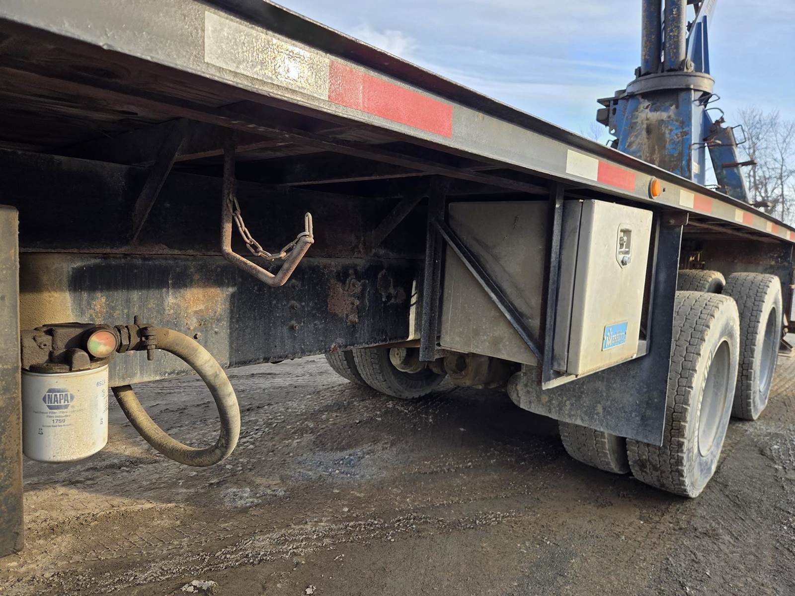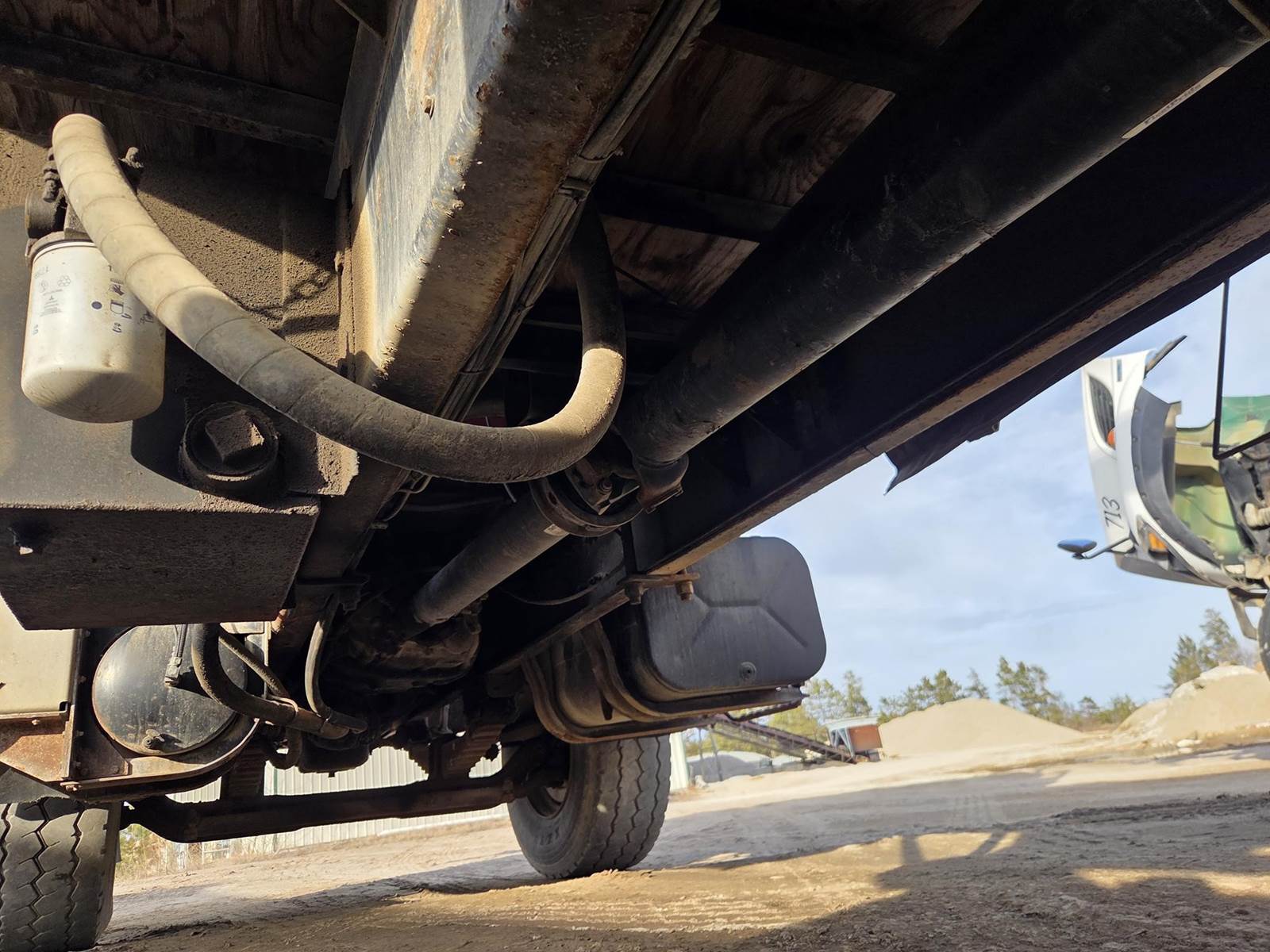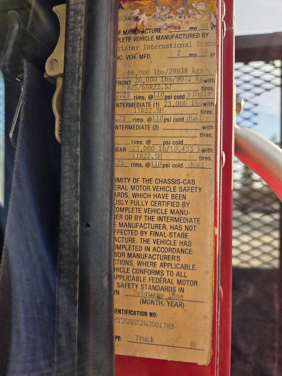 Cummins M11 Celect Plus Turbo Diesel Engine, Eaton Fuller 9 Speed Manual Transmission, 66000PB GVWR, 20000LB Front Axle GAWR, Interaxle Lock, Diff Lock, PTO, Double Frame, Walking Beam Suspension, Approx. 24' Bed, Approx. 96" Width, Outriggers, USTC PC-16E 16000LB Crane, Remote Control, Winch Straps, Heat/AC, Cruise Control, Heated Mirrors, 425/65R22.5 Front Tires, 275/80R22.5 Rear Tires
