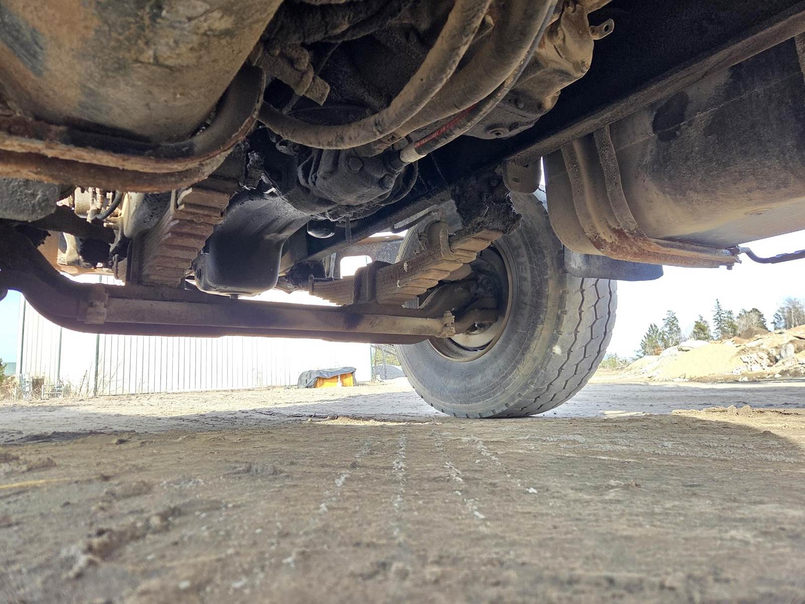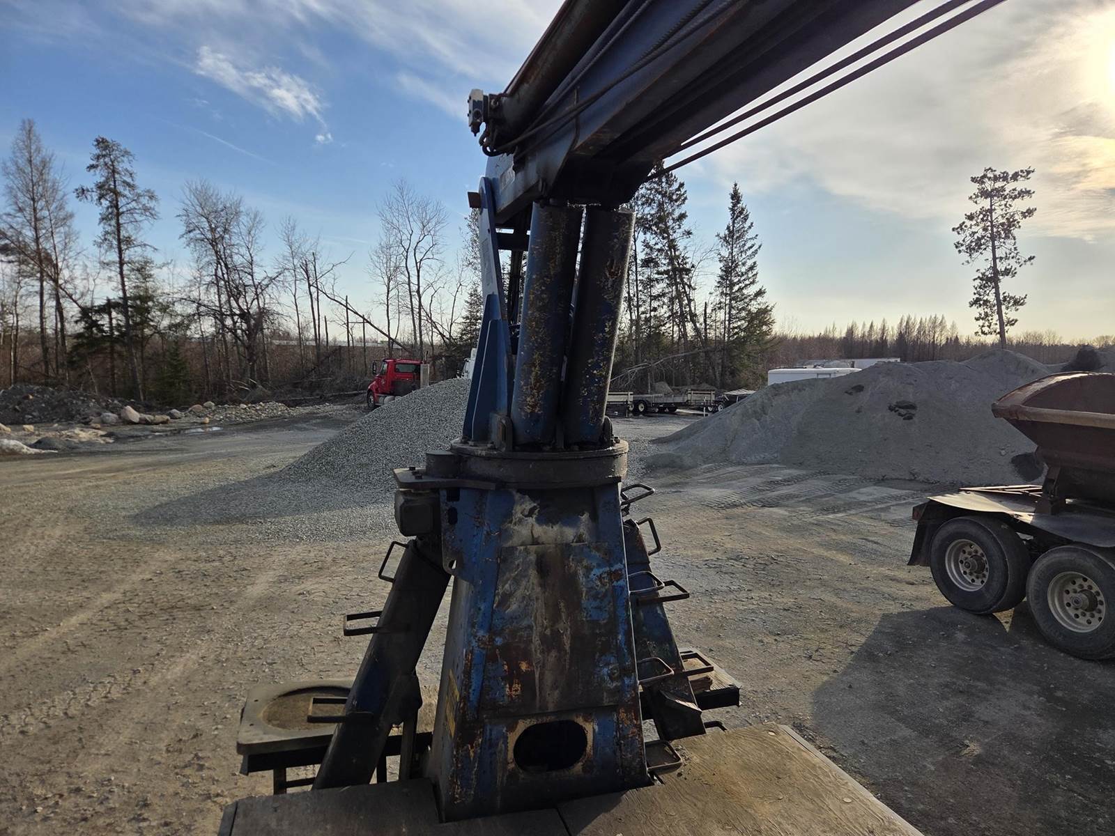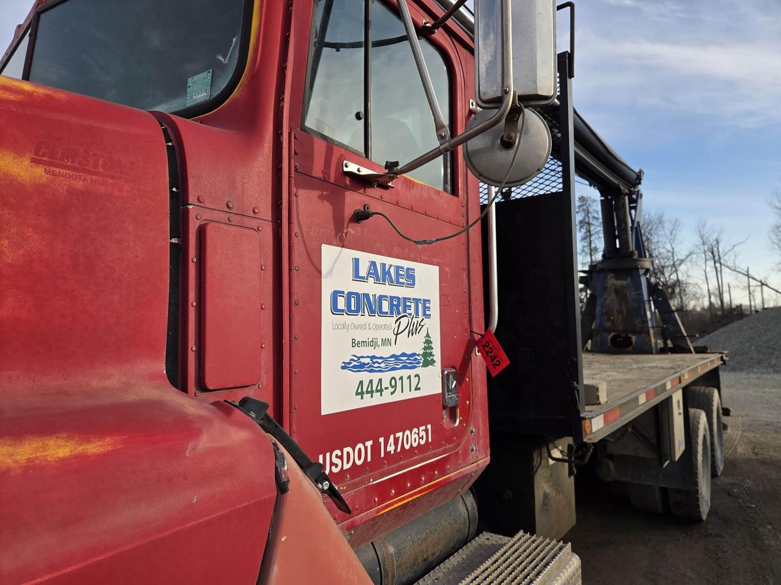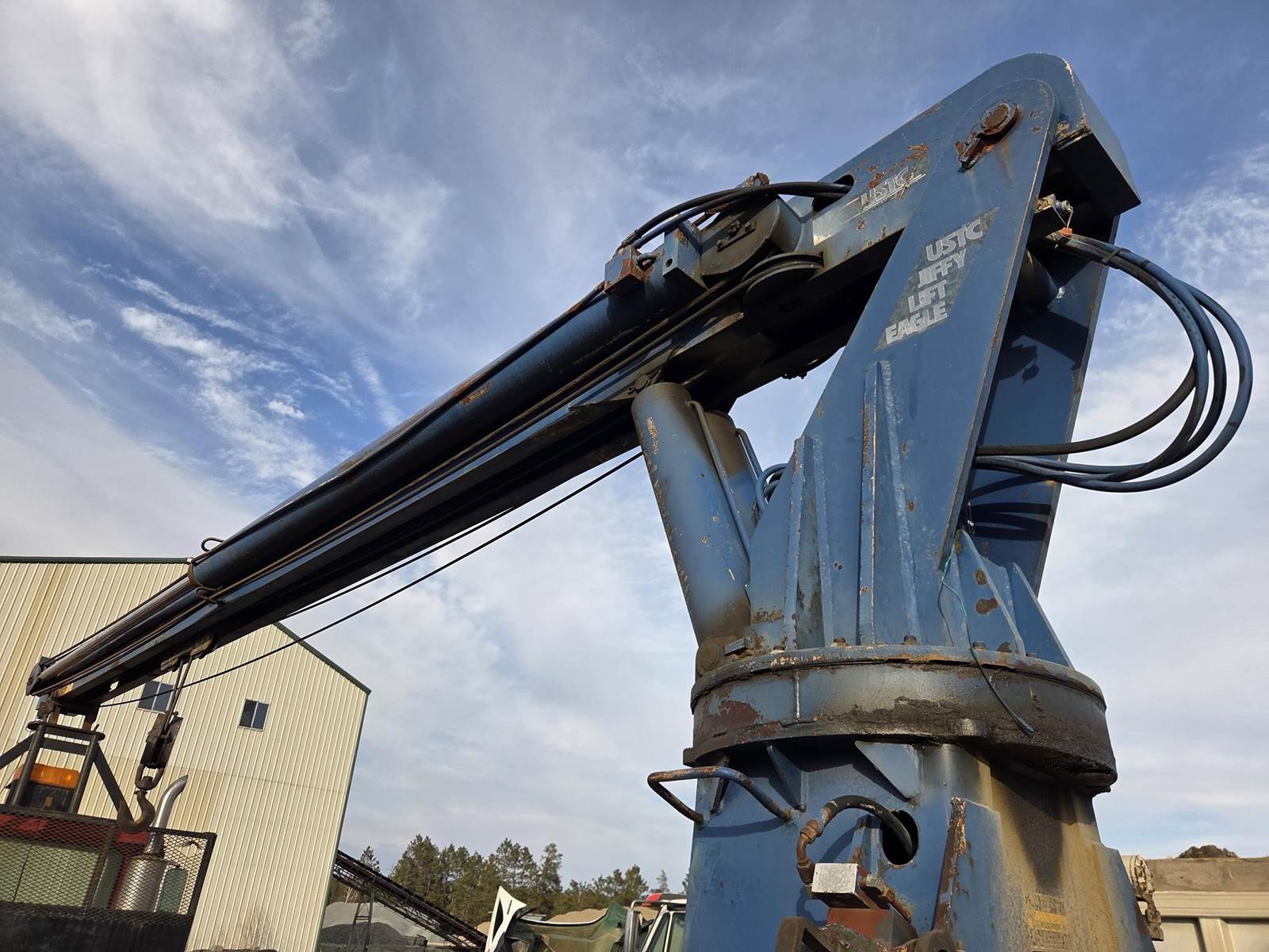 Cummins M11 Celect Plus Turbo Diesel Engine, Eaton Fuller 9 Speed Manual Transmission, 66000PB GVWR, 20000LB Front Axle GAWR, Interaxle Lock, Diff Lock, PTO, Double Frame, Walking Beam Suspension, Approx. 24' Bed, Approx. 96" Width, Outriggers, USTC PC-16E 16000LB Crane, Remote Control, Winch Straps, Heat/AC, Cruise Control, Heated Mirrors, 425/65R22.5 Front Tires, 275/80R22.5 Rear Tires