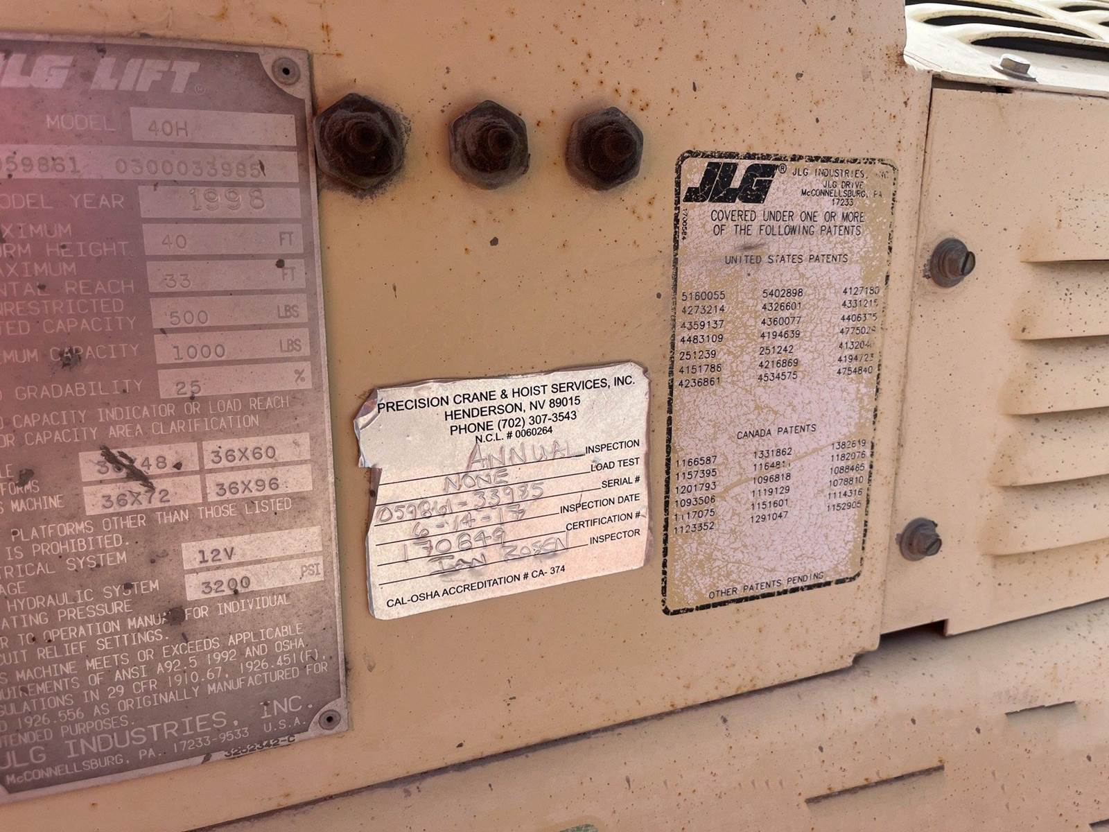Up for sale is a 1998 JLG 40H 2WD LPG Telescopic Boom Lift. 7,420 hrs Features: 40 ft Max Platform Height, 1000 lb Max Weight Capacity, Power to Platform, Ford 4 Cylinder LPG Engine, 12.5L-15SL Tires. Please call with any questions.