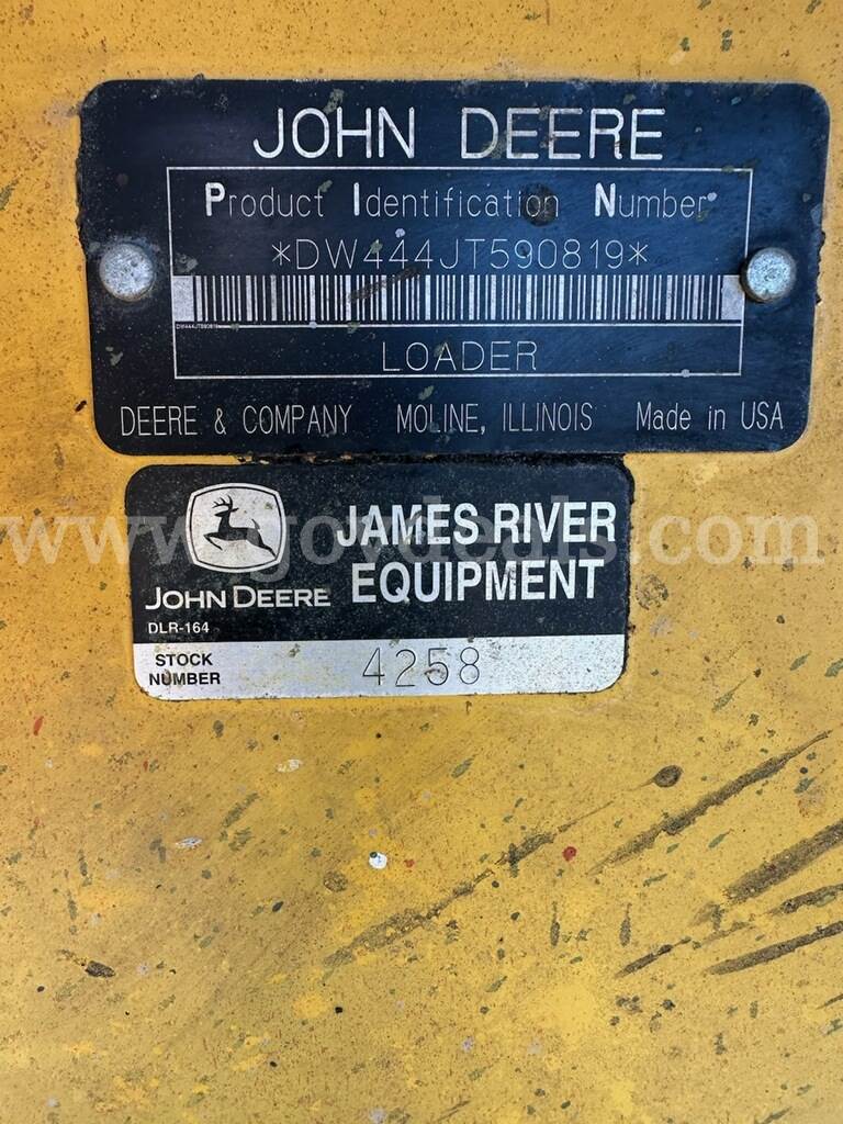 1998 John Deere Loader, Product ID Number DW444JT590819, Is in full working order. ** Hour Meter Not displaying **. Some parts may require repair or replacement. Normal wear and tear.