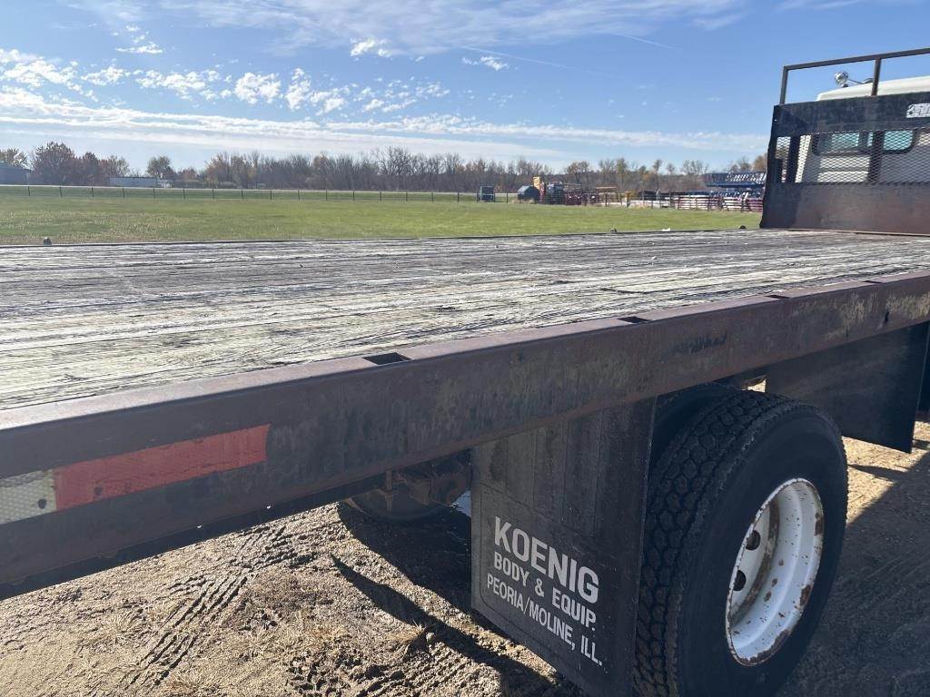 Location: Rice Lake, WI Cummins M11 Turbo Diesel Engine, Eaton 10 Speed Manual Transmission, Power Divider Lock, Approx 22' Flatbed Length,...