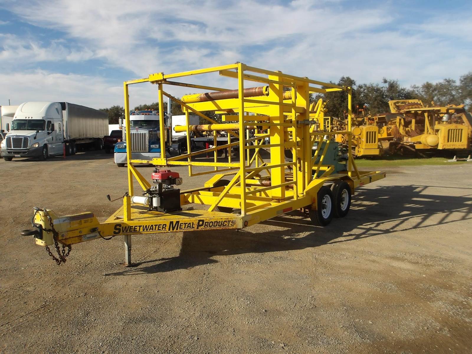 McElroy Poly Pipe Line Tamer on Sweetwater Trailer, Honda Hydraulic Power Unit, McElroy Line Tamer with 4"-6" rollers,