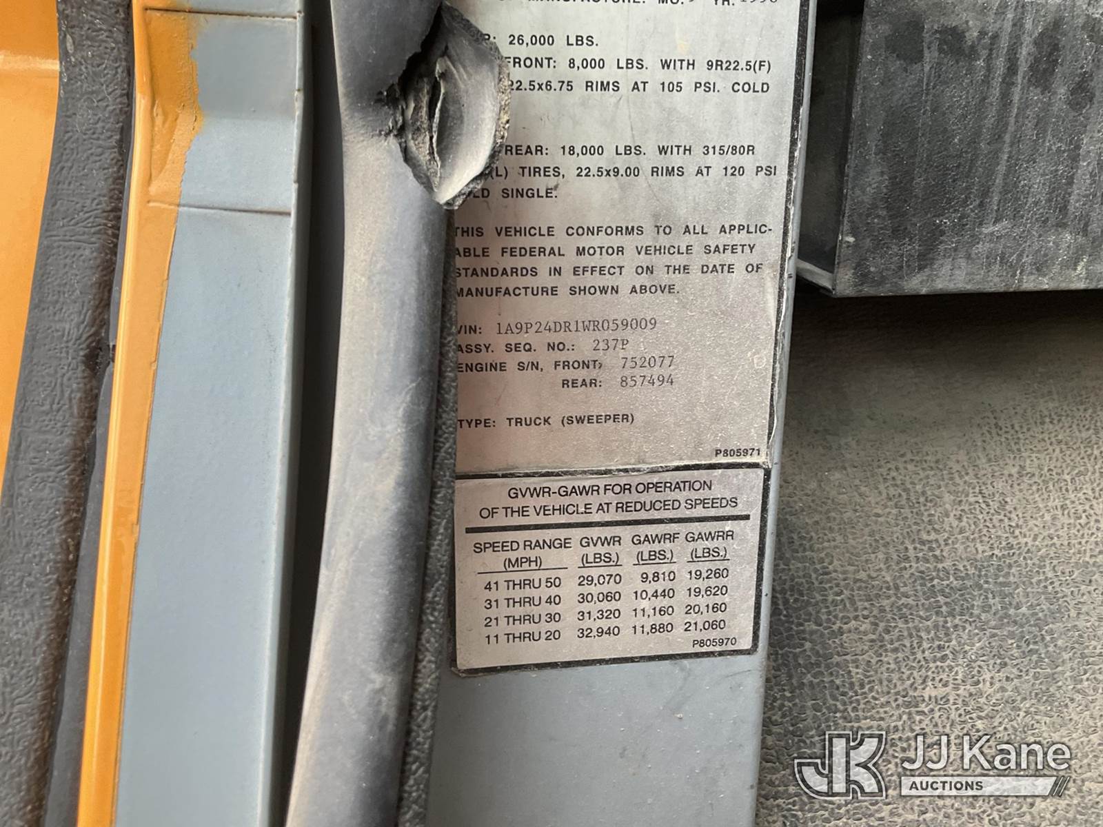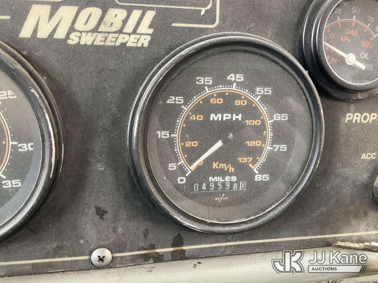 1998 Mobile M-8A Sweeper Truck, Isuzu C240 Auto, diesel, A/C, (Exempt from Odometer Disclosure - Reads 49,598 miles) (Not Running, Condition Unknown) (Reads 4,265 hours) This is a Titled Item NOTE: This unit is being sold AS IS/WHERE IS via Timed Auction and is located in Sparks, NV. Inspection & preview days for this unit are the 2 business days prior to the first day of items closing for this auction, item is located at 601 Britain Dr Sparks, NV 89437 and hours of operations are 8a-4p. Titles executed exactly as bidder registered. Ensure your name and/or business name and address in JJ Kane and/or ProxiBid is correct before bidding. For pre-sale questions, please contact Office Staff @ (801) 519-0123 and provide sale date and lot number. Sparks Dealer License Number DLR000052908 / OHV000052909. (Buyer is responsible for removal. Assistance by consignor or JJ Kane Auctioneers is not assured.)