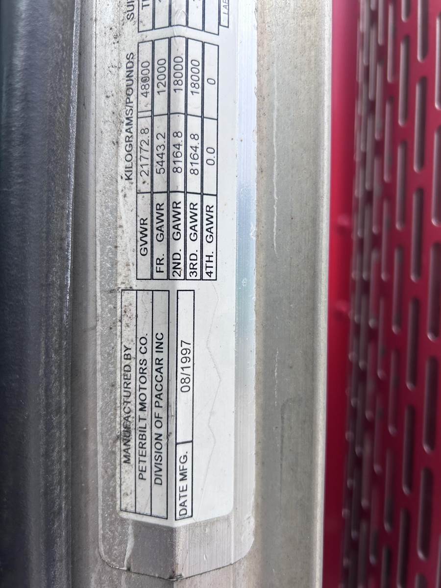 Caterpillar 3406E Turbo Diesel Engine, 5EK Series, 13-Speed Manual Transmission, Axle Diff Lock, 48000 GVWR, 12000 Front, 18000 Rears, 3.70 Ratio, Air Ride, Air Lock 5th Wheel Slide, Aluminum Headache Rack, Heat, A/C, Radio, Single Bunk Sleeper, 295/75R22.5 Tires, Aluminum Outters