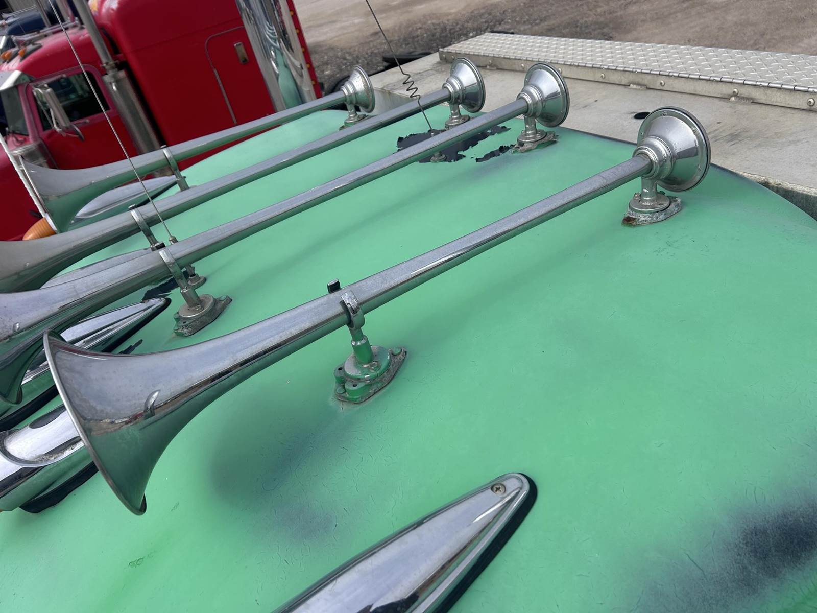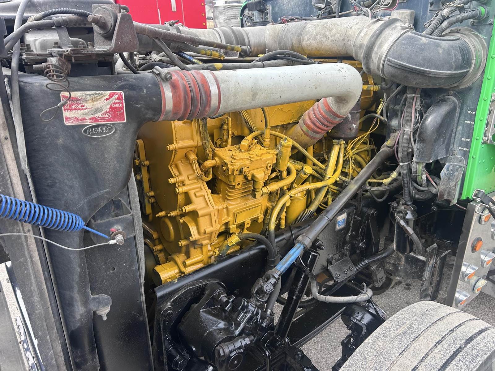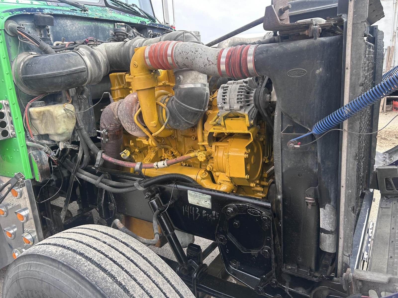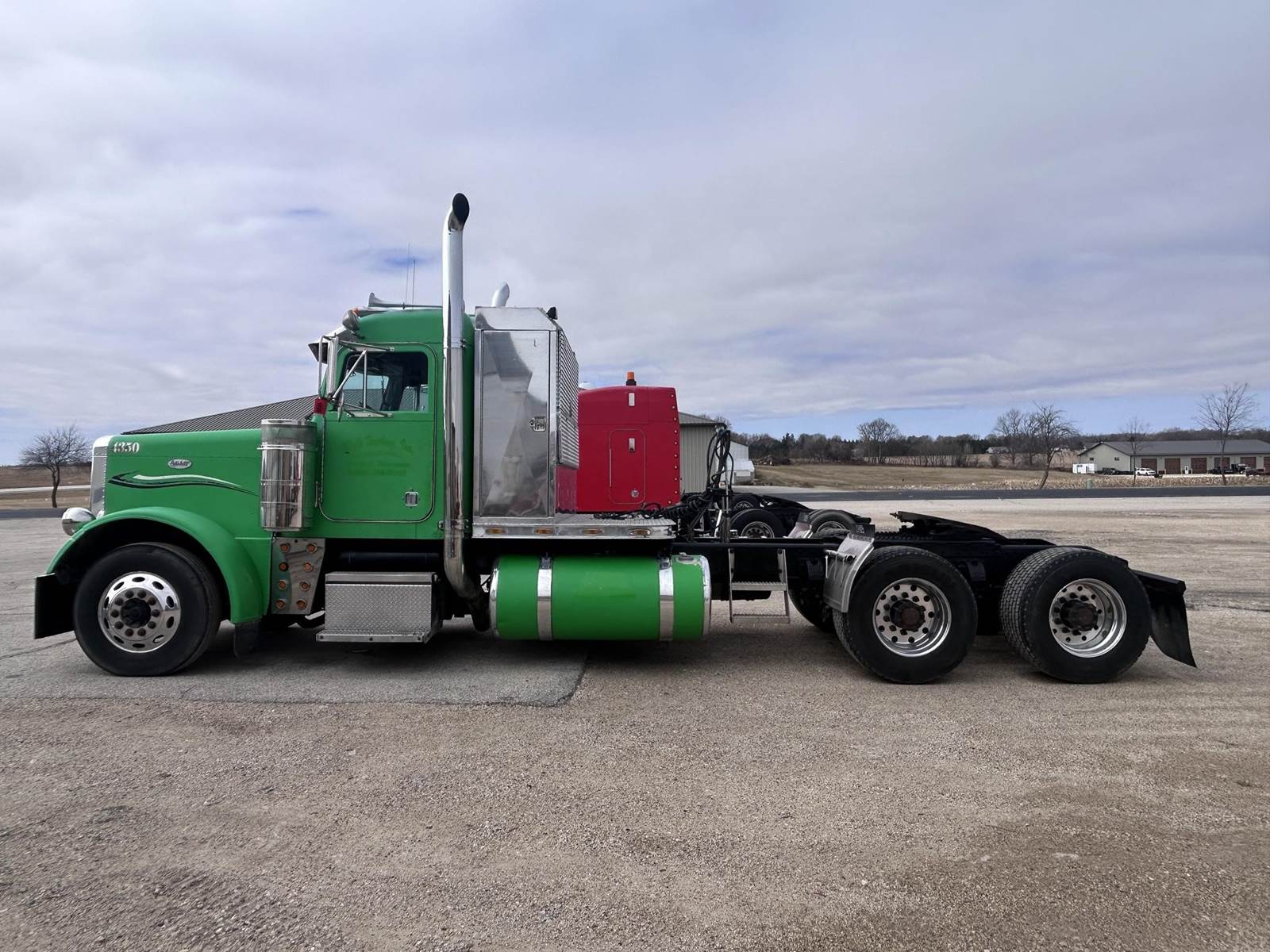 Caterpillar 3406 Turbo Diesel Engine, 450hp, 13-Speed Manual Transmission, 50000LB GVWR, 12000LB Front, 19000LB Rears, 3.55 Ratio, Wet Kit, Air Ride, Axle Diff Lock, PTO, Air Lock 5th Wheel Slide, Aluminum Headache Rack/Storage Box, Heat, A/C, Radio, 295/75R22.5 Front Tires, 445/50R22.5 Rear Tires, Full Aluminum Rims