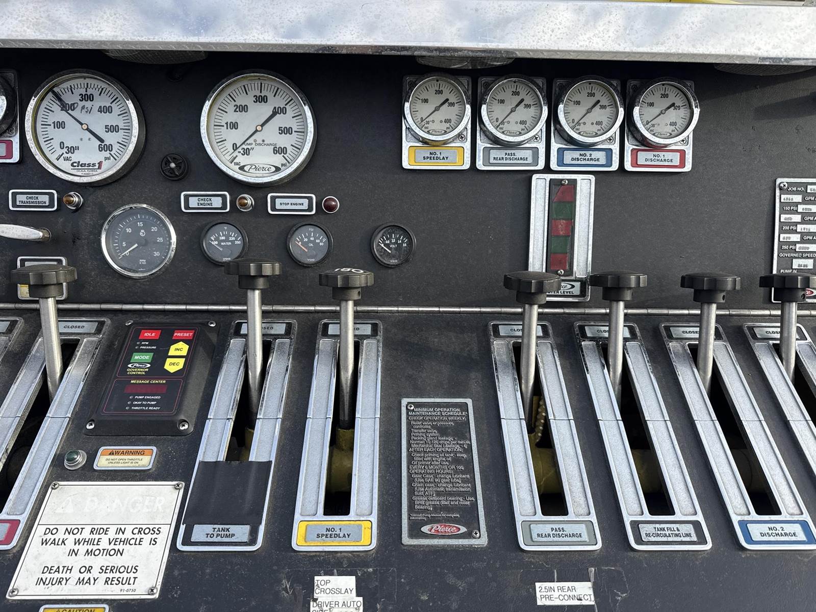 Detroit Diesel Series 40 Turbo Diesel Engine, Allison MD-3060 Automatic Transmission, Diff Lock, 40000LB GVWR, 16000LB Front Axle GAWR, Spring Ride Suspension, 8 Person Capacity, Cruise Control, Heat/AC, Air Ride Driver Seat, Pump Model CS, Trans Model YCX, 1250GPM at 150 PSIG, (8) Side Boxes w/ Roll-up Doors, 11R22.5 Tires