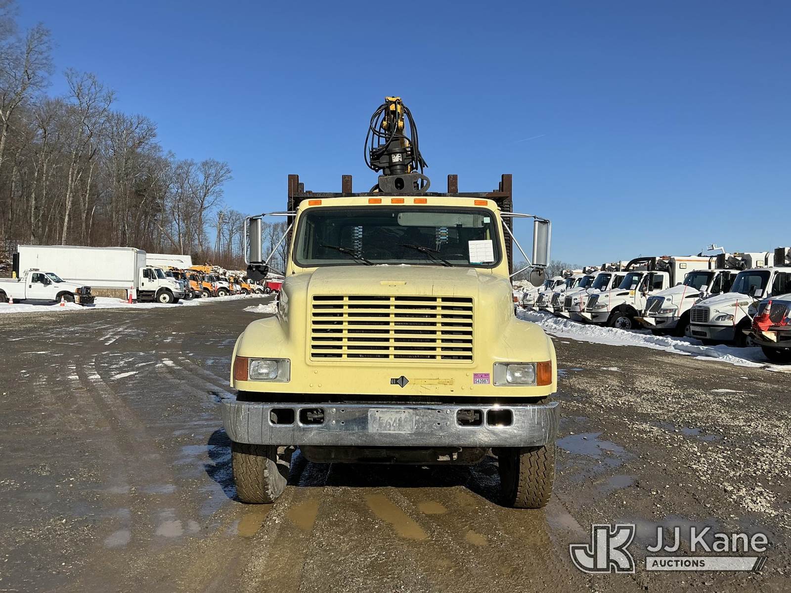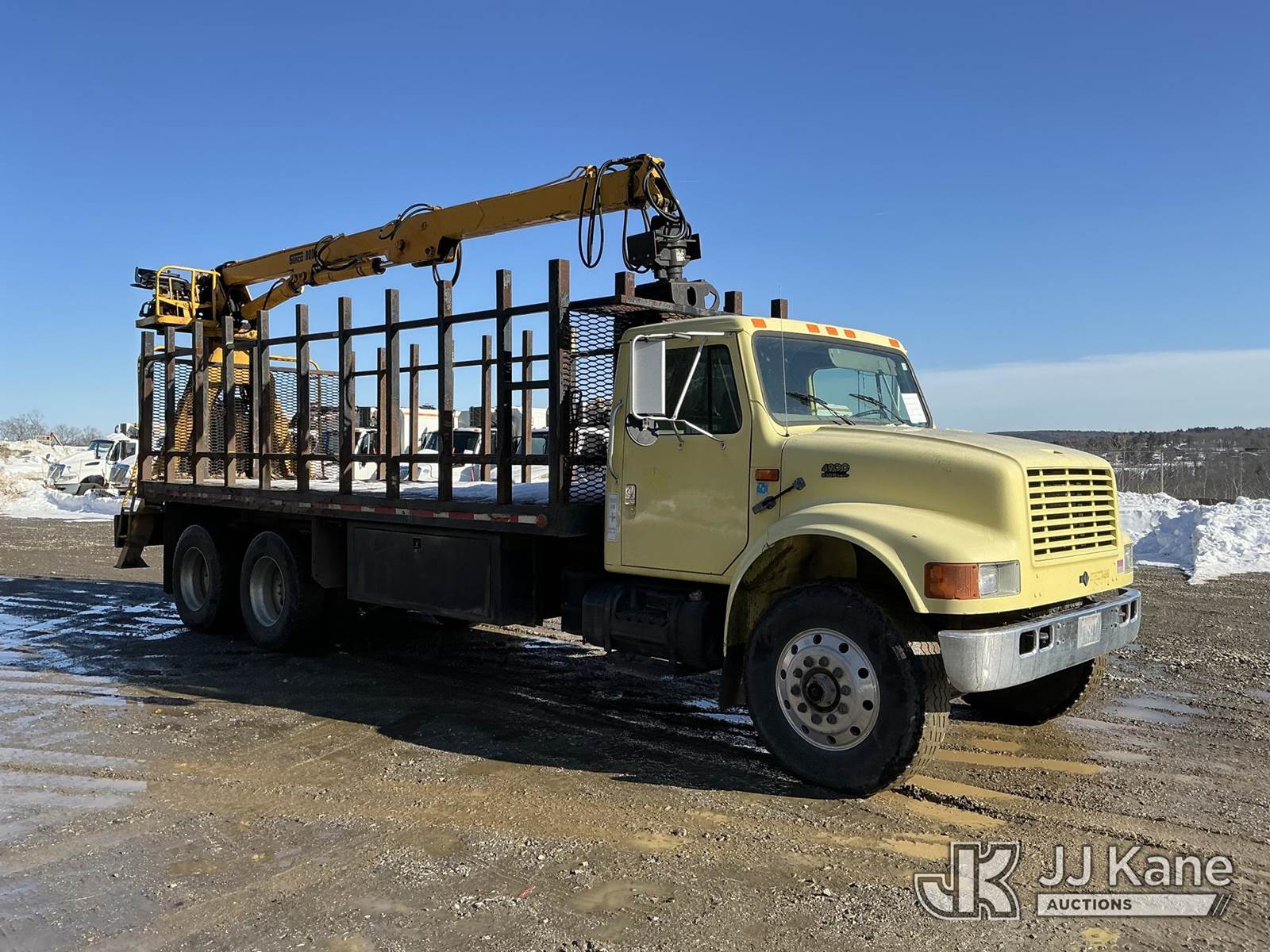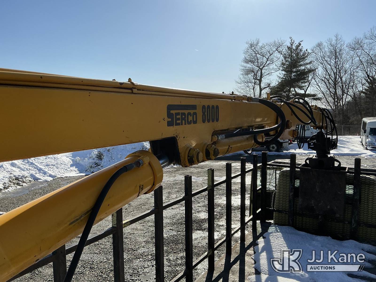 Serco 8000, 8,000 Lb Grappleboom/Log Loader Crane s/n L3814, with 27 ft reach & 2 hyd outriggers & riding console, rear mounted on 1998 International 4900 T/A Flatbed/Log Truck, DT530 6X4, diesel, Auto, (Exempt from Odometer Disclosure - Reads 120,040 miles) (Runs & Moves) (Road Side Outrigger Control Seized, Upper Condition Unknown, Road Side Door Handle Inoperable, Seller States: Loader Valve Bank & Rotary Manifold Are Leaking & Need Replacement) (Reads 8,253 hours) This is a Titled Item NOTE: This unit is being sold AS IS/WHERE IS via Timed Auction and is located in Shrewsbury, MA. Inspection & preview days for this unit are the 2 business days prior to the first day of items closing for this auction, item is located at 11 Fortune Blvd Shrewsbury, MA 01545 and hours of operations are 8a-4p. For pre-sale questions, please contact Rob Gifford @ (508) 864-4126. (Missing manuals, See Auction Company for Manufacturers Information to obtain manuals) (Buyer is responsible for removal. Assistance by consignor or JJ Kane Auctions is not assured.)