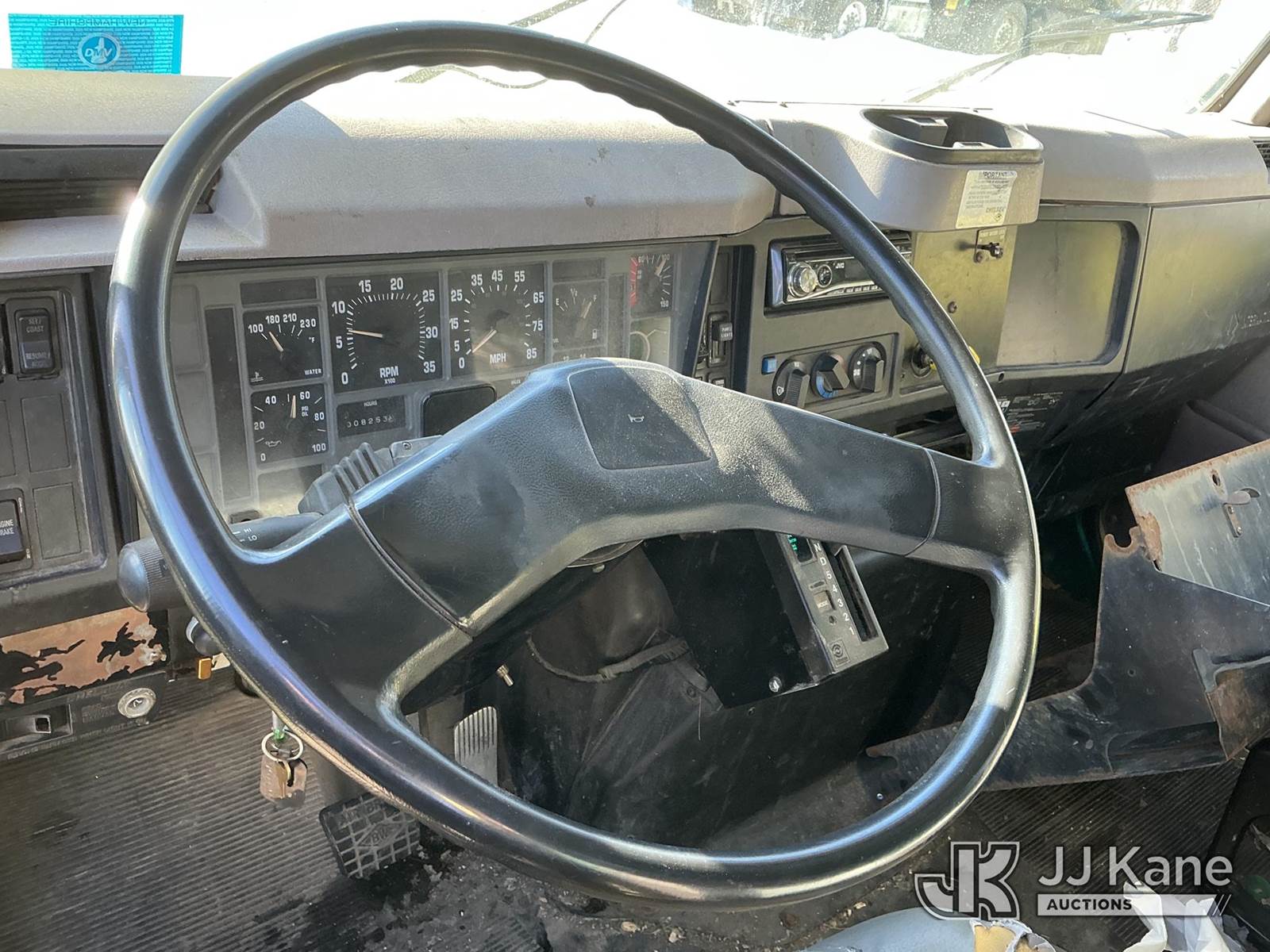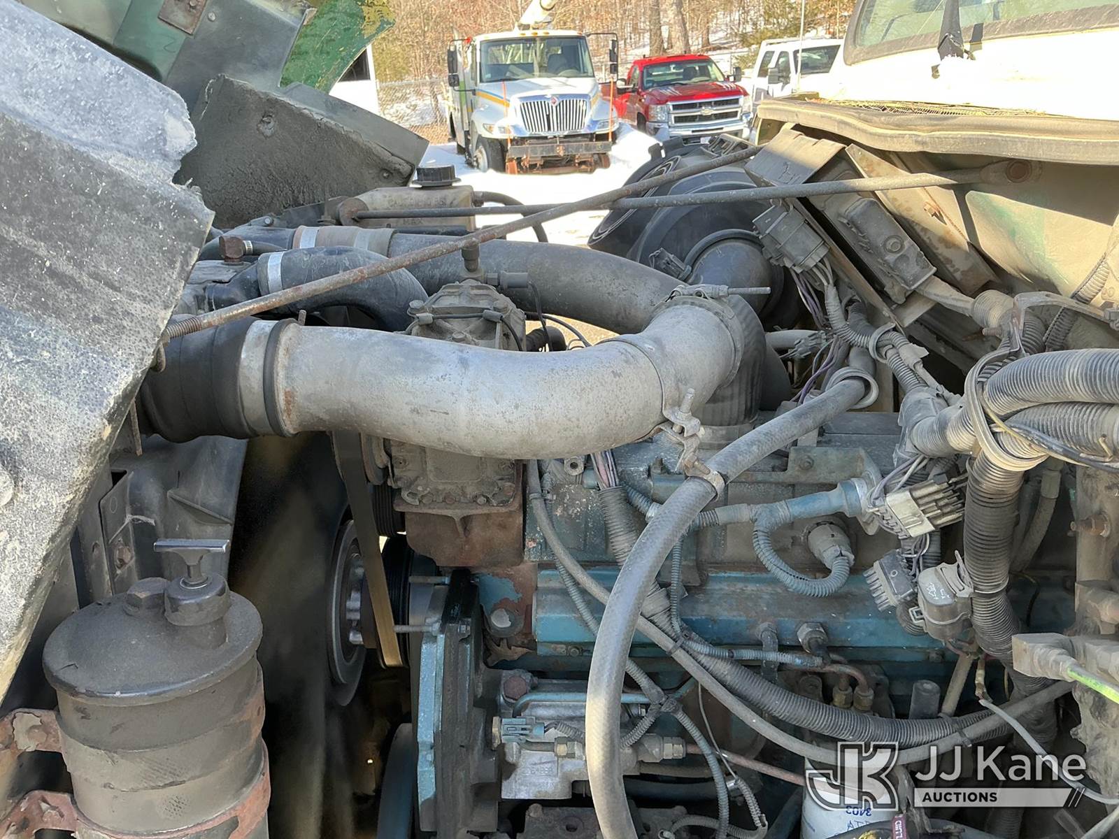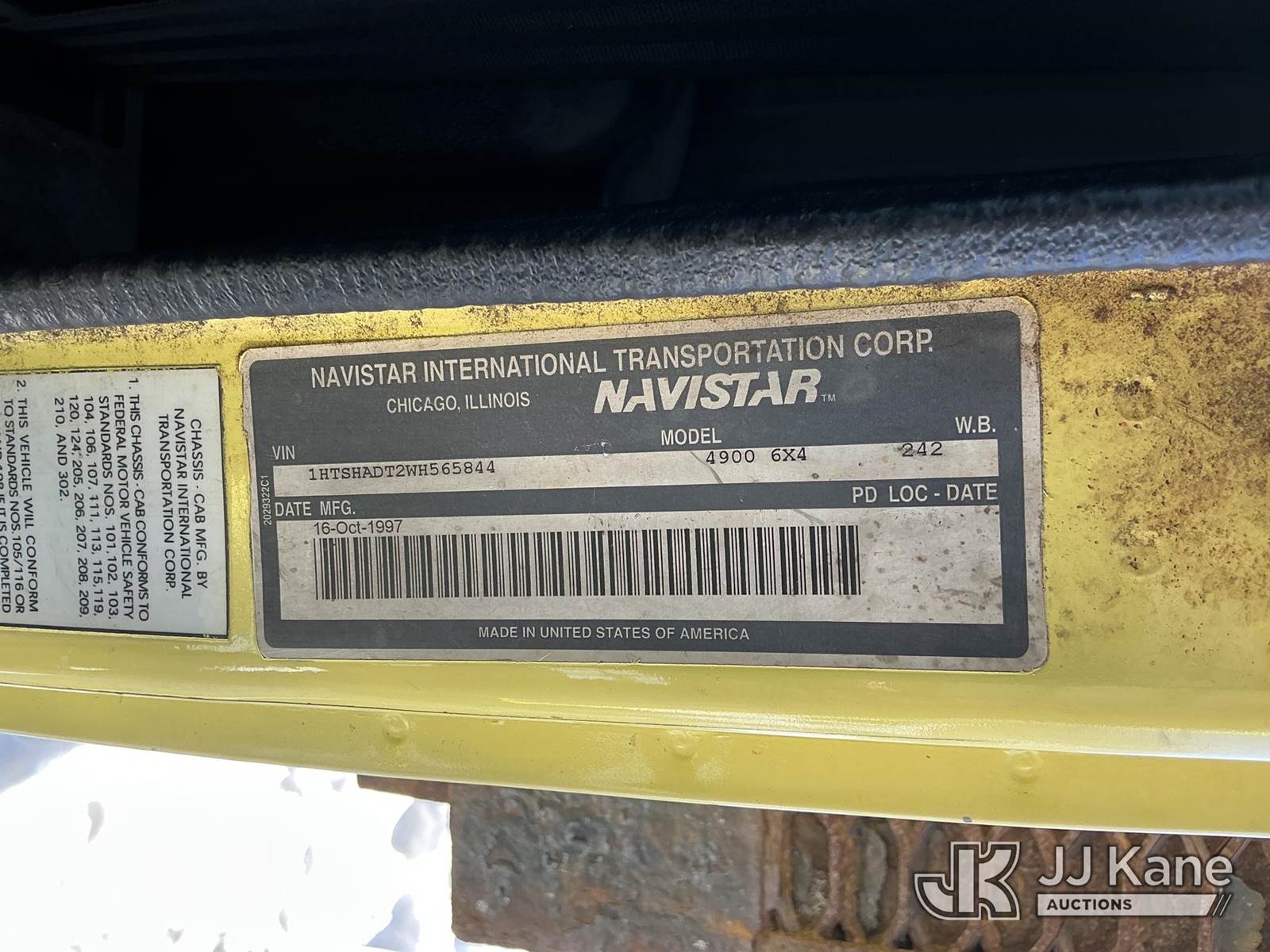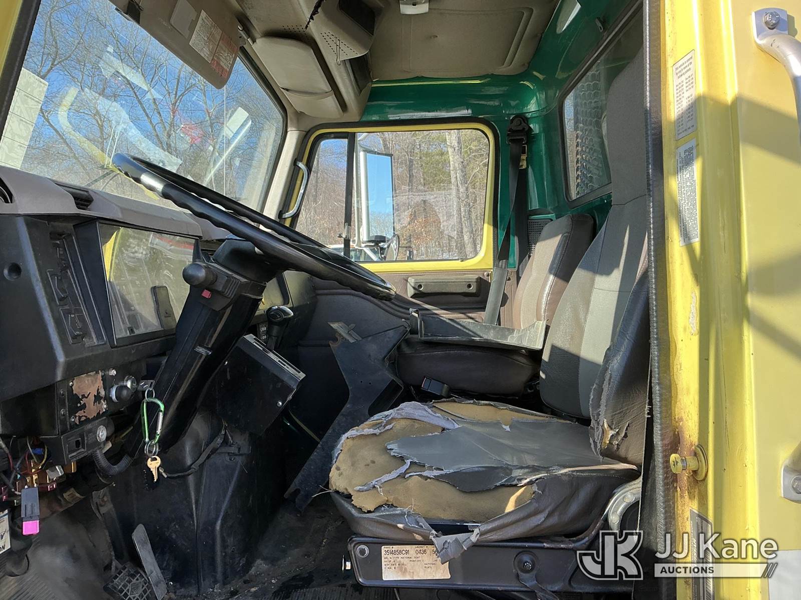 Serco 8000, 8,000 Lb Grappleboom/Log Loader Crane s/n L3814, with 27 ft reach & 2 hyd outriggers & riding console, rear mounted on 1998 International 4900 T/A Flatbed/Log Truck, DT530 6X4, diesel, Auto, (Exempt from Odometer Disclosure - Reads 120,040 miles) (Runs & Moves) (Road Side Outrigger Control Seized, Upper Condition Unknown, Road Side Door Handle Inoperable, Seller States: Loader Valve Bank & Rotary Manifold Are Leaking & Need Replacement) (Reads 8,253 hours) This is a Titled Item NOTE: This unit is being sold AS IS/WHERE IS via Timed Auction and is located in Shrewsbury, MA. Inspection & preview days for this unit are the 2 business days prior to the first day of items closing for this auction, item is located at 11 Fortune Blvd Shrewsbury, MA 01545 and hours of operations are 8a-4p. For pre-sale questions, please contact Rob Gifford @ (508) 864-4126. (Missing manuals, See Auction Company for Manufacturers Information to obtain manuals) (Buyer is responsible for removal. Assistance by consignor or JJ Kane Auctions is not assured.)