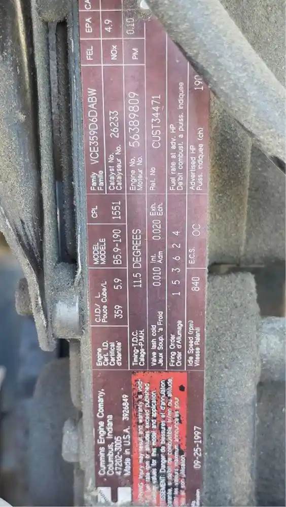 Used Cummins 5.9L 190hp engine **Pending Inspection**, Core Charge: 0.00, Horse Power: 190, ARR/CPL: 1551