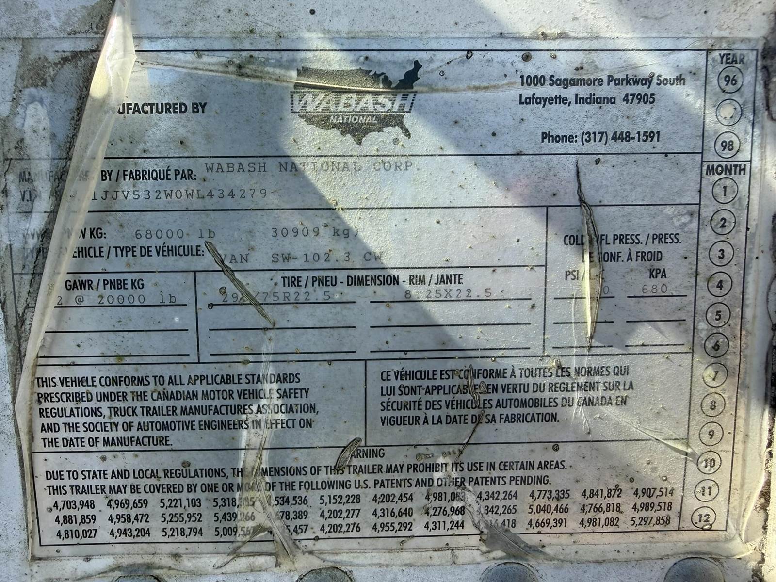 68000lb GVWR, Approx 102" Width, Spring Ride Suspension, Slide Axle, 2 Speed Landing Gear, Swing Open Doors, Fiberglass Roof, 295/75R22.5 Tires