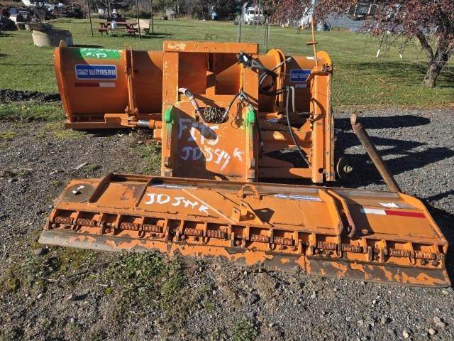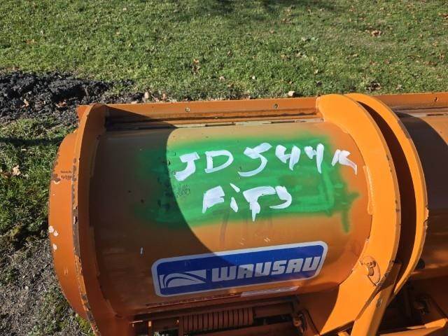 Fits John Deere 544K wheel loader, hydro turn rollover Wausau 12' blade with 10' mount wing, hook and lock coupler, 2525 lbs.