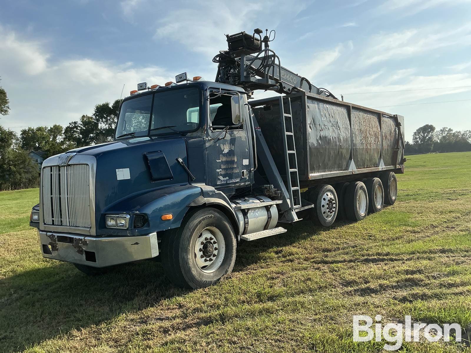 1998 Western Star 5864SS Quad/A Truck Tractor w/Crane & Dump Box, 40,735 Hrs Showing, 108,995 miles showing, Title Will Be Marked Miles Exempt, Caterpillar 6-Cylinder Diesel, Water Cooled Engine, 13-Speed Transmission, Air Suspension, Steel Wheels, Lemco Crane, Outriggers, Hydraulic Dump Box, 425/65R22.5 Front Tires, 11R22.5 Rear Tires, 255/70R22.5 Pusher Tires, VIN: 2WLLCD2GXWK953339