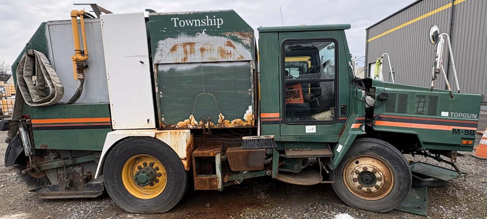 1999 ATHEY MOBIL M-9B Topgun Mobil Street Sweeper **PARTS ONLY-DOES NOT RUN** - 7.3L International T444E diesel engine, meters reads 48,519 miles / 6,365 hours, automatic transmission, 62" rear broom, dual gutter brooms, 8K lb front, 18K lb rear, GVWR 26,000 lbs, dual steering, ~10,000 capacity, 114" WB, additional operating truck available (M-8A), Financing available