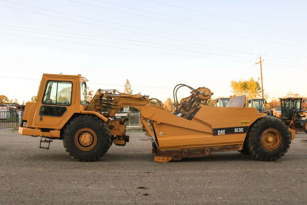 1999 CAT 613C SERIES 2 ELEVATING/PADDLE WHEEL SCRAPER WITH 6300HRS. UNIT IS EQUIPPED WITH CAB HEAT/AC, DIFF-LOCK, AND TIER 1 CAT ENGINE. FLIGHTS 80%, CHAINS 70%, IDLERS 75%, SPROCKETS 70%. JUST REPLACED TURBO, CUTTING EDGES, AND TRANS PUMP. RECENTLY REBUILT TORQUE CONVERTER AND MAIN HYDRAULIC PUMP. CAT T2 INSPECTION AND OIL SAMPLES AVAILIBLE UPON REQUEST. UNIT RUNS GREAT AND IS READY TO GO TO WORK.