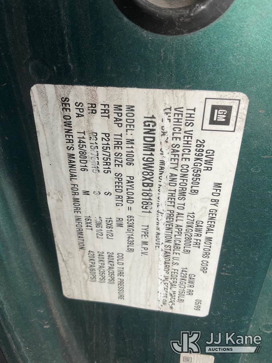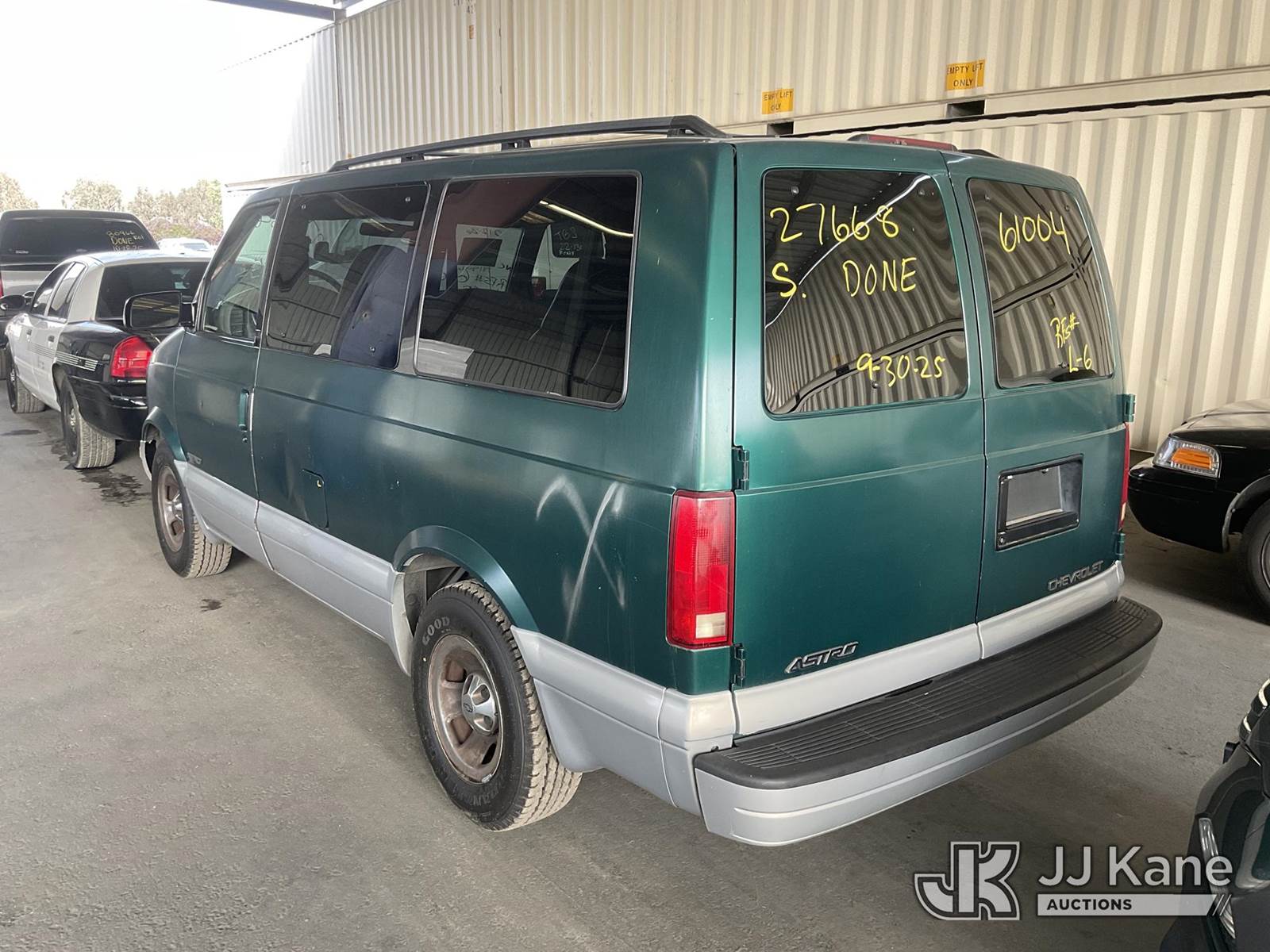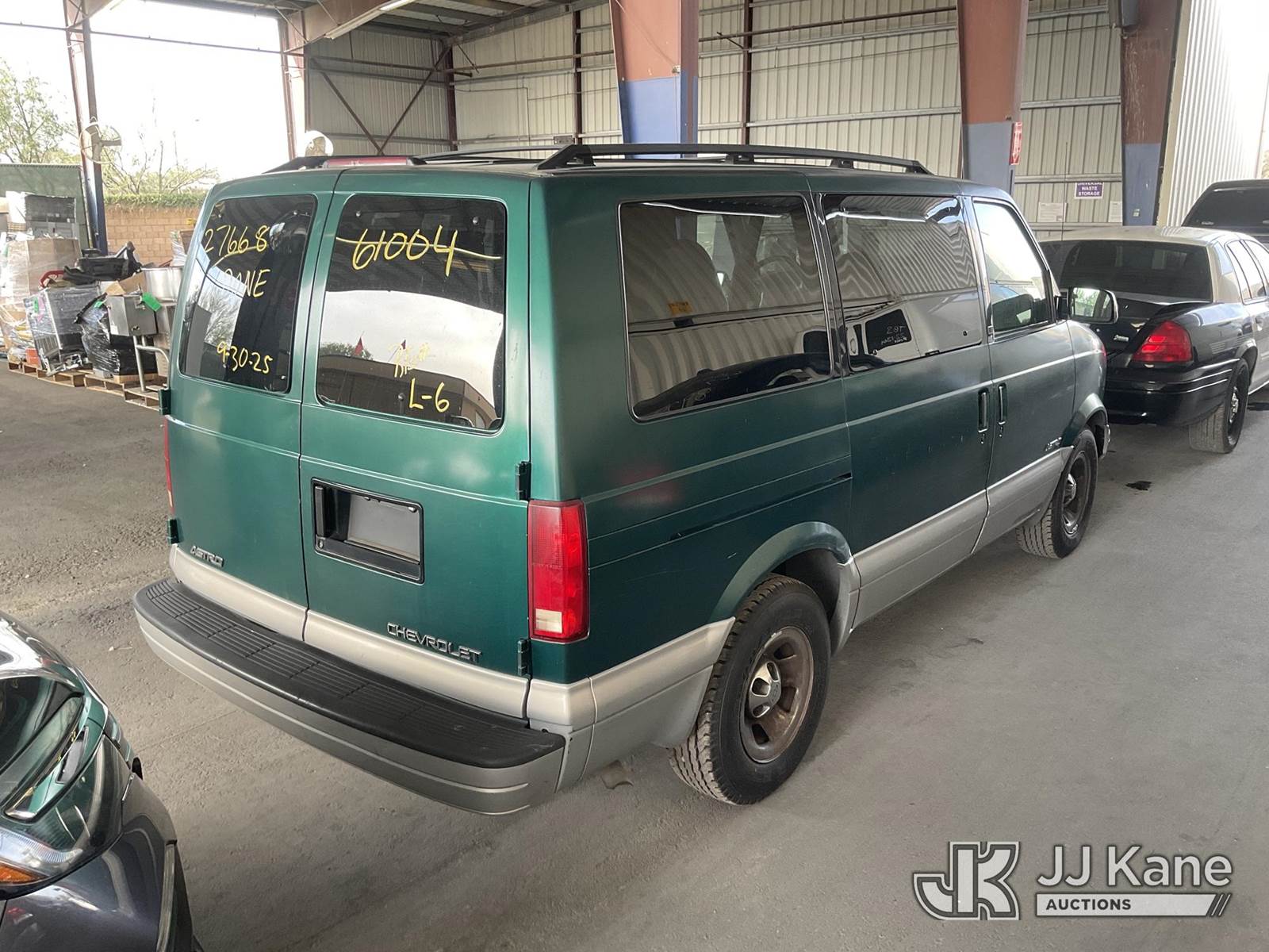 1999 Chevrolet Astro 2WD Mini Passenger Van, 4.3L V6 OHV 12V Gas, RWD, 4-Speed Automatic, A/C, (Exempt from Odometer Disclosure - Reads 101,051 miles) (Runs & Moves) (Missing Catalytic Converter) (Vehicle previously used with a ‘cold plate’ or protected record registration. Due to the prior status, VIN may not yet appear in NMVTIS, which could affect DMV title/registration processing. Buyer acknowledges and accepts this) (Bidding Restricted to Licensed Vehicle Dealers Only), This is a Titled Item NOTE: This unit is being sold AS IS/WHERE IS via Timed Auction and is located in Jurupa Valley, CA. Inspection & preview days for this unit are the 2 business days prior to the first day of items closing for this auction, item is located at 4510 Muth Way Jurupa Valley, CA 92509 and hours of operations are 8a-4p. For pre-sale questions, please contact please contact Office Staff @ (310) 353-7140. Dealer License Number 45696. (Buyer is responsible for removal. Assistance by consignor or JJ Kane Auctions is not assured.)