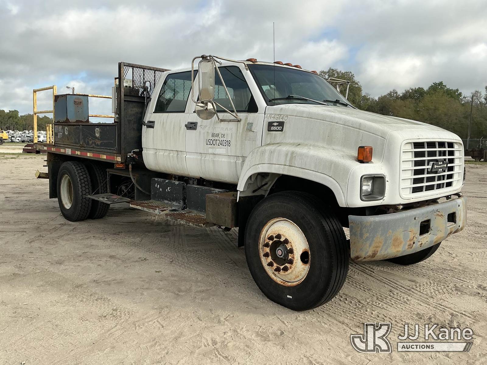 1999 Chevrolet C6500 Flatbed/Service Truck, 7.2L diesel, 6-spd, A/C, (Exempt from Odometer Disclosure - Reads 89,909 miles) (Not Running, Conditions Unknown) (FL Residents Purchasing Titled Items – tax, title & registration fees will be collected at the maximum rate of $400.00 under 25,999 and $800.00 for Over 26,000 and $250.00 trailers – Proof of insurance is mandatory; Out of State Residents Purchasing Title Items – tax will be collected based upon your state rate.) This is a Titled Item NOTE: This unit is being sold AS IS/WHERE IS via Timed Auction and is located in Thonotosassa, FL. Inspection & preview days for this unit are the 2 business days prior to the first day of items closing for this auction, item is located at 11720 N US 301 Thonotosassa, Fl 33592 and hours of operations are 8a-4p. For pre-sale questions, please contact Office Staff @ (813) 986-2485. (Buyer is responsible for removal. Assistance by consignor or JJ Kane Auctions is not assured.)