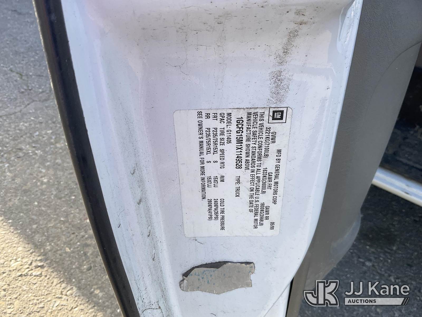 1999 Chevrolet Express 1500 Cargo Van, 8-cyl gas, RWD, 4-Speed Automatic, A/C, (Exempt from Odometer Disclosure - Reads 21,755 miles) (Runs & Moves)(Passenger Side Front Fender Damaged ) This is a Titled Item NOTE: This unit is being sold AS IS/WHERE IS via Timed Auction and is located in Dixon, CA. Inspection & preview days for this unit are the 2 business days prior to the first day of items closing for this auction, item is located at 8668 Sparling Ln Dixon, CA 95620 and hours of operations are 8a-4p. For pre-sale questions, please contact JJ Kane Staff at (707) 678-8060 (dixon@jjkane.com). Dealer License Number 45696. (Buyer is responsible for removal. Assistance by consignor or JJ Kane Auctions is not assured.)