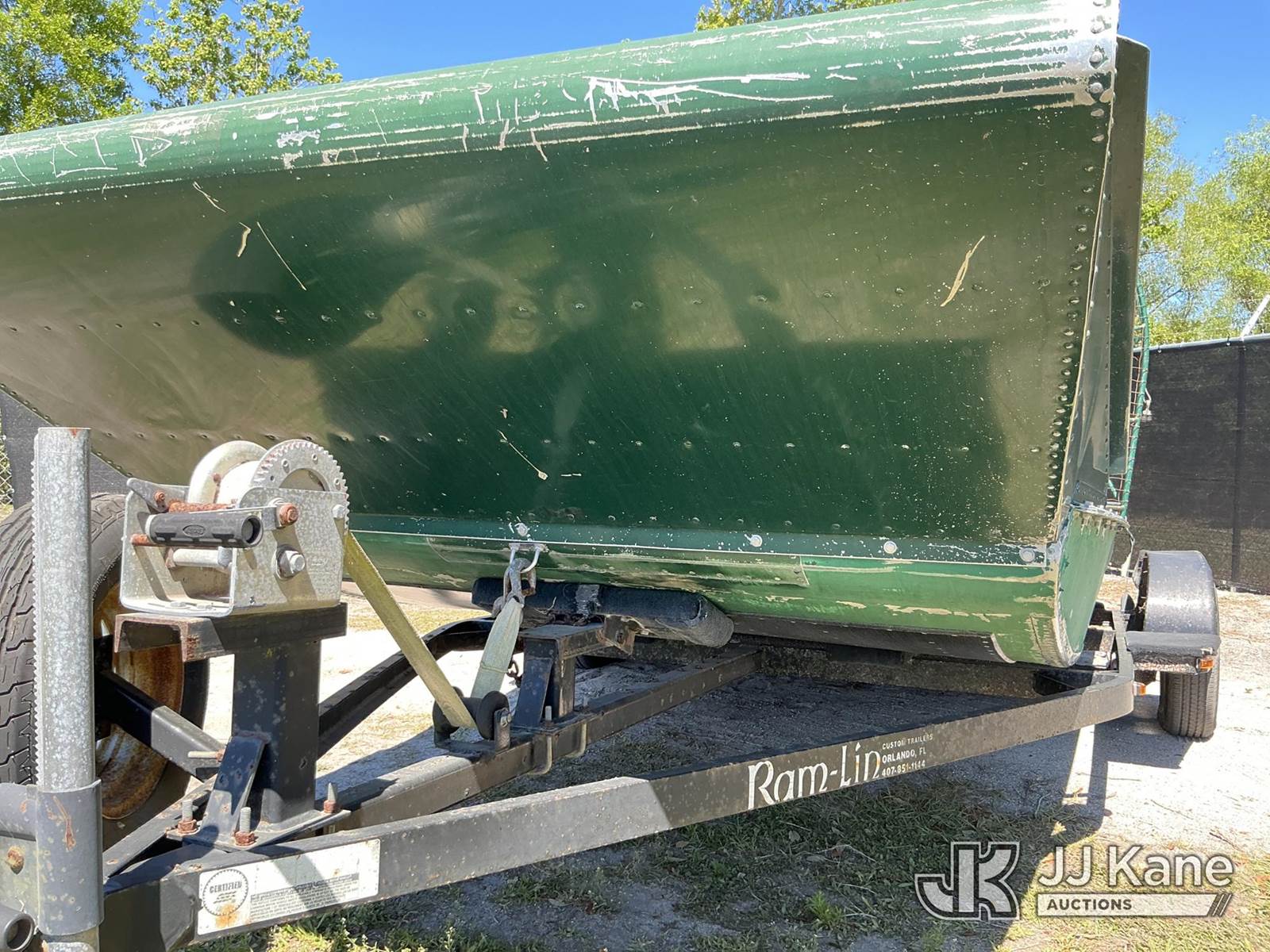 1999 Diamond 13 Foot Aluminum Airboat, 6-cyl, gas, with Sold with 2000 Ramlin Airboat Trailer, VIN: 4WAACBN10Y1000003, State of FL Unit (Not Running, Condition Unknown ) (Reads 86 hours) This is a Titled Item NOTE: This unit is being sold AS IS/WHERE IS via Timed Auction and is located in Thonotosassa, FL. Inspection & preview days for this unit are the 2 business days prior to the first day of items closing for this auction, item is located at 11720 N US 301 Thonotosassa, Fl 33592 and hours of operations are 8a-4p. For pre-sale questions, please contact Office Staff @ (813) 986-2485. (Buyer is responsible for removal. Assistance by consignor or JJ Kane Auctions is not assured.)