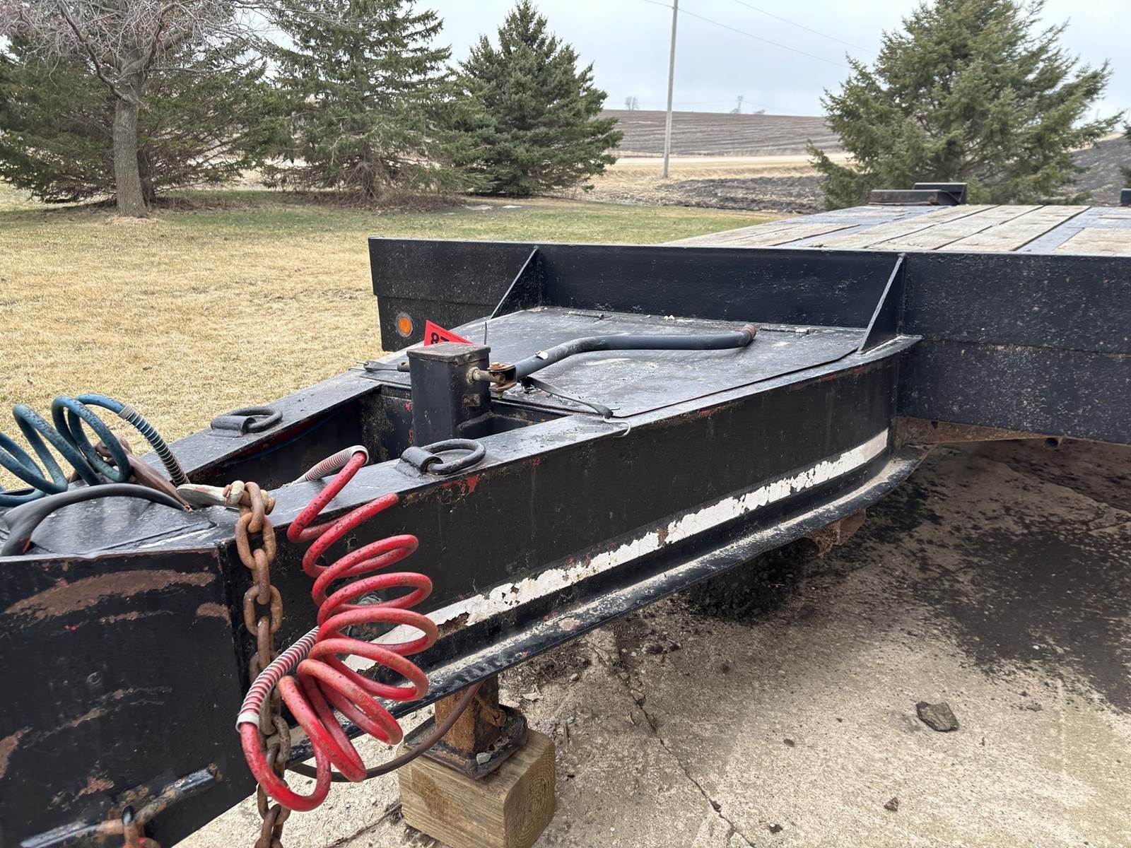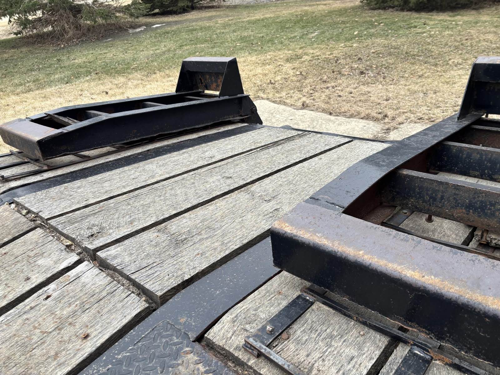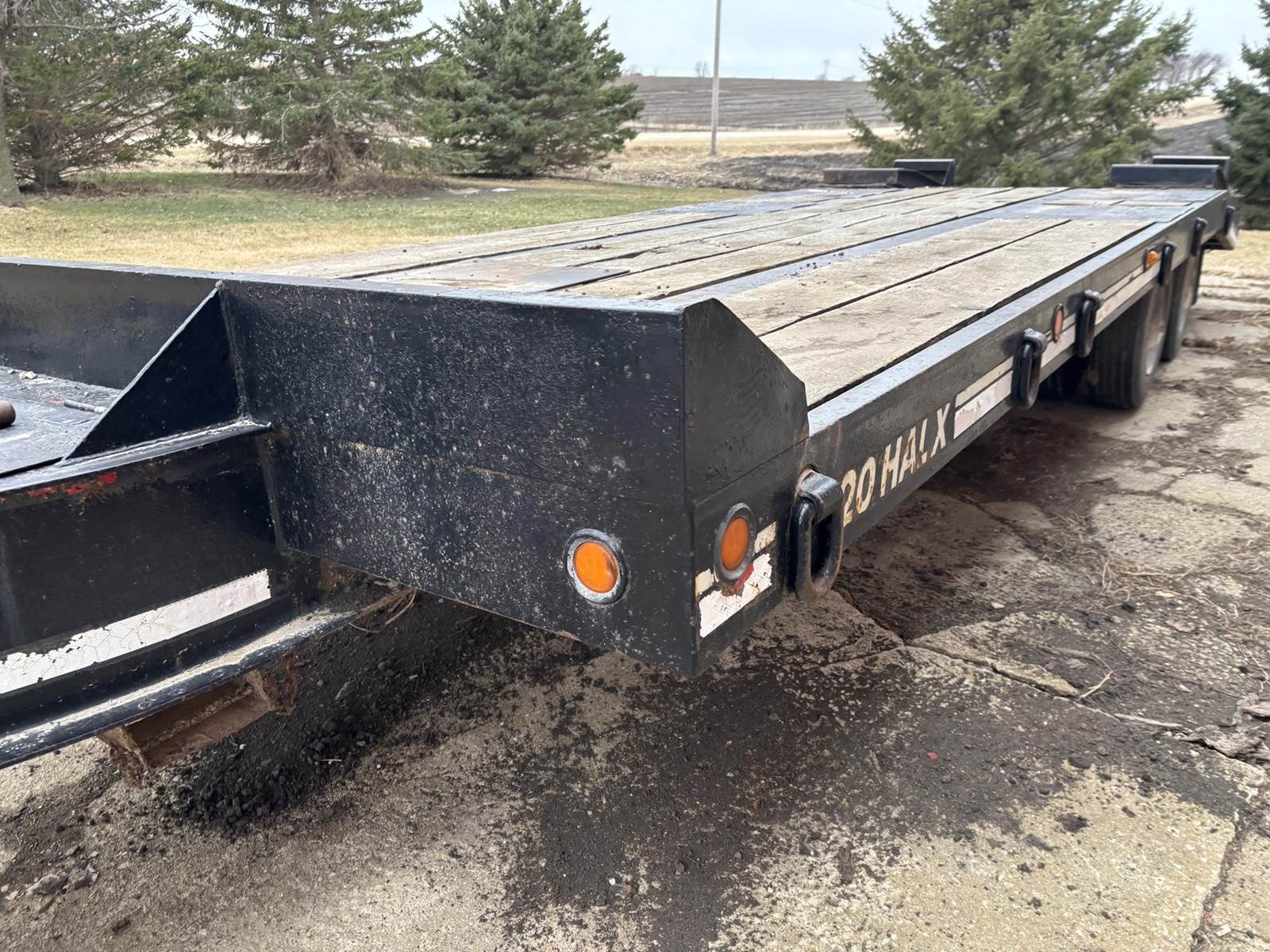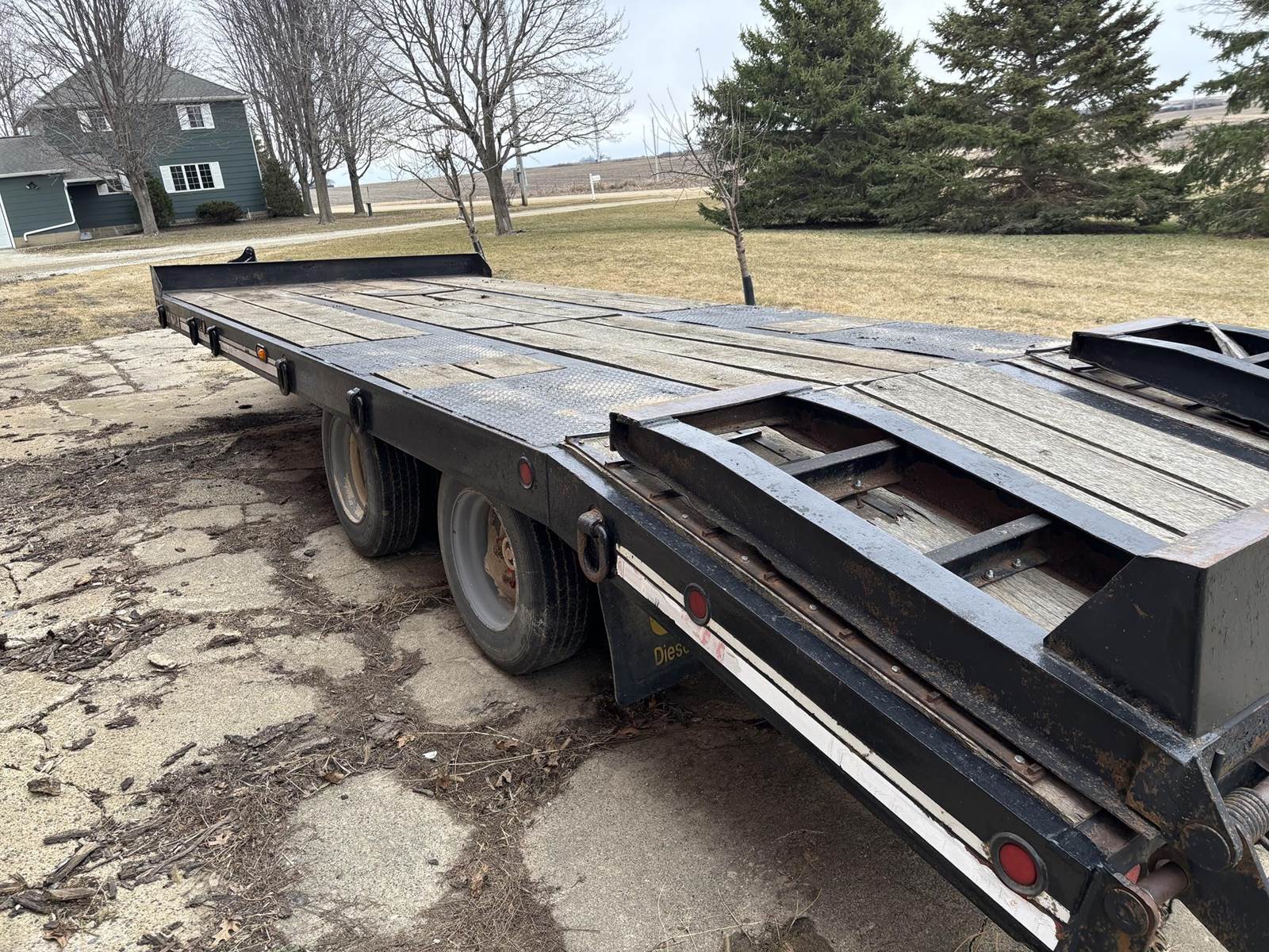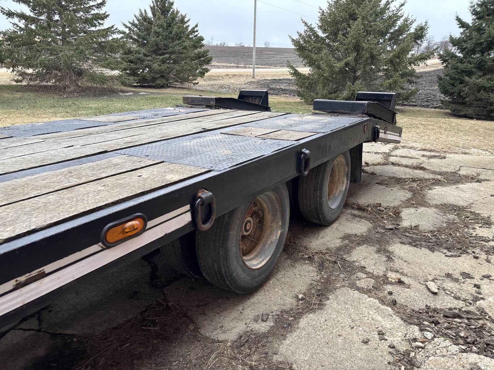 Approx 24" Deck Length, Approx 19' Flat Deck, Approx 5' Dove Tail, Approx 102" Width, Approx 4' Ramps, Pintle Coupler, Air Brakes, Tande Axle W/ Duals, Spring Ride, 215/75R17.5 Tires