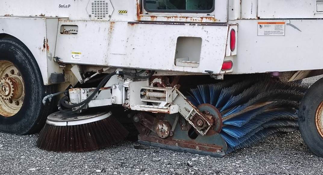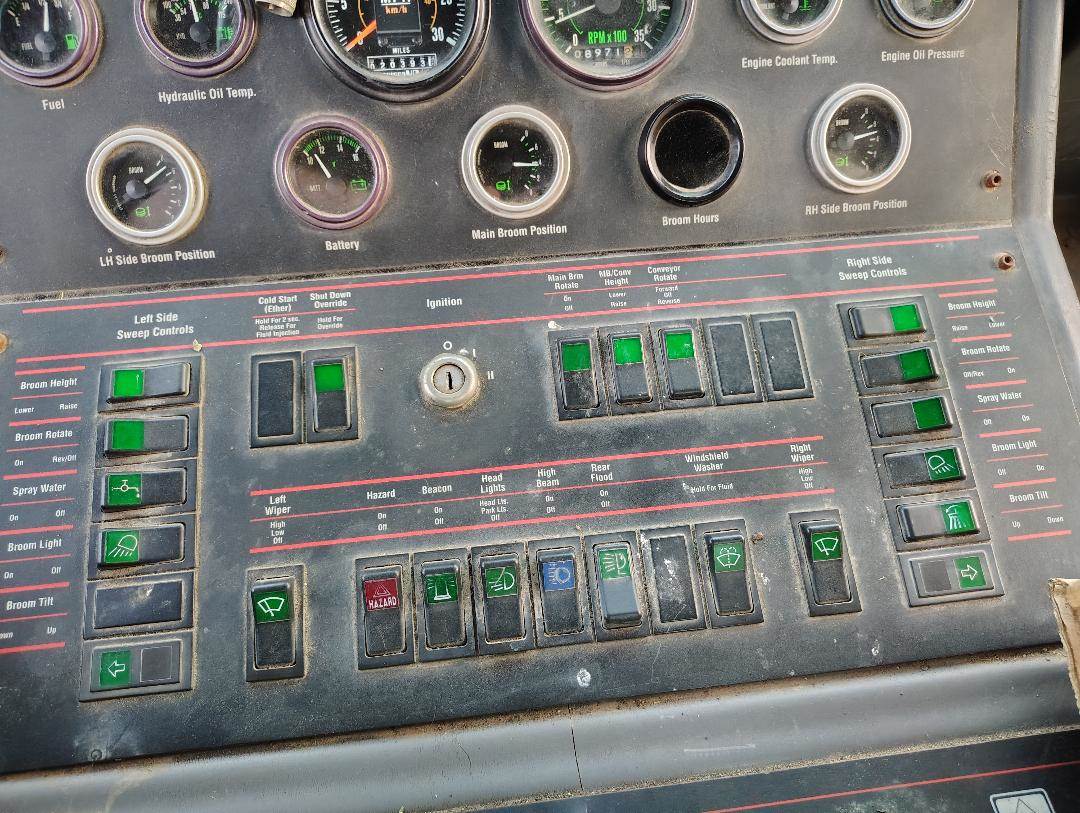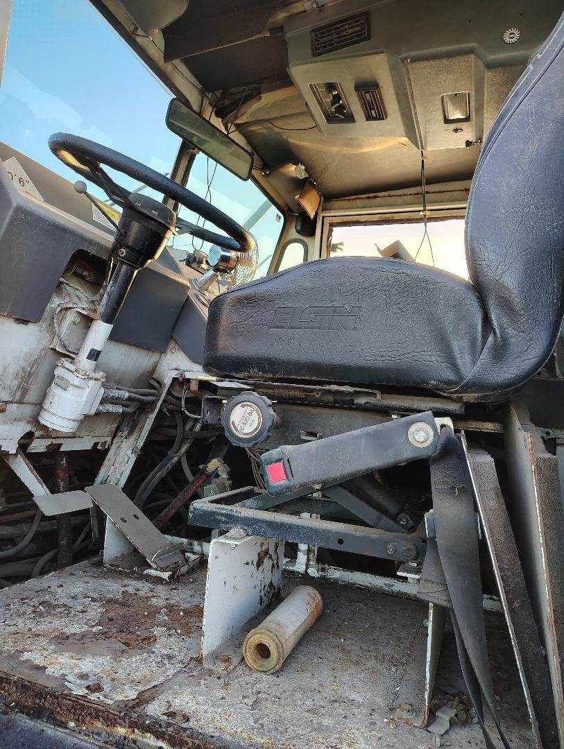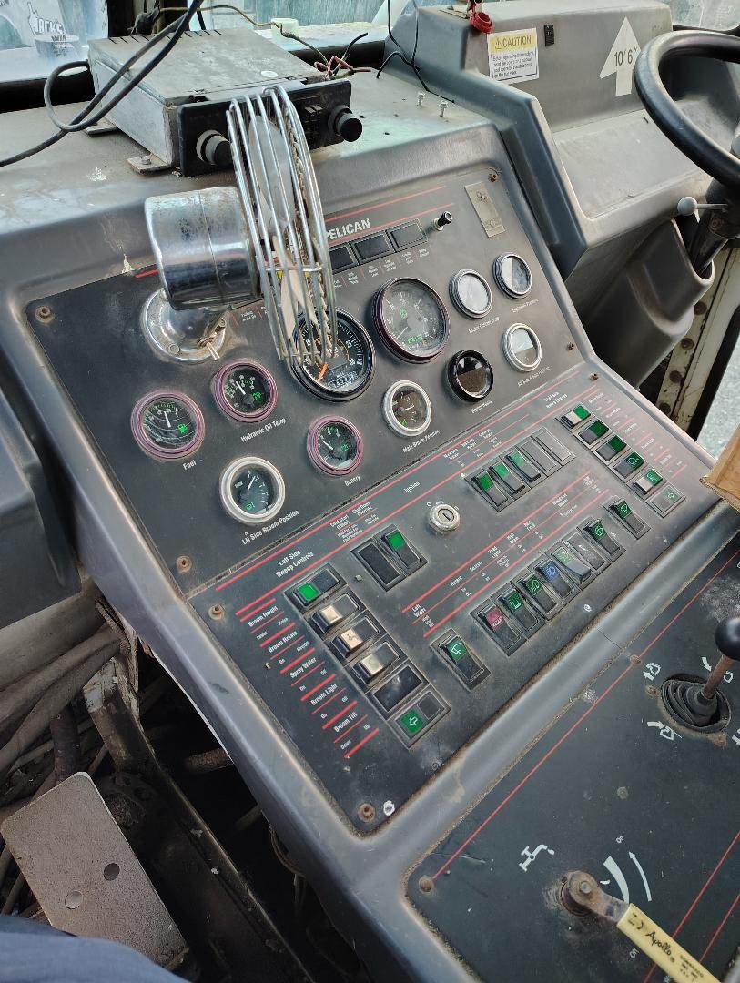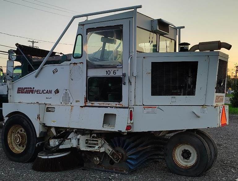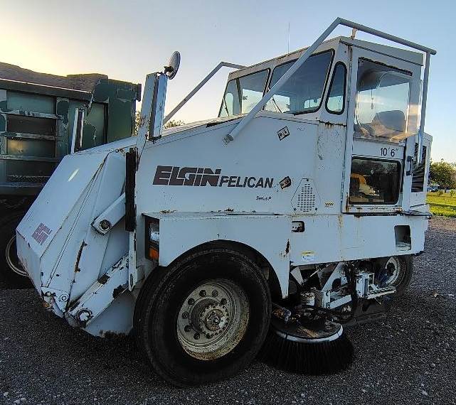 1999 Elgin Pelican Series P Street Sweeper, John Deere 4045 4.5L 4 Cylinder Diesel Engine, 100 HP, Sweeps 10 ft. wide, with a curb broom on both sides of the machine, two steering wheels so machine can be operated on both sides, front dump hopper, year not verified