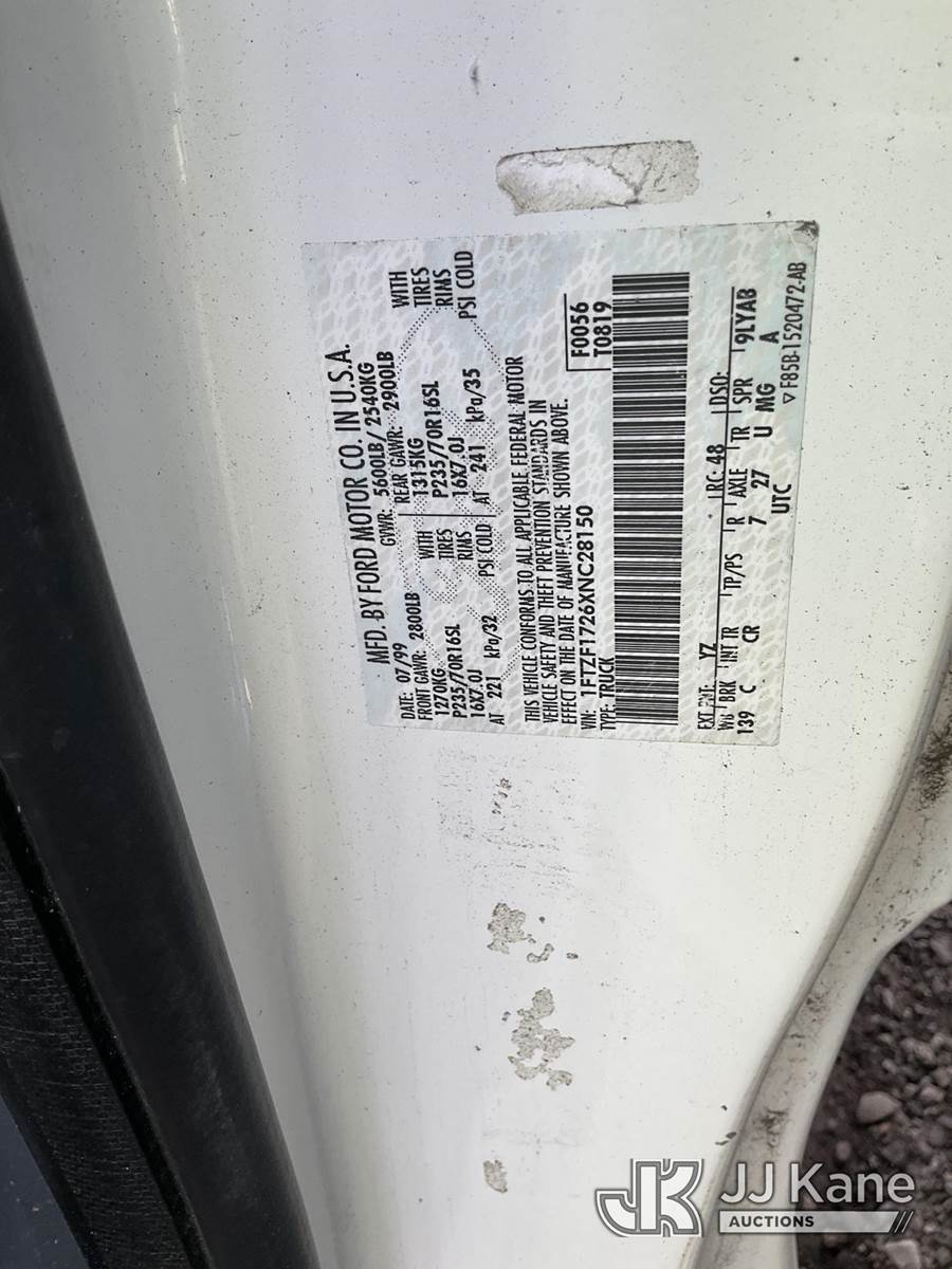 1999 Ford F-150 Pickup Truck, 6-cyl gas, Auto, A/C, with Tow Package,Tool Box, True Mileage Unknown (Not Running, Condition Unknown) (Must Be Towed) (Bidding Restricted to Licensed Vehicle Dealers Only), This is a Titled Item NOTE: This unit is being sold AS IS/WHERE IS via Timed Auction and is located in Jurupa Valley, CA. Inspection & preview days for this unit are the 2 business days prior to the first day of items closing for this auction, item is located at 4510 Muth Way Jurupa Valley, CA 92509 and hours of operations are 8a-4p. For pre-sale questions, please contact please contact Office Staff @ (310) 353-7140. Dealer License Number 45696. (Buyer is responsible for removal. Assistance by consignor or JJ Kane Auctions is not assured.)