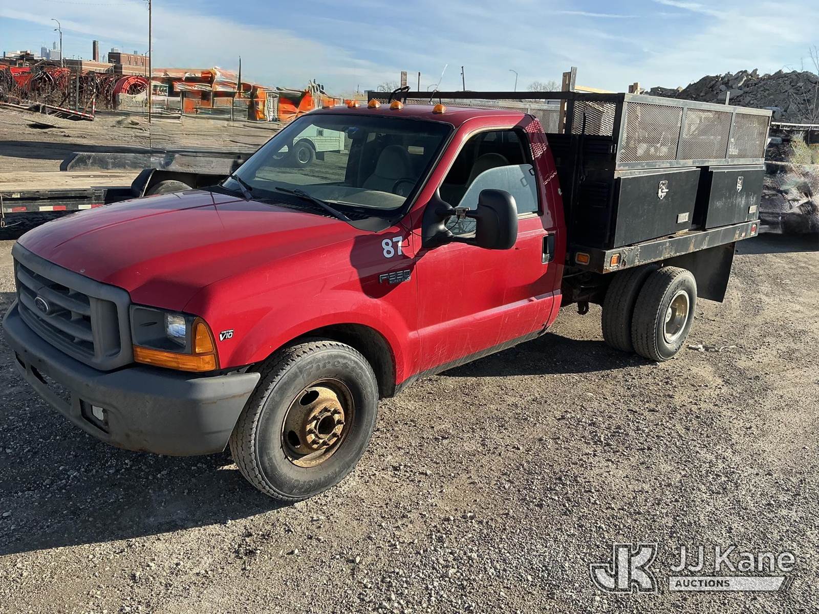 1999 Ford F-350 SD Flatbed/Service Truck, 6.8L V10 SOHC 20V RWD, GAS, Auto, A/C, (Exempt from Odometer Disclosure - Reads 149,676 miles) (Runs & Moves, Tilt Bed is Intermittent.) This is a Titled Item NOTE: This unit is being sold AS IS/WHERE IS via Timed Auction and is located in Chicago, IL. (Buyer is responsible for removal. Assistance by consignor or JJ Kane Auctions is not assured.)