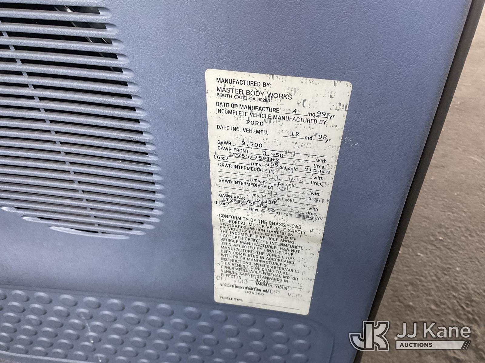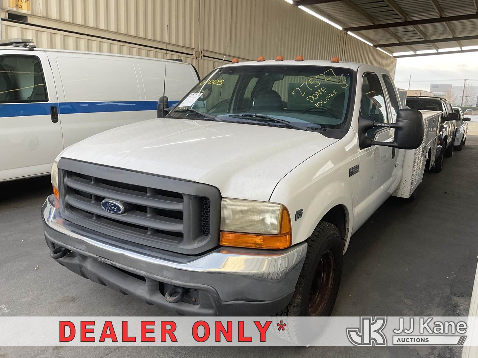 1999 Ford F-350 SD Service Truck, 10-cyl gas, RWD, Auto, A/C, with Utility Bed, (Exempt from Odometer Disclosure - Reads 68,423 miles) (Runs & Moves) (Missing Catalytic Converter, ABS Light On) (Bidding Restricted to Licensed Vehicle Dealers Only), This is a Titled Item NOTE: This unit is being sold AS IS/WHERE IS via Timed Auction and is located in Jurupa Valley, CA. Inspection & preview days for this unit are the 2 business days prior to the first day of items closing for this auction, item is located at 4510 Muth Way Jurupa Valley, CA 92509 and hours of operations are 8a-4p. For pre-sale questions, please contact please contact Office Staff @ (310) 353-7140. Dealer License Number 45696. (Buyer is responsible for removal. Assistance by consignor or JJ Kane Auctions is not assured.)