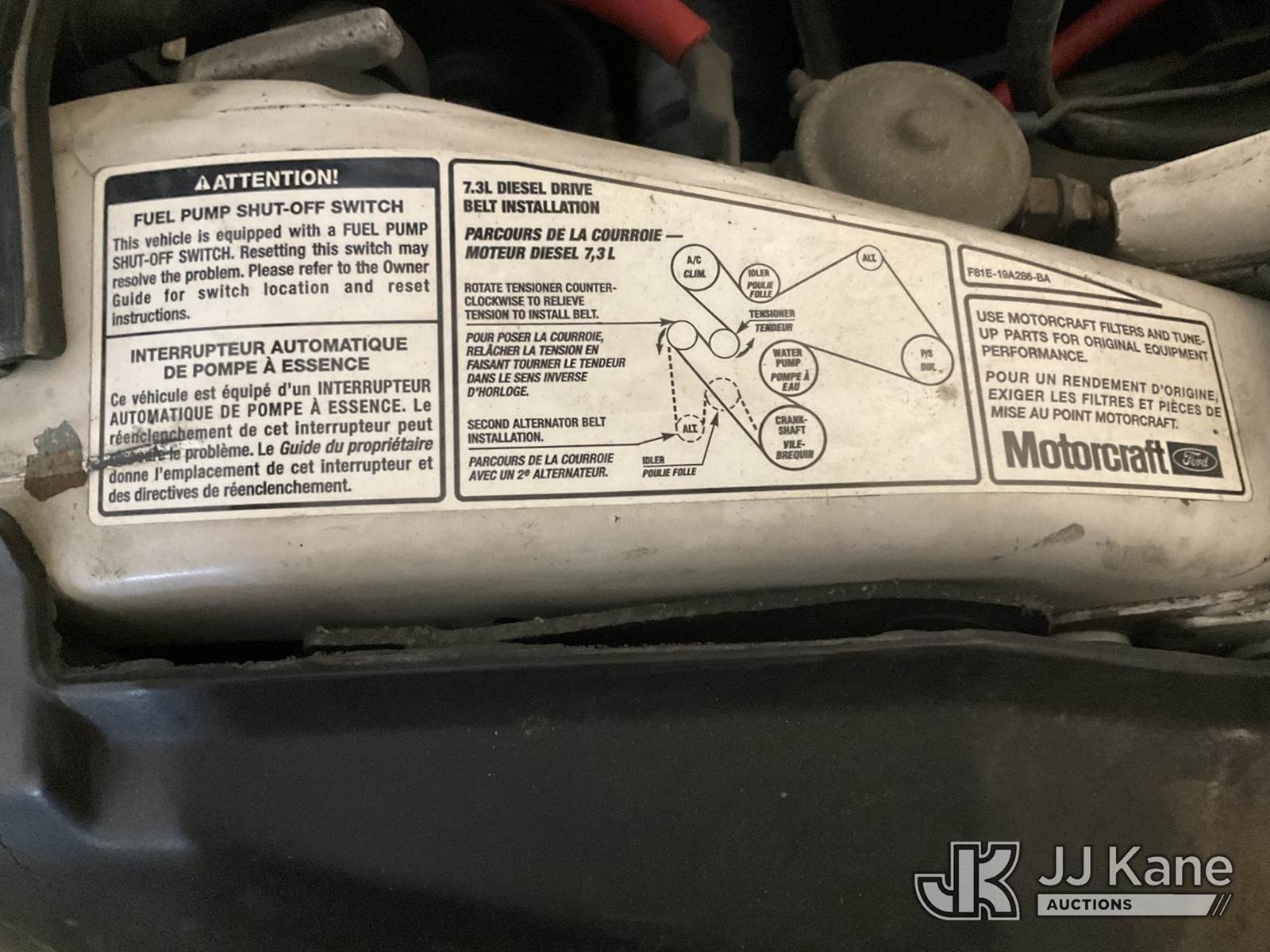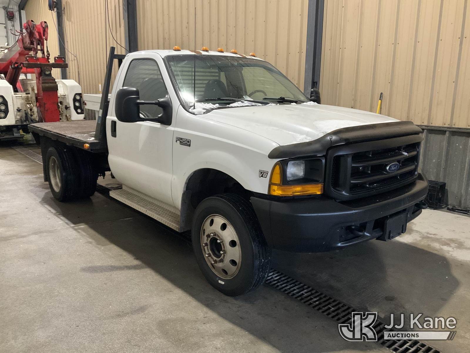 1999 Ford F450 Flatbed Truck, 7.3L V8 Diesel, 6-spd, A/C, (Exempt from Odometer Disclosure - Reads 198,332 miles) (Runs & Moves, Body Damage) (Removal is by Appointment Only, Buyer MUST make a appointment prior to picking up, Buyer/Transporter Must have PAID IN FULL RELEASE. No onsite assistance available, Please Come prepared.) This is a Titled Item NOTE: This unit is being sold AS IS/WHERE IS via Timed Auction and is located in Hagerstown, MD. Inspection & preview days for this unit are by appointment only; please contact us at contact@jjkane.com or 84-Go-JJKane for more details. For pre-sale questions, please contact the on-site office @ (301) 895-7777 or Kevin.Waggoner@JJKane.com. (Buyer is responsible for removal. Assistance by consignor or JJ Kane Auctions is not assured.)